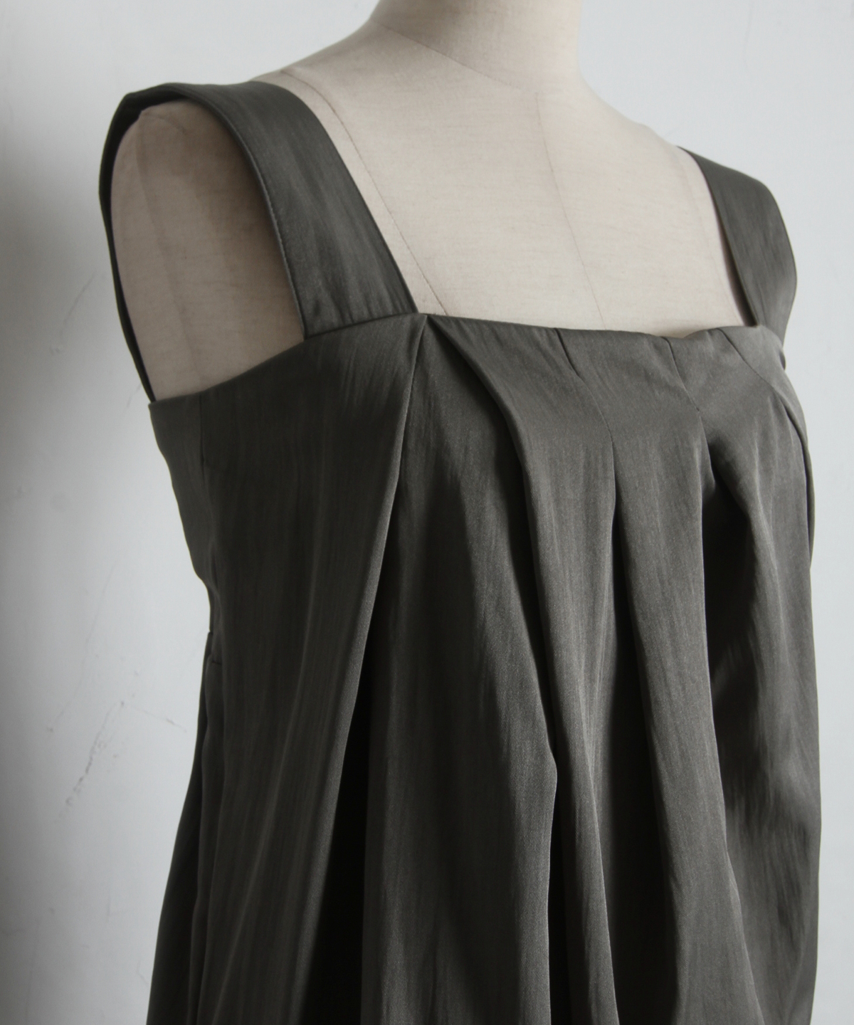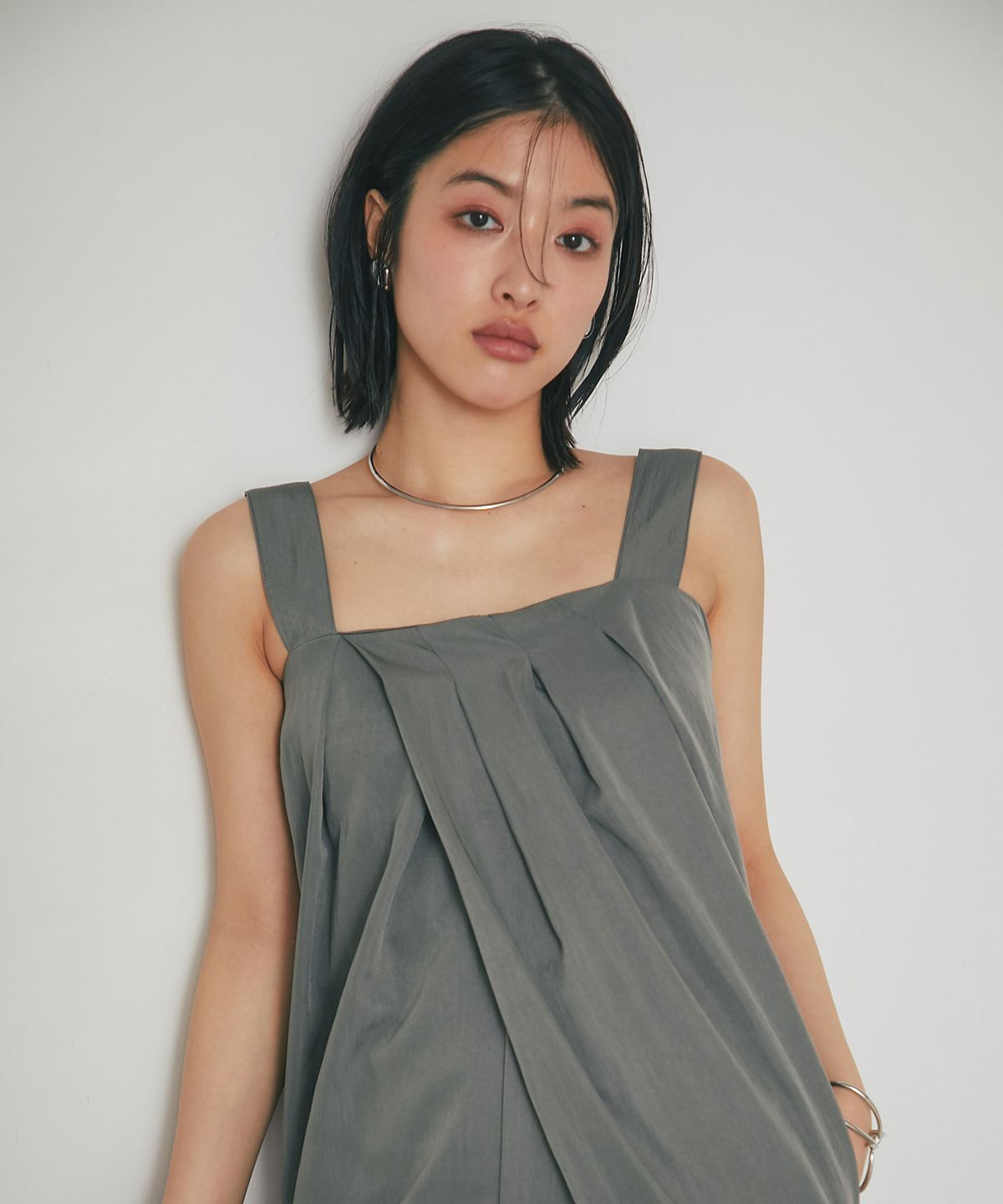 フロントに施した大胆なタックデザインが、美しいドレープと立体的なシルエットを生み出し、1枚で洗練されたスタイルを確立します。