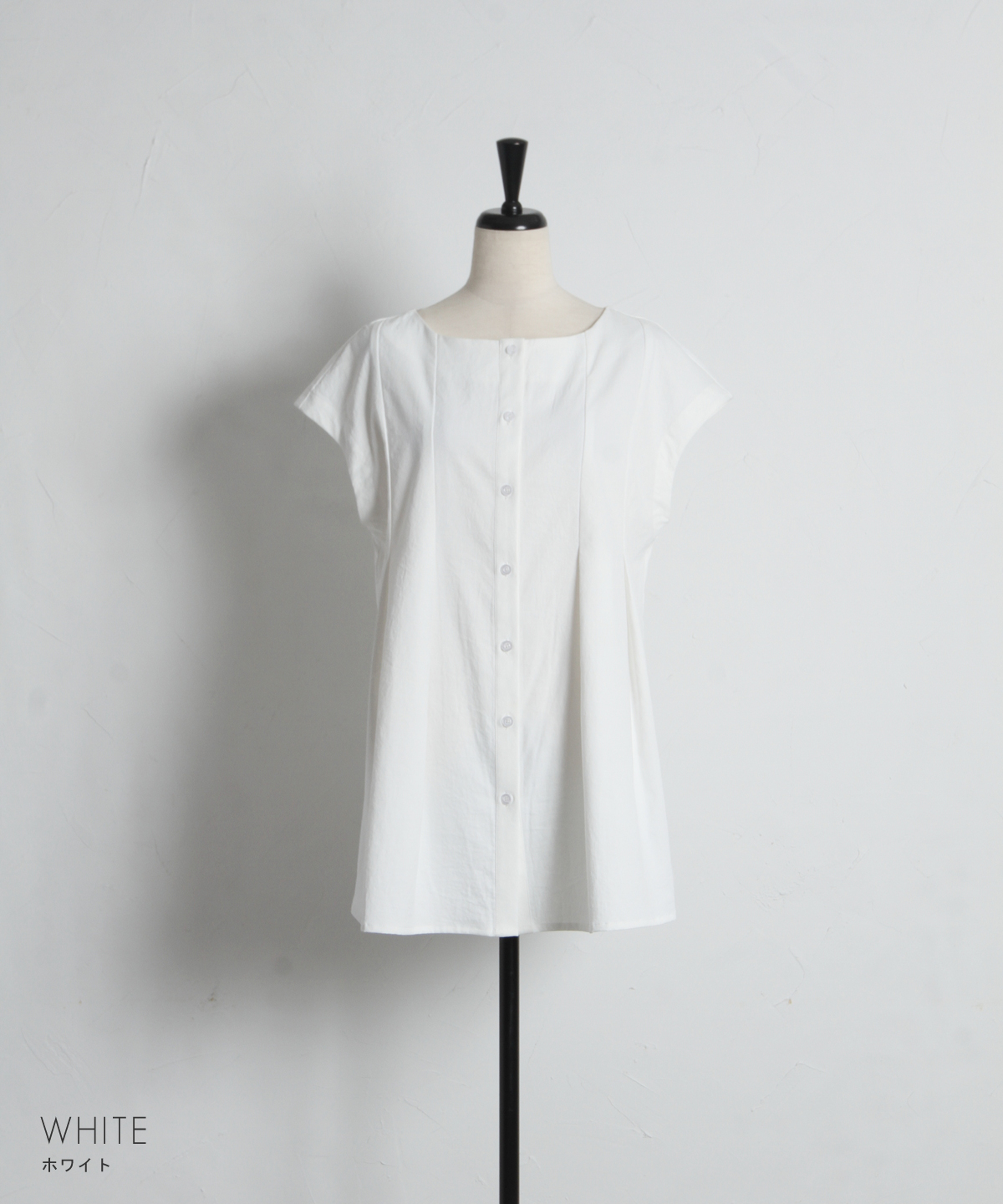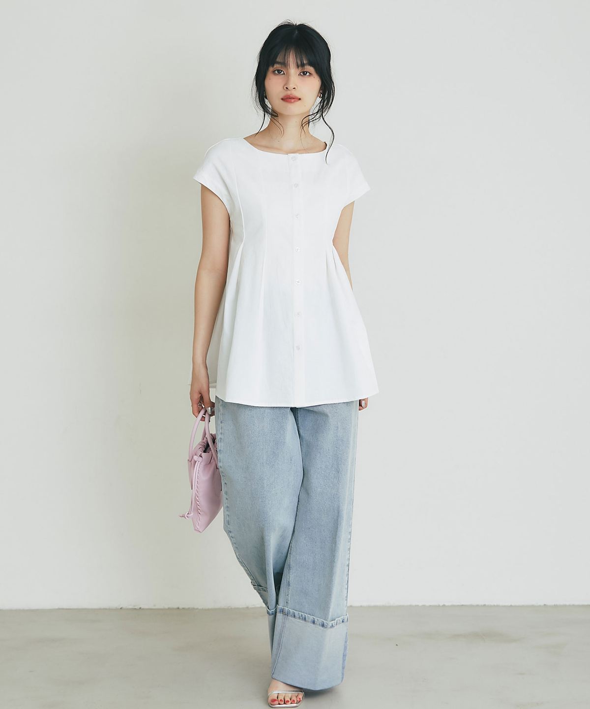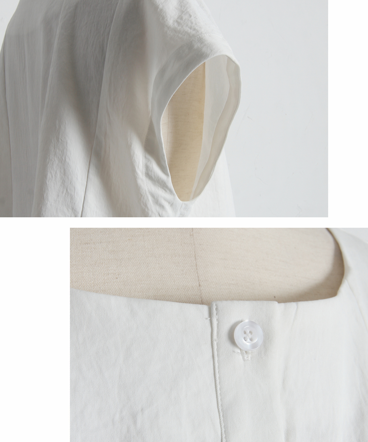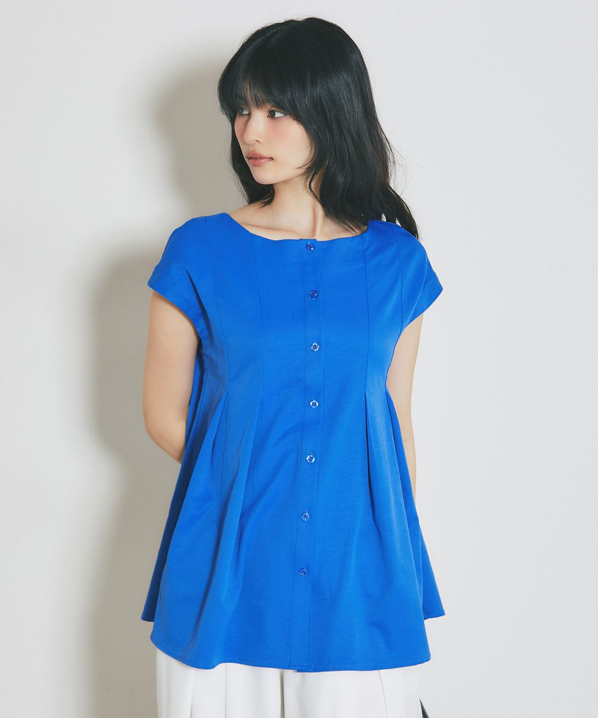 肩にかかる絶妙な袖丈は二の腕をすっきりと見せ、