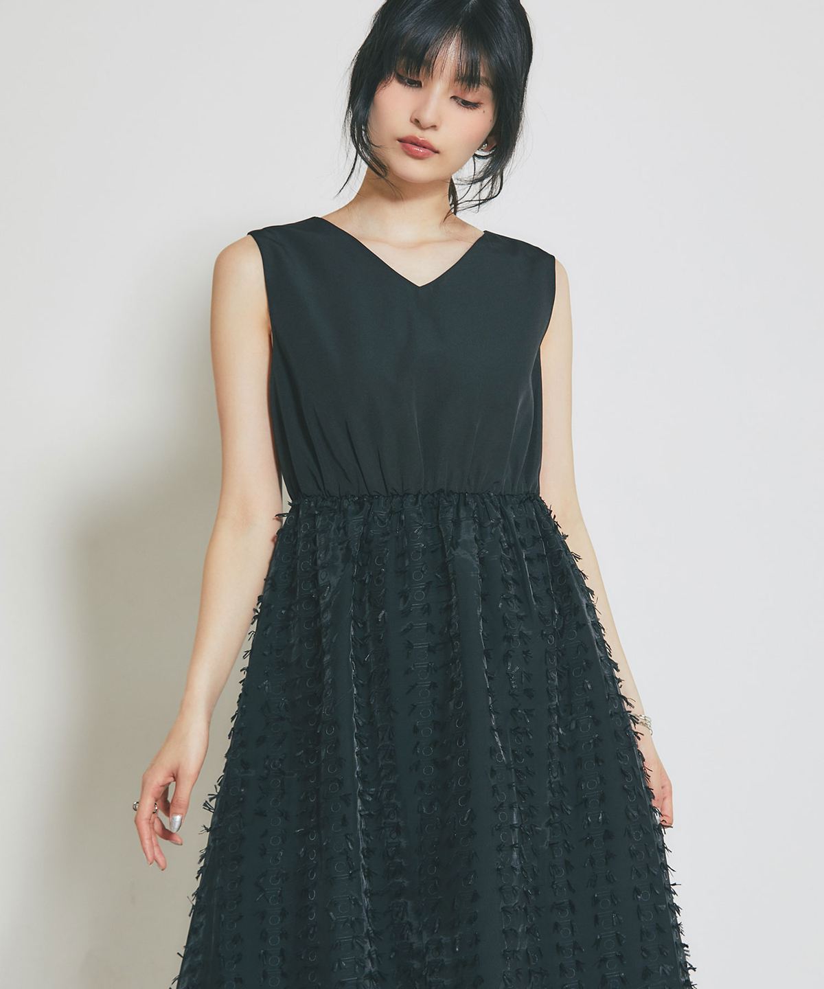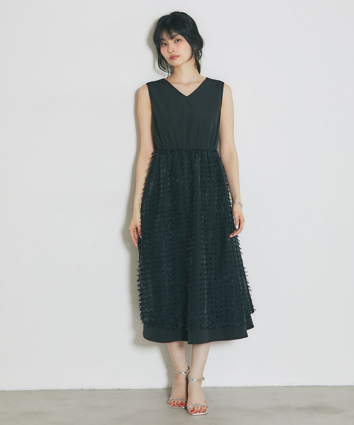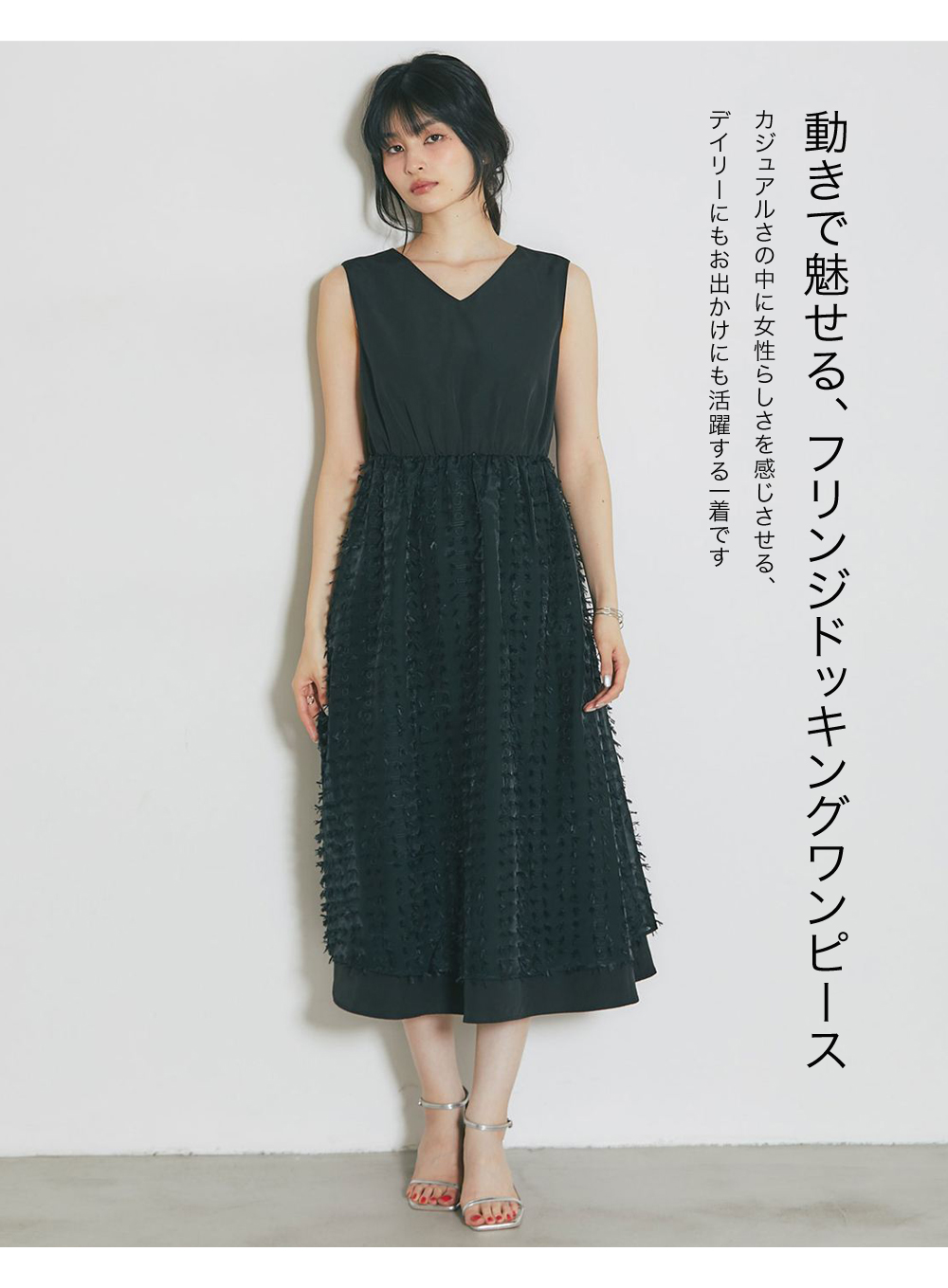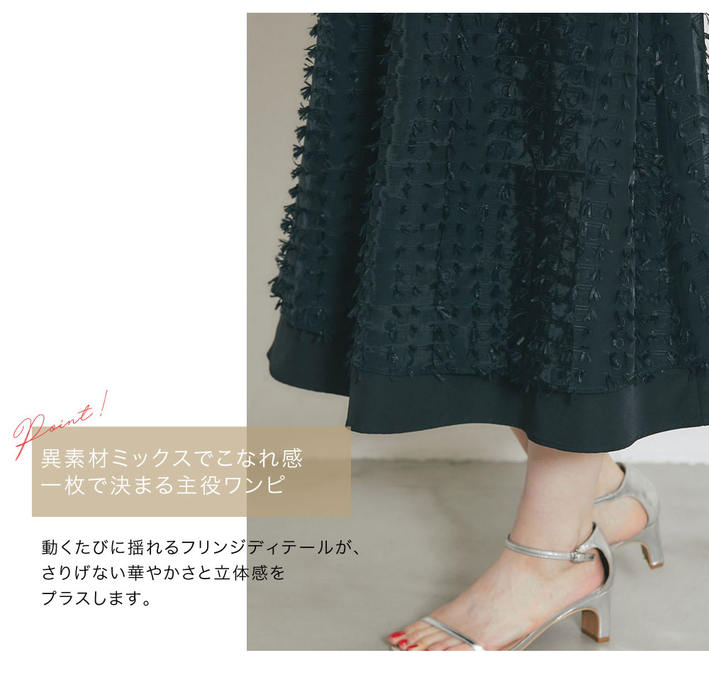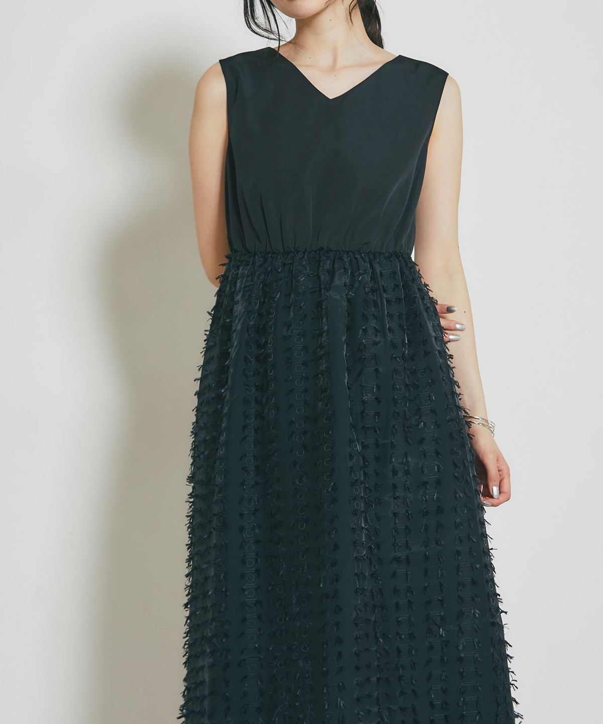 異素材を組み合わせたドッキングデザインが印象的なワンピース