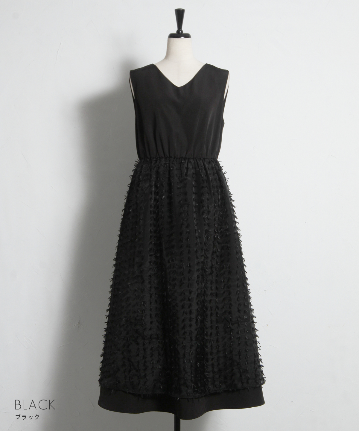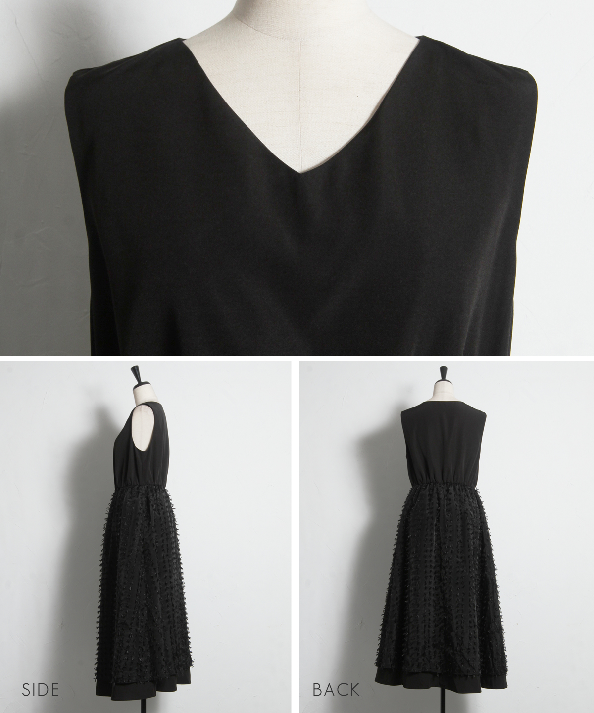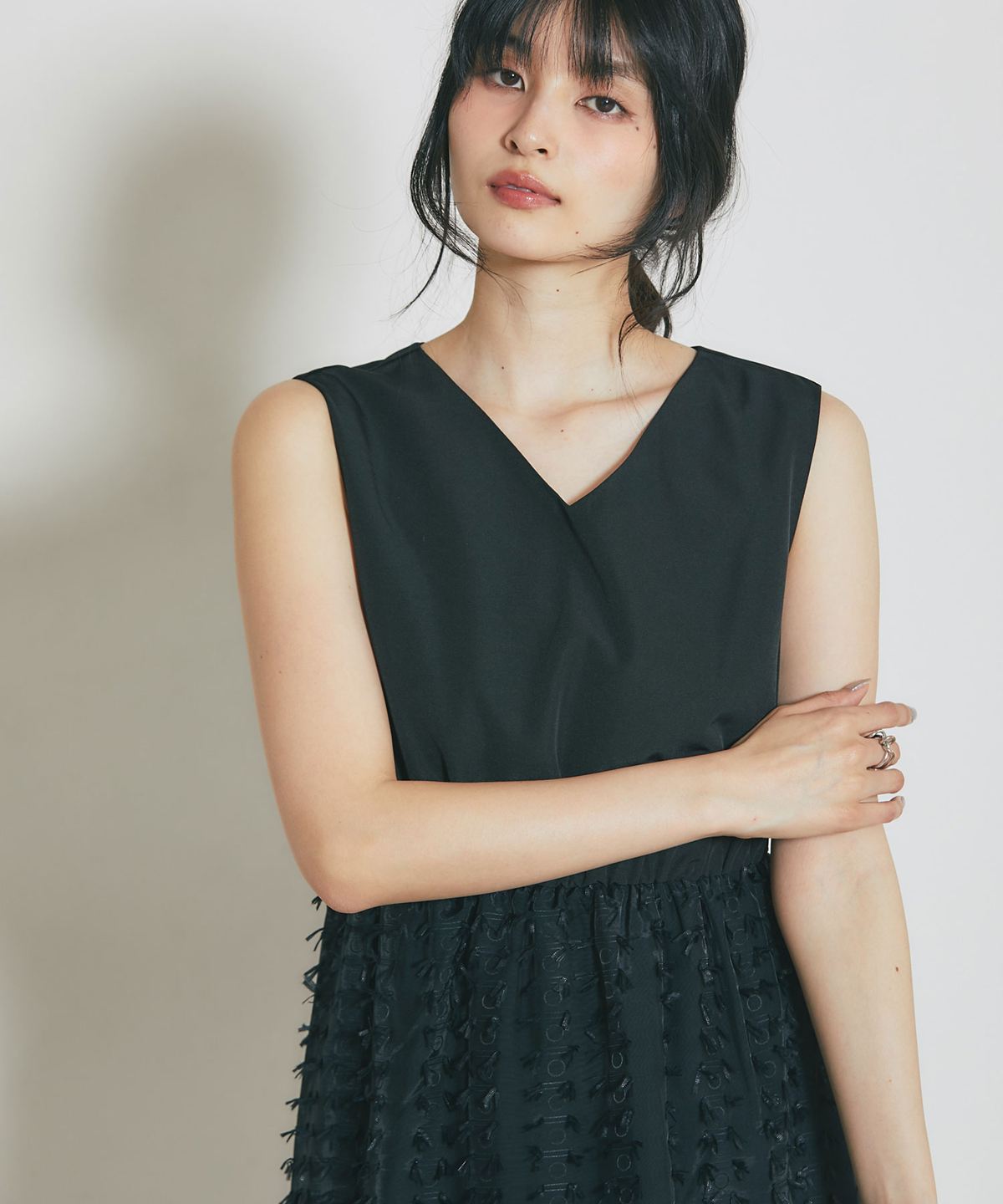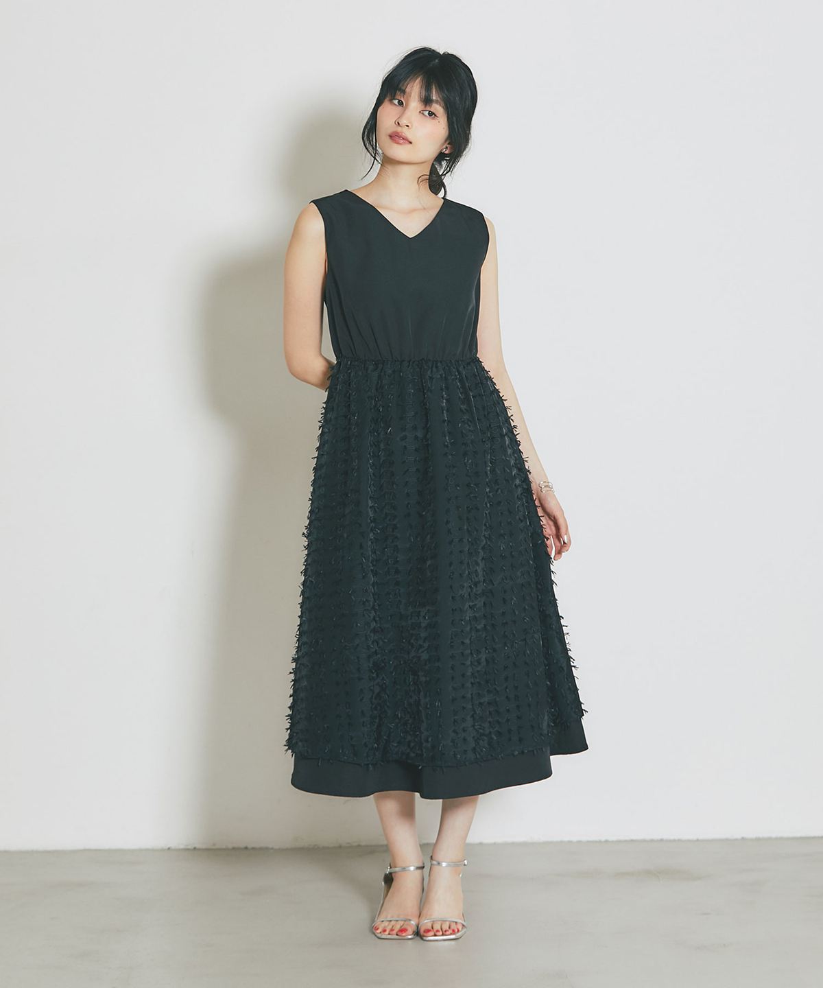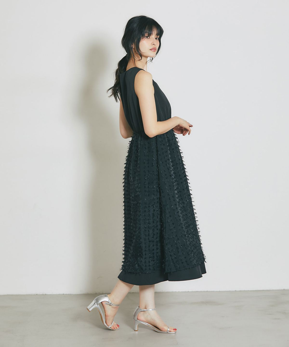 異素材を組み合わせたドッキングデザインが印象的なワンピース