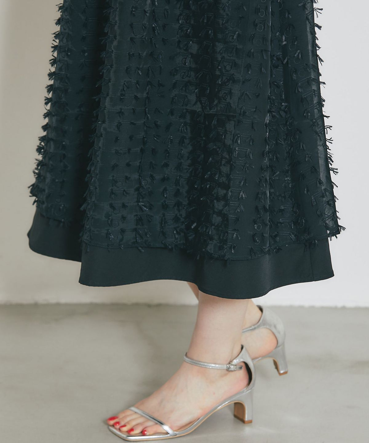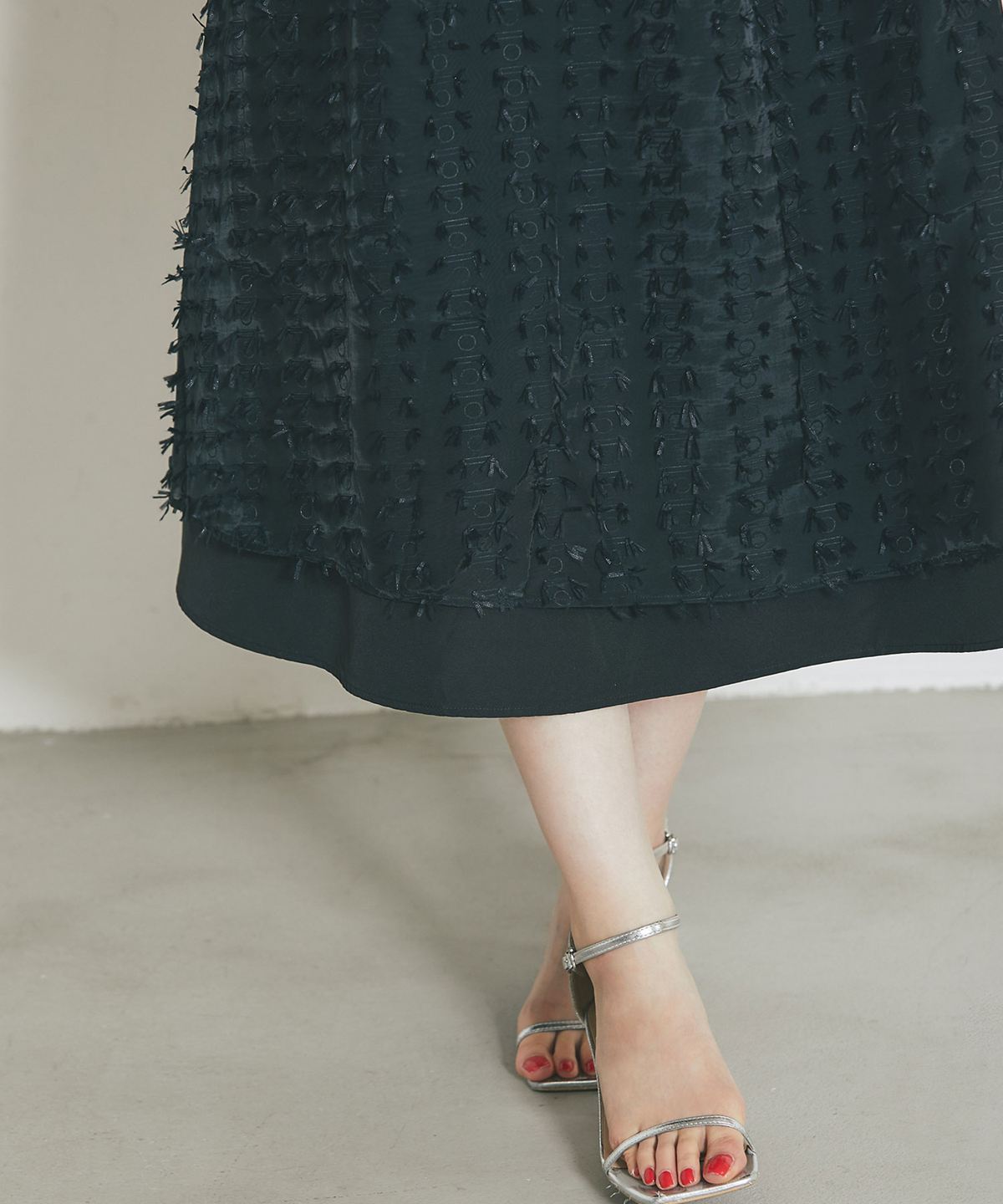 動くたびに揺れるフリンジディテールが、さりげない華やかさと立体感をプラスします。