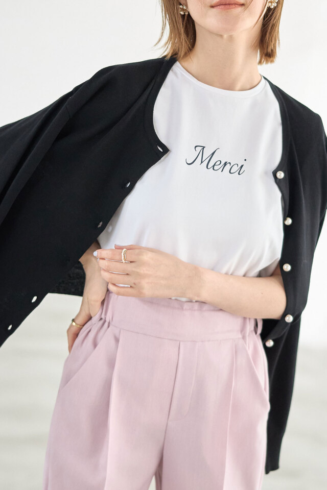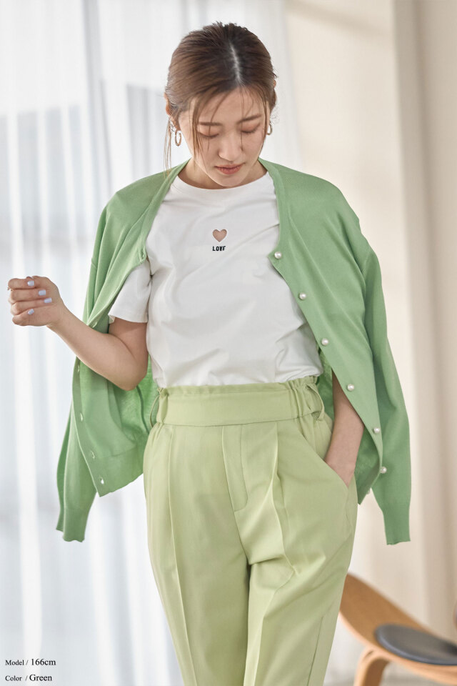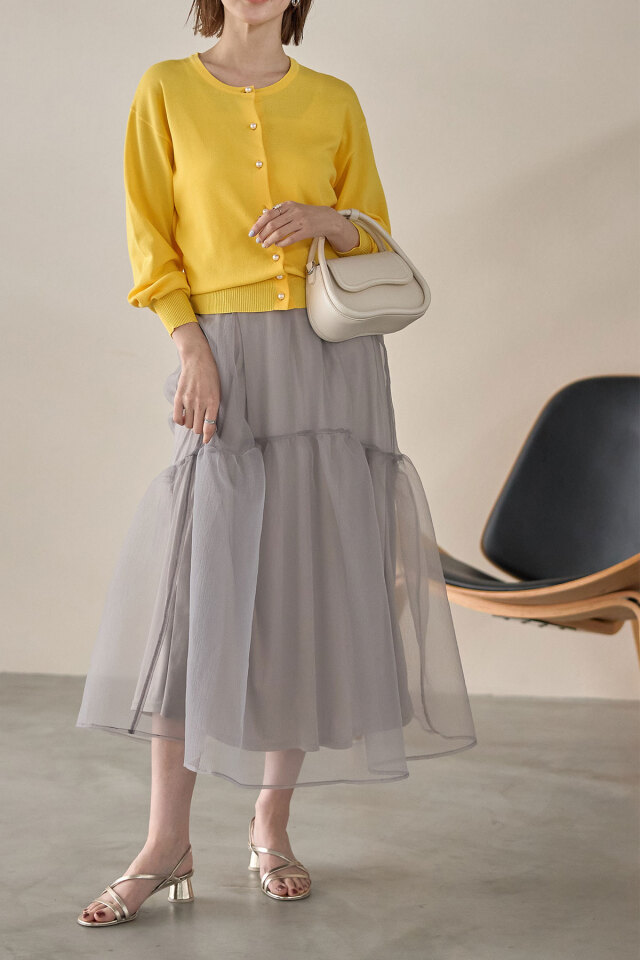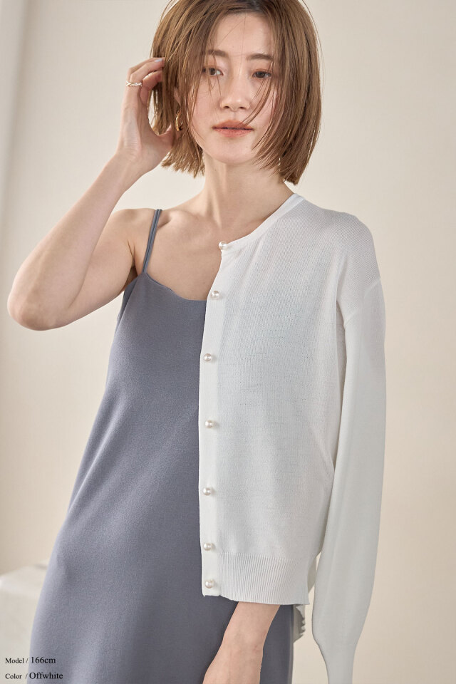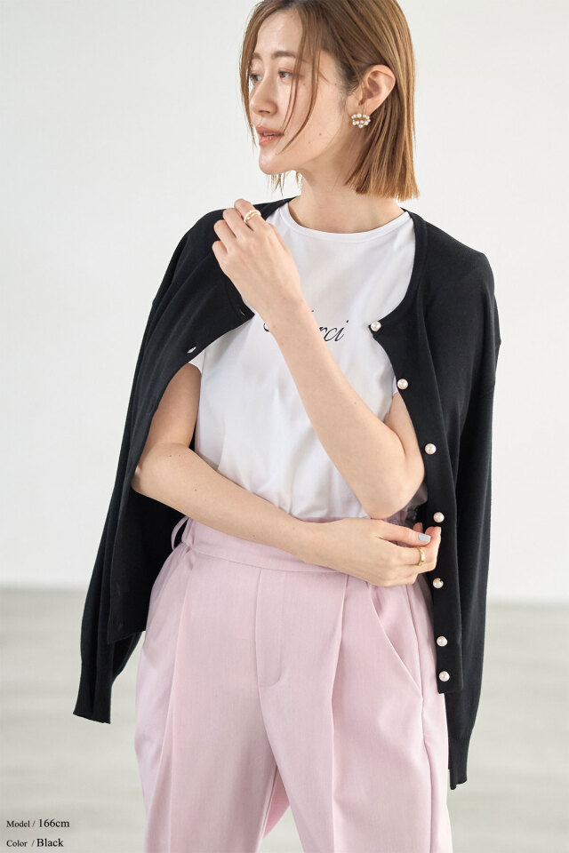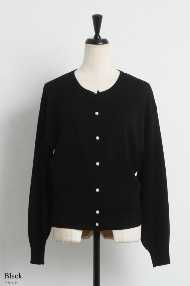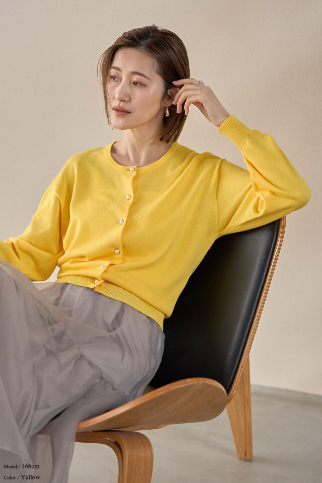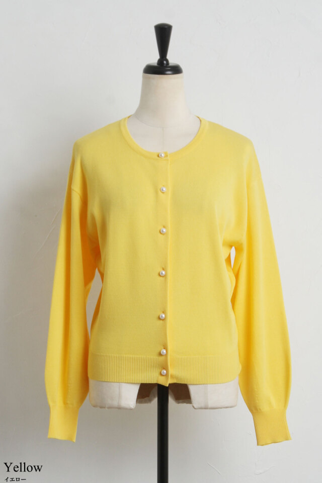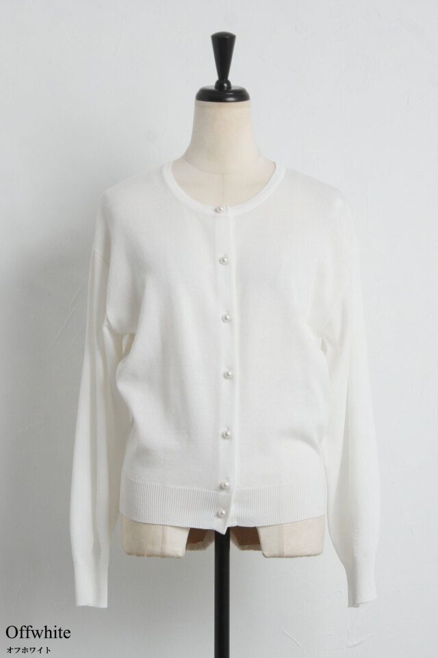さりげなく施されたミニパールボタンが女性らしさをプラスしてくれるカーディガン。