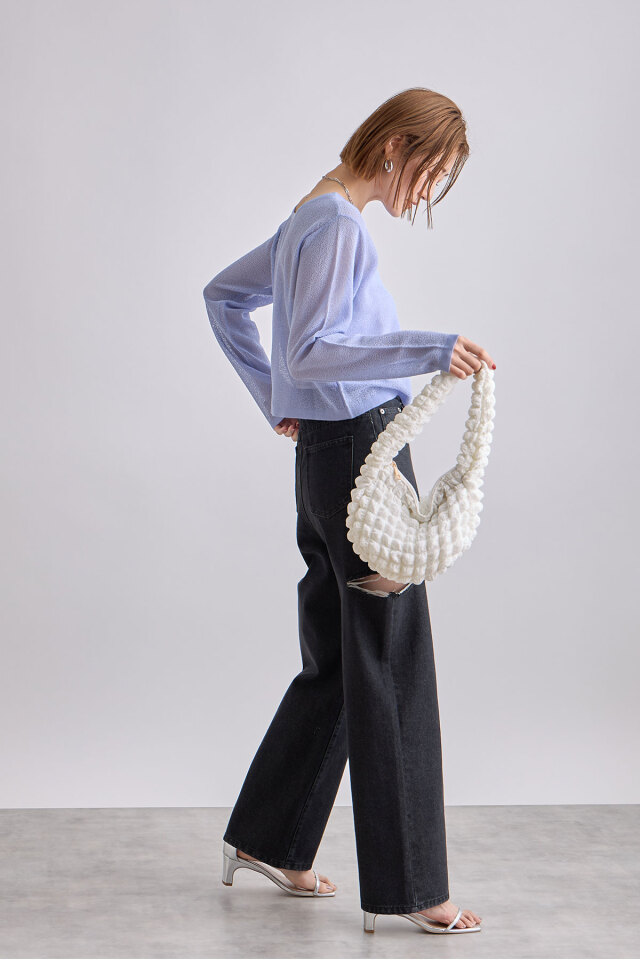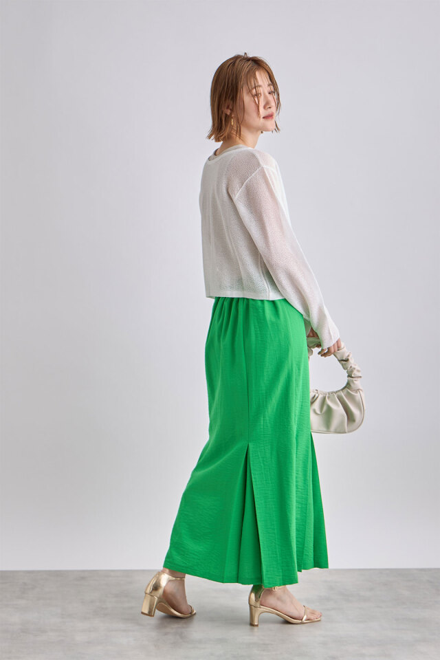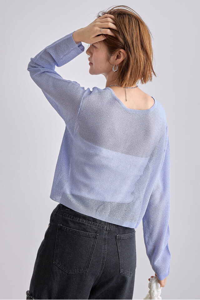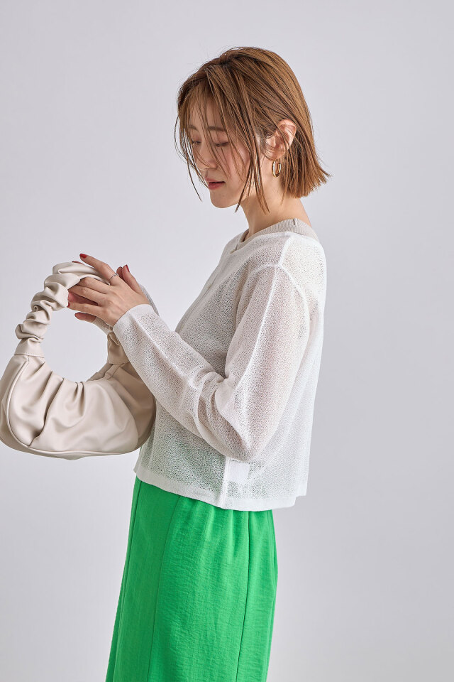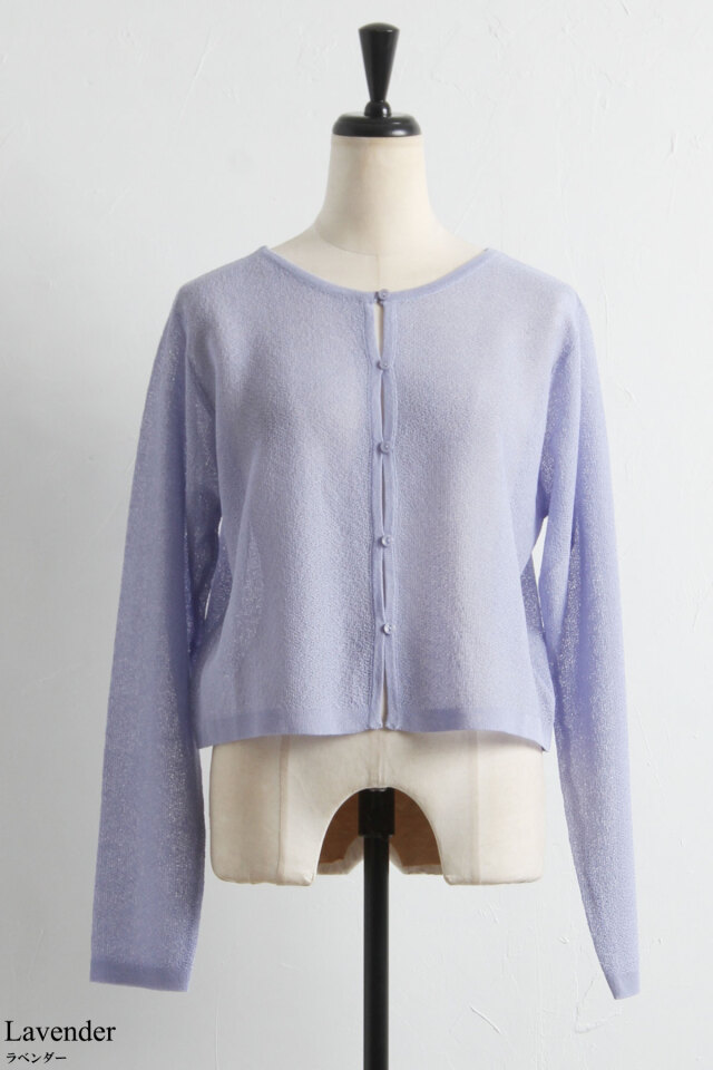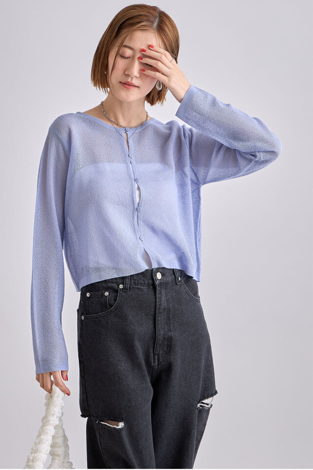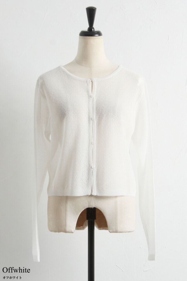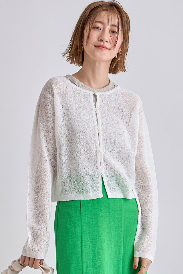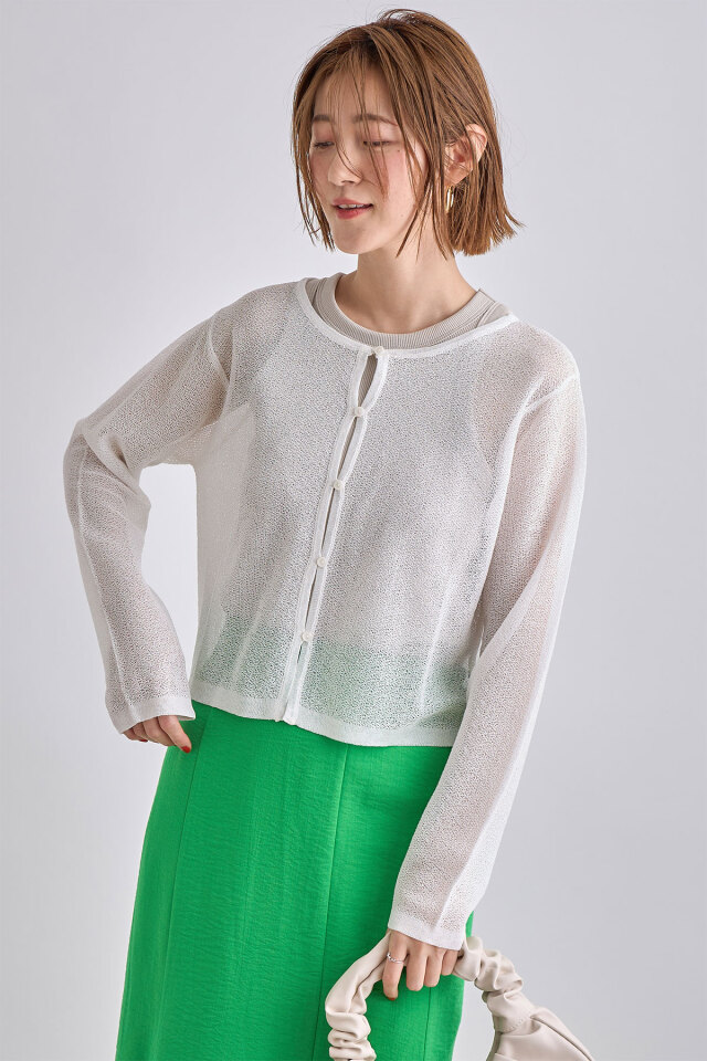 オトナな透け感がトレンド感あるお洒落を叶えるニットカーディガン。今から使える極薄手のシャリ感のある素材で、急な冷え込みや冷房対策にも役立つ万能アイテム。