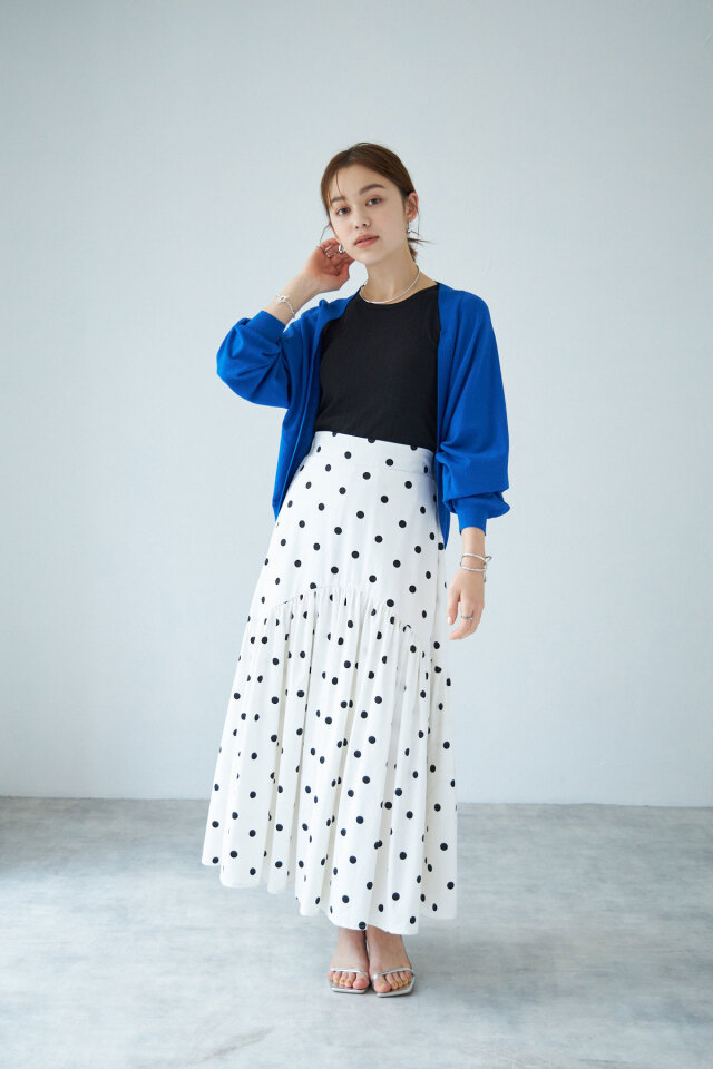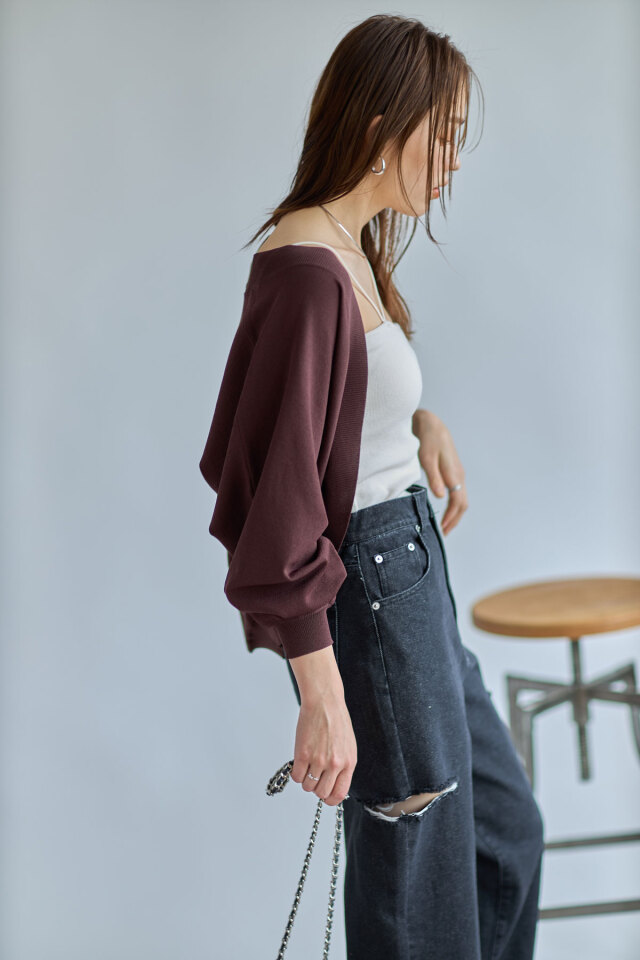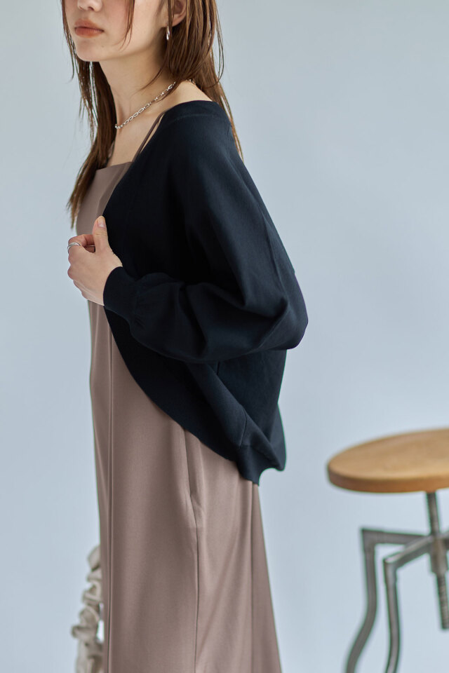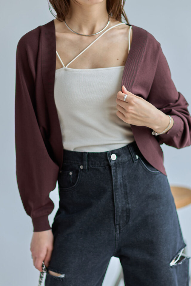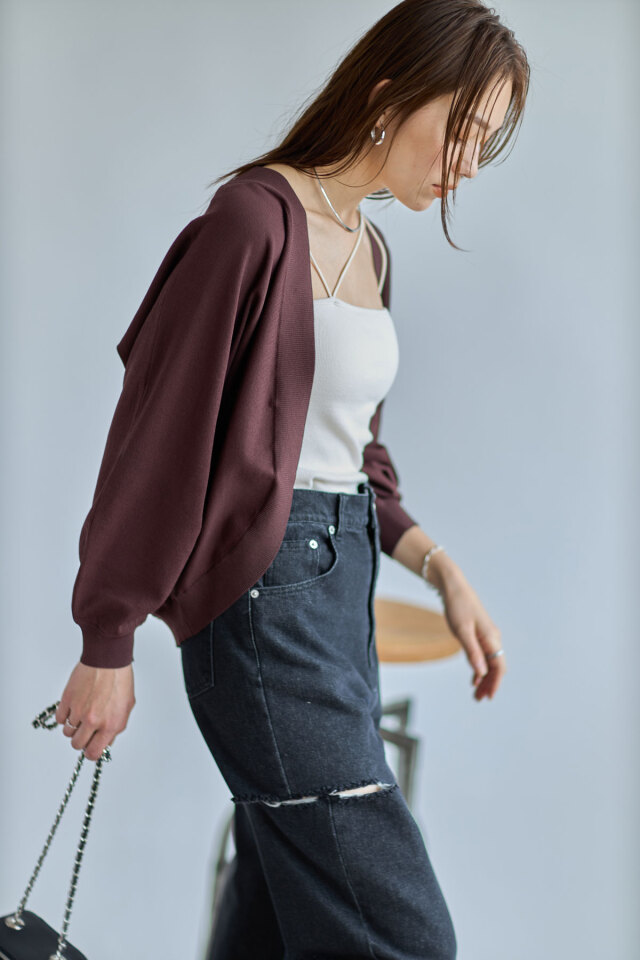 たっぷりとしたボリューム袖とロングリブが華奢見えポイントのドルマンカーディガン。ワンピースなどの羽織りにはもちろん、ハイウエストボトムスとあわせてプルオーバー風に着こなすのもおすすめ◎