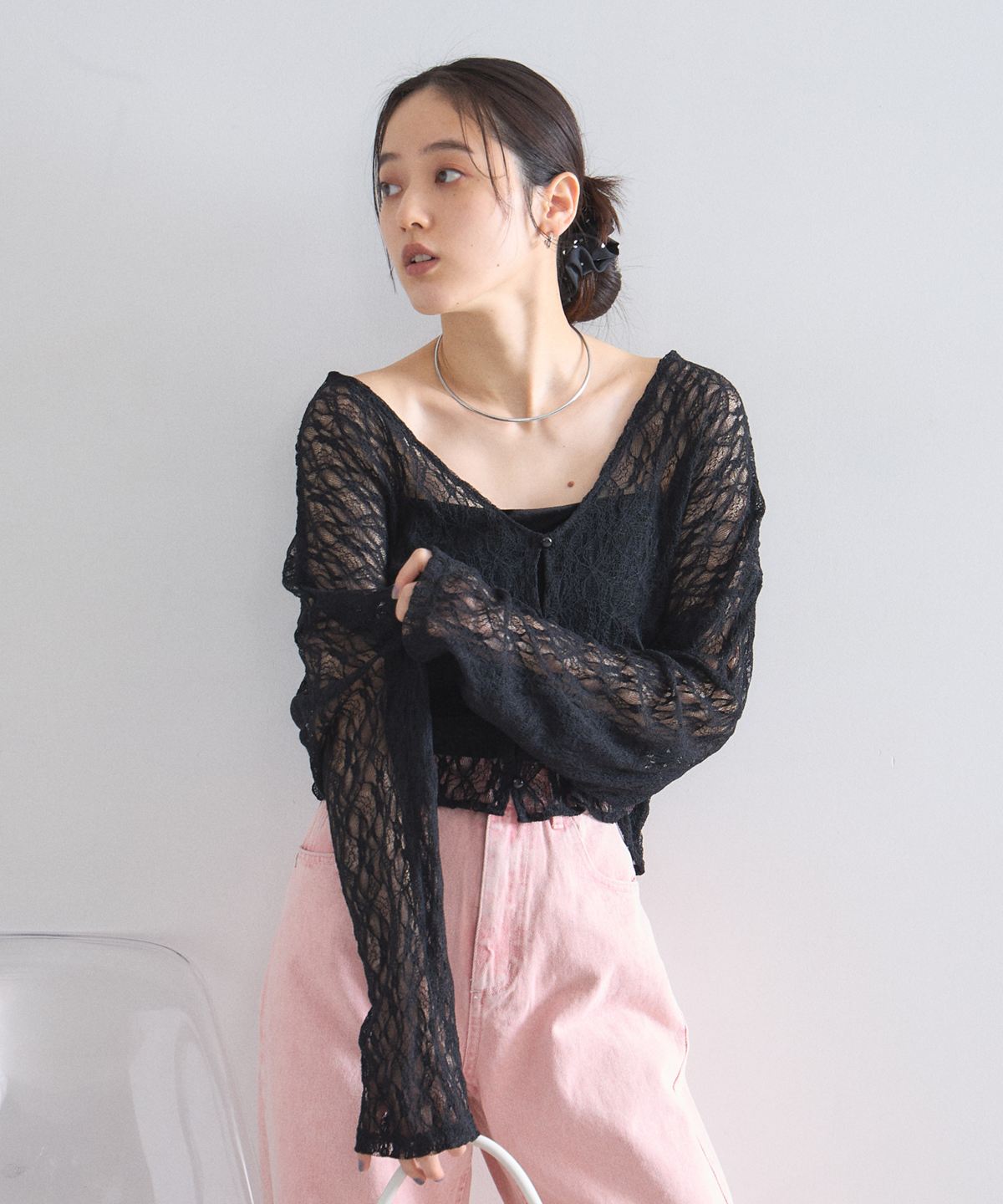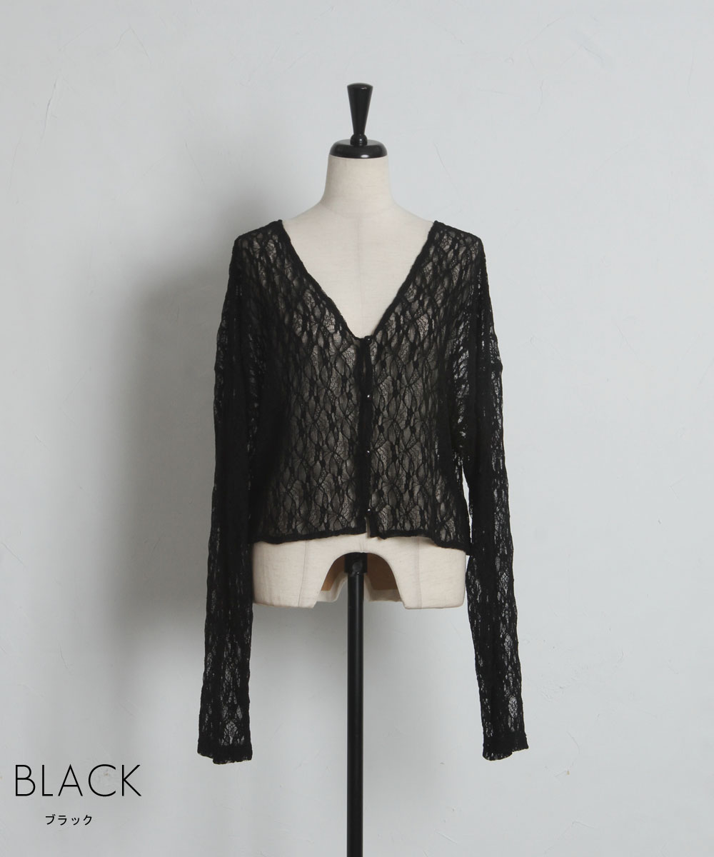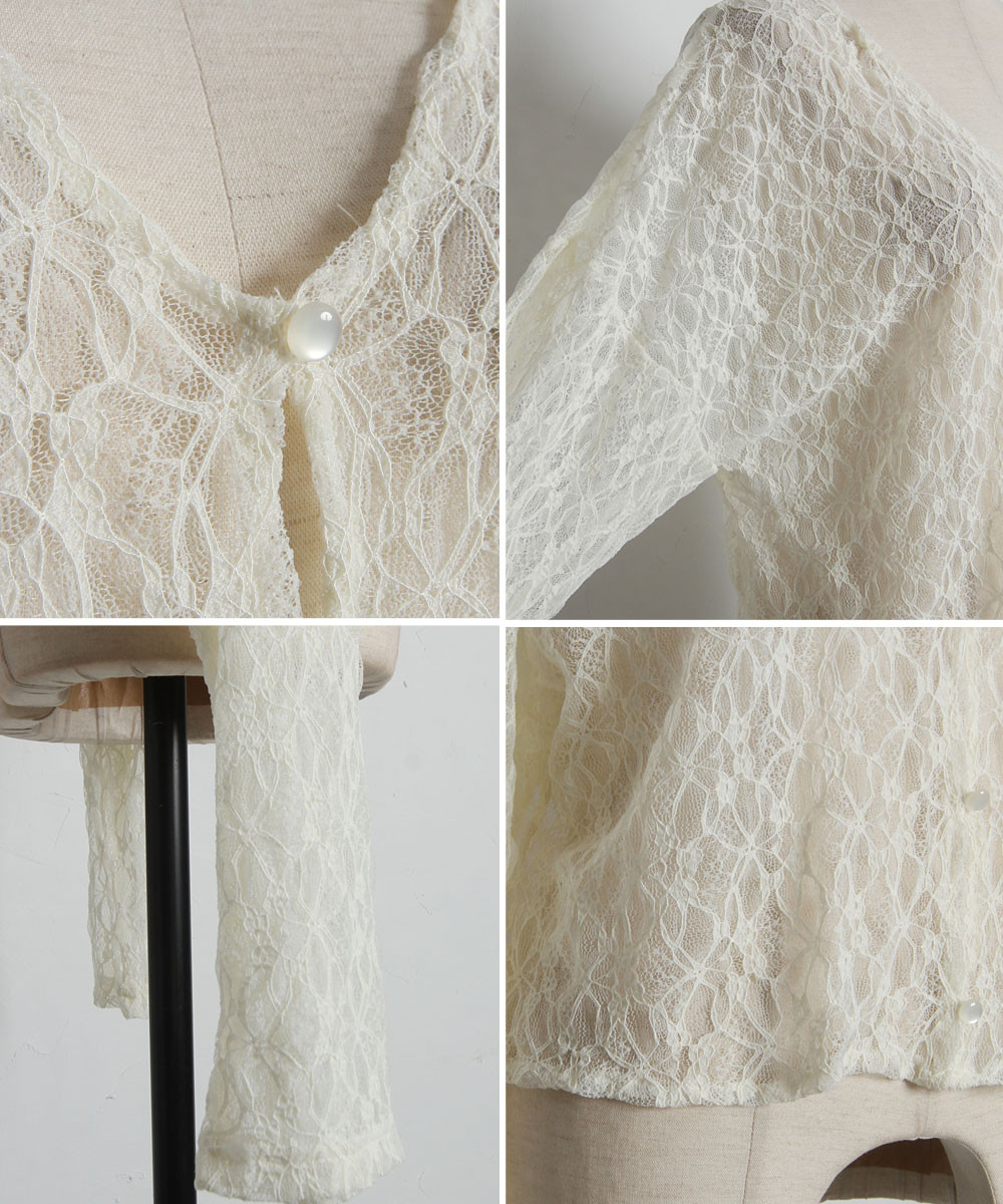 センシュアルな透け感が大人なムード。洗練された総レースショートカーディガン。