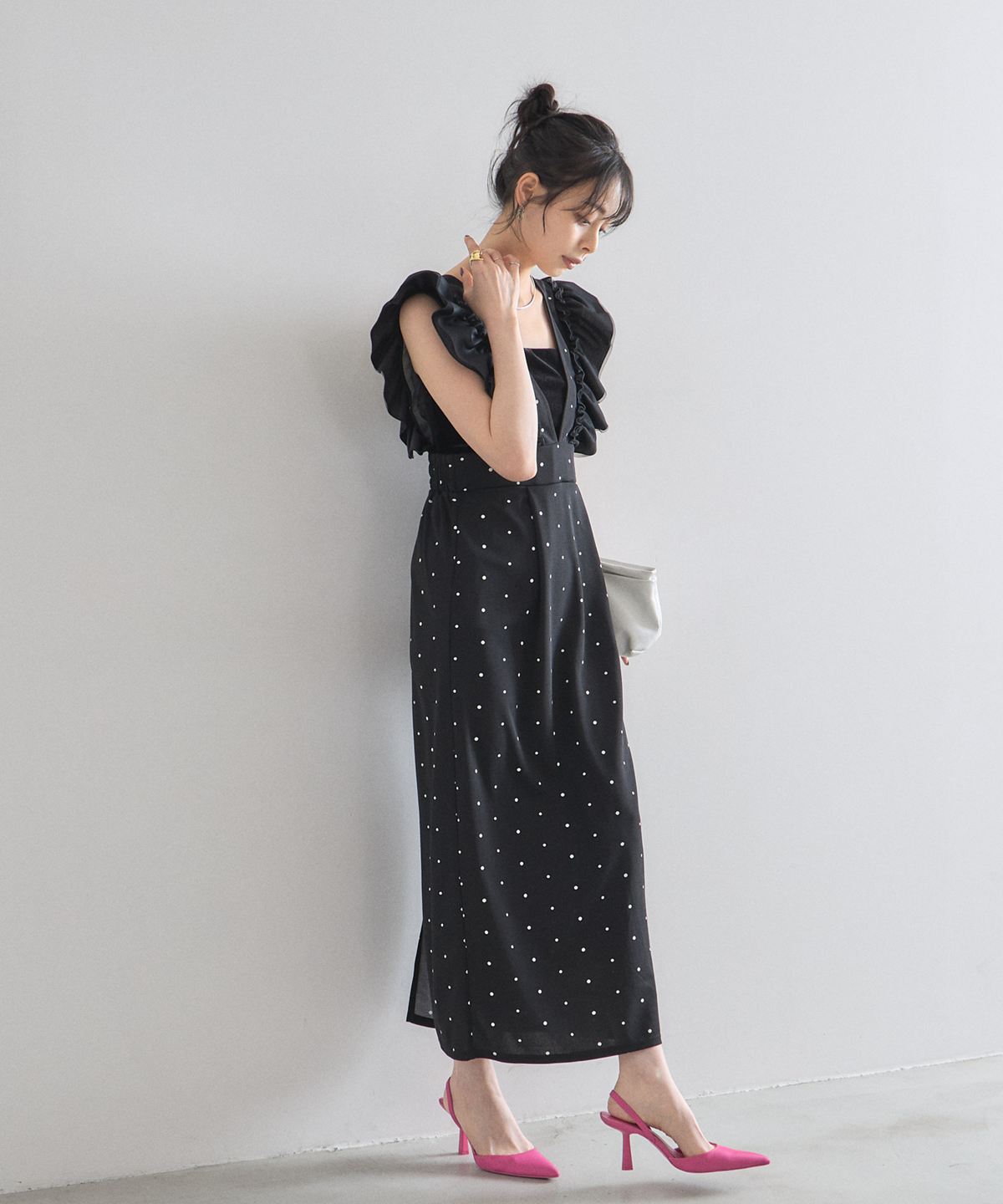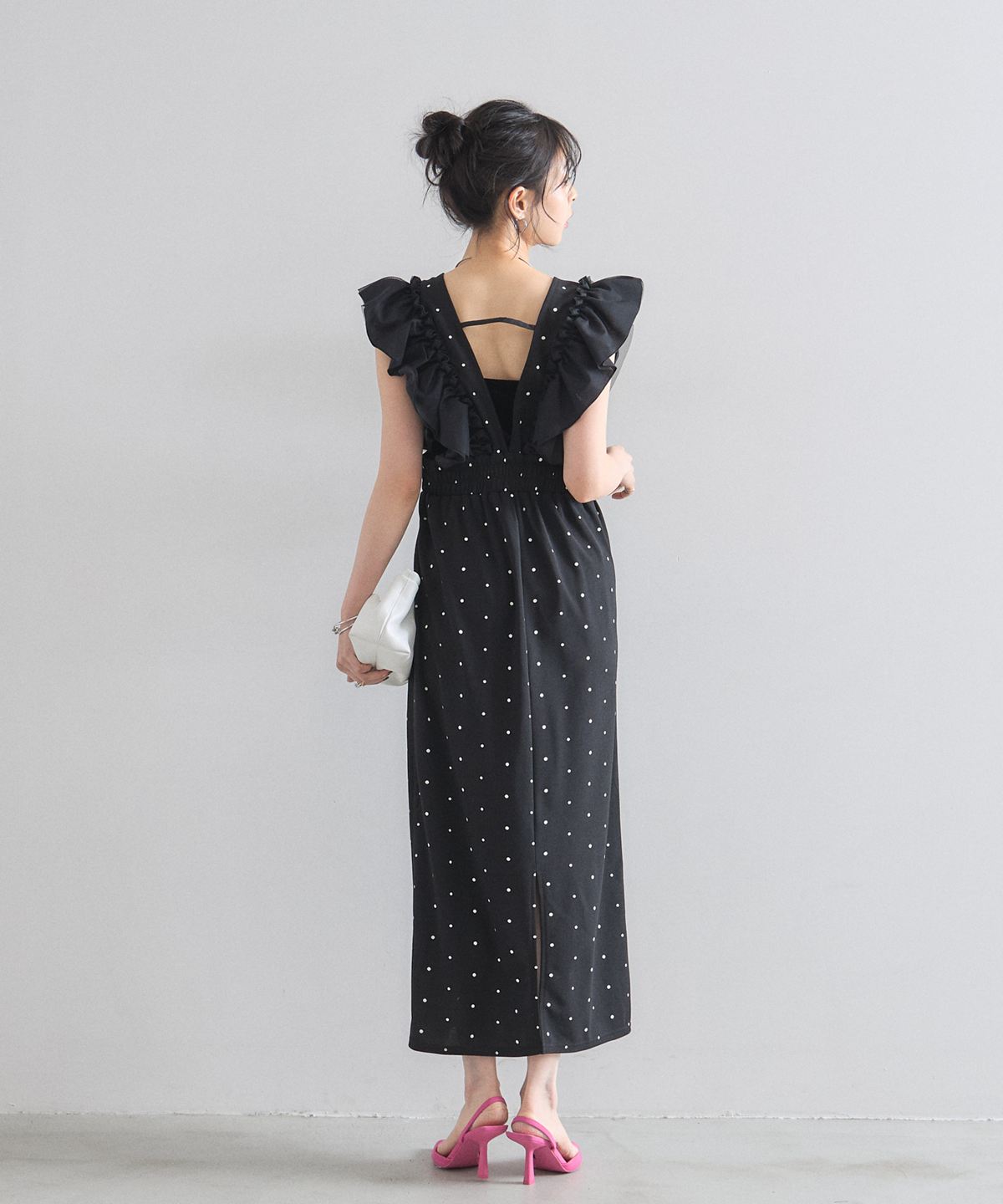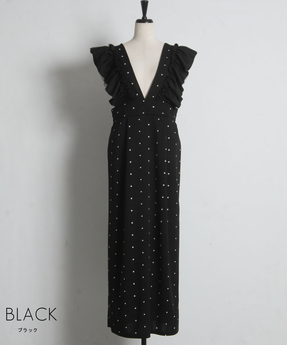 大人の遊び心をくすぐる、ドット柄フリルワンピース