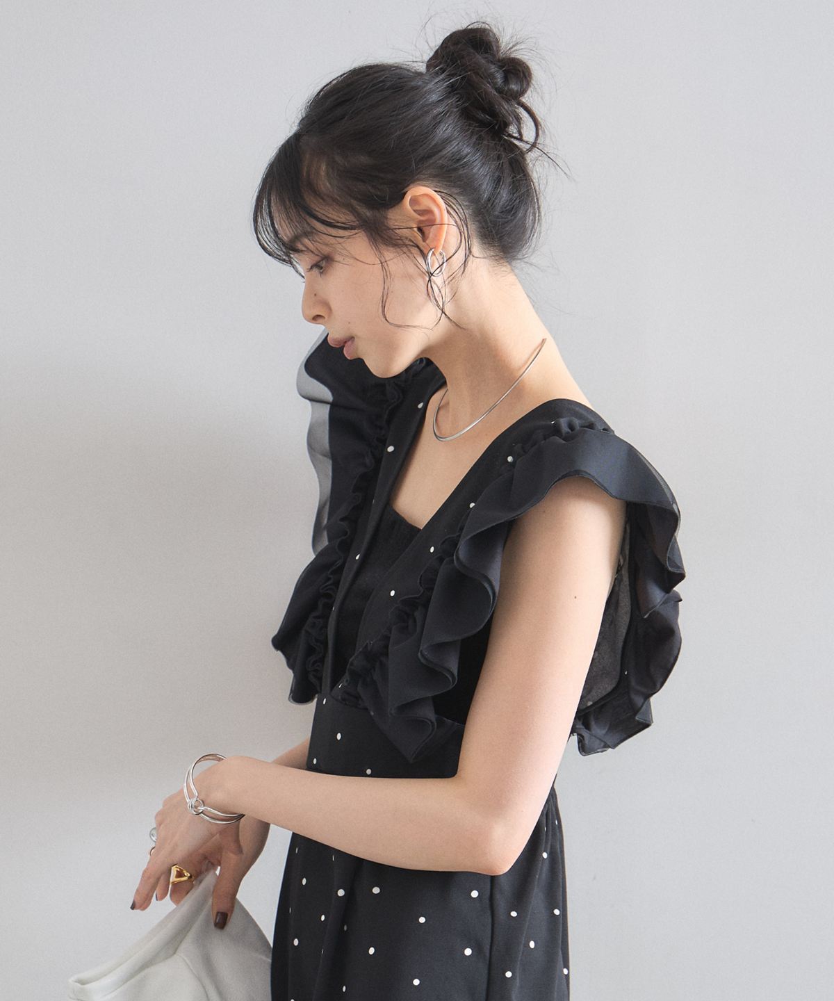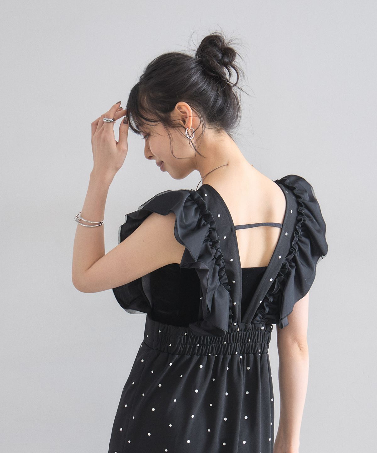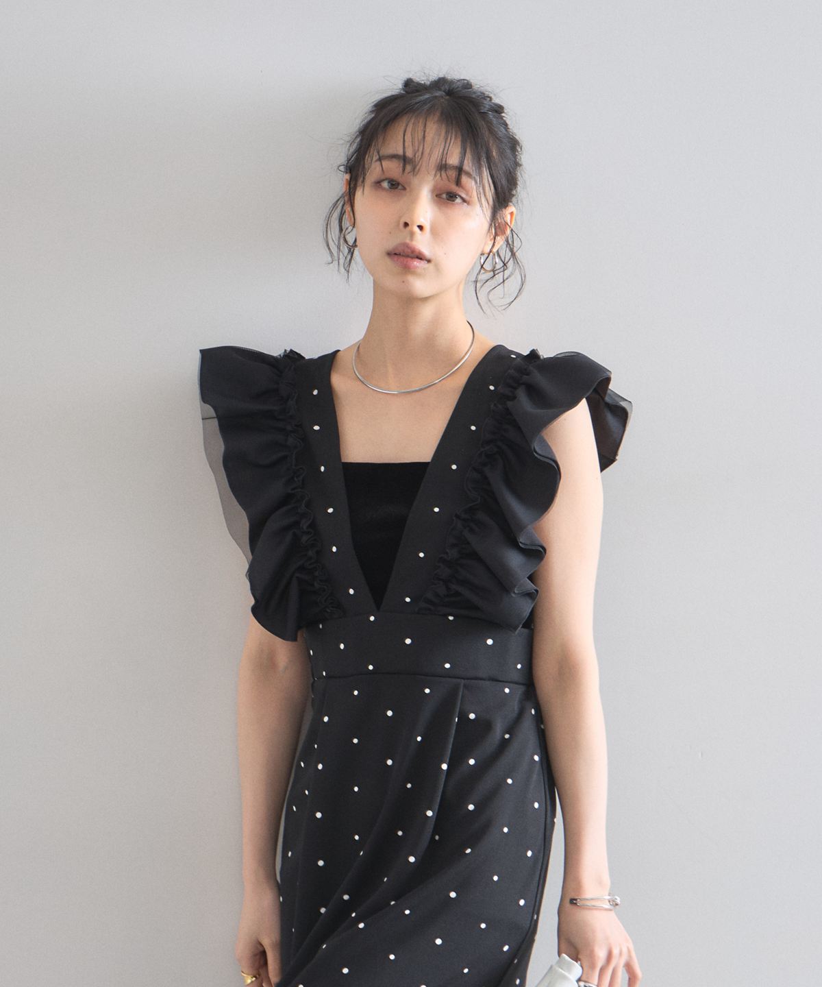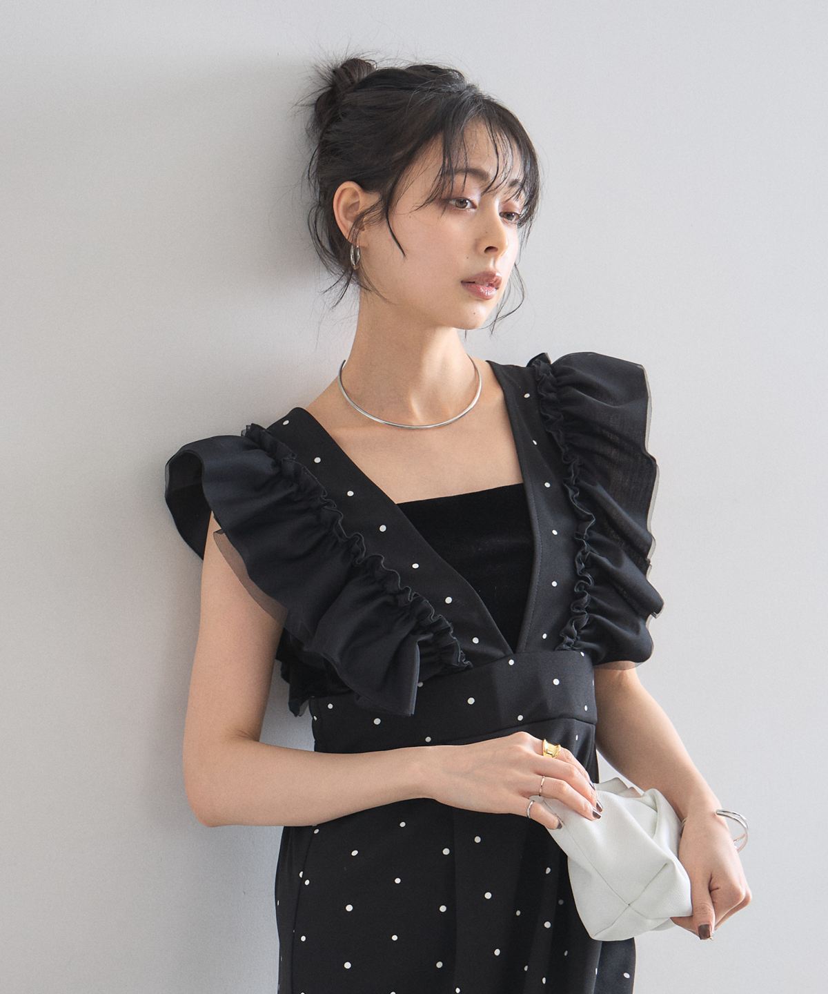 大人の遊び心をくすぐる、ドット柄フリルワンピース