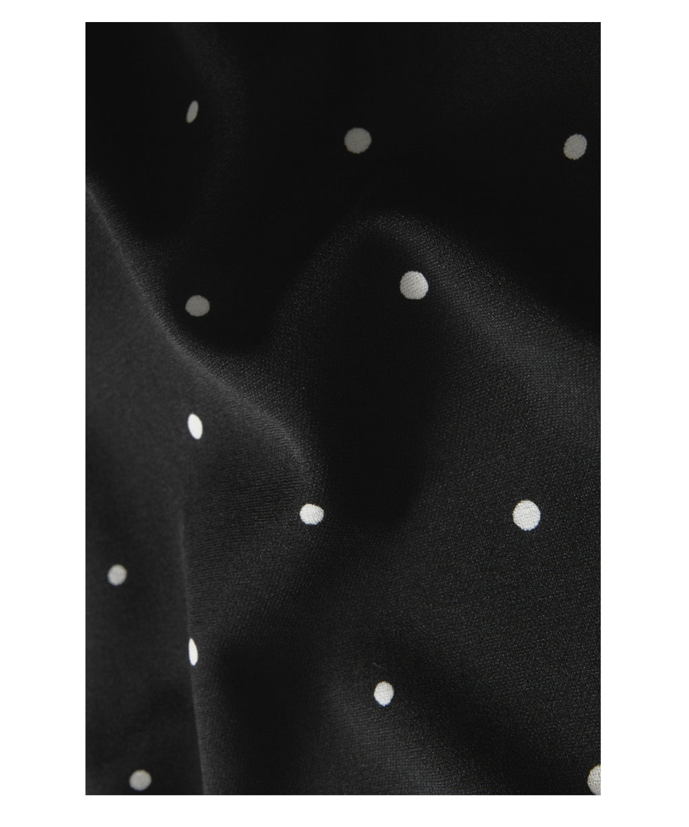 シックなブラックに可憐なドットを散りばめ、甘すぎない大人レディな印象に仕上げました。