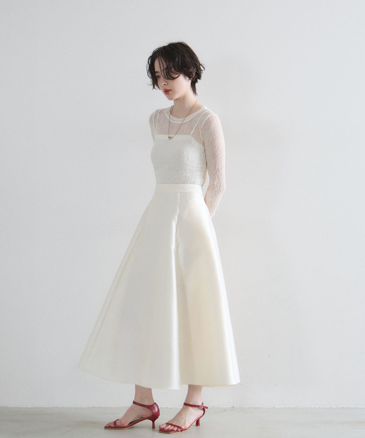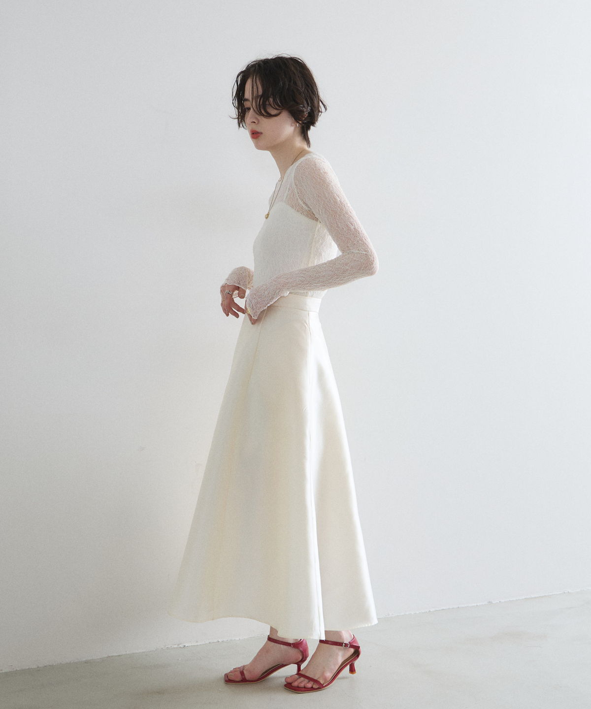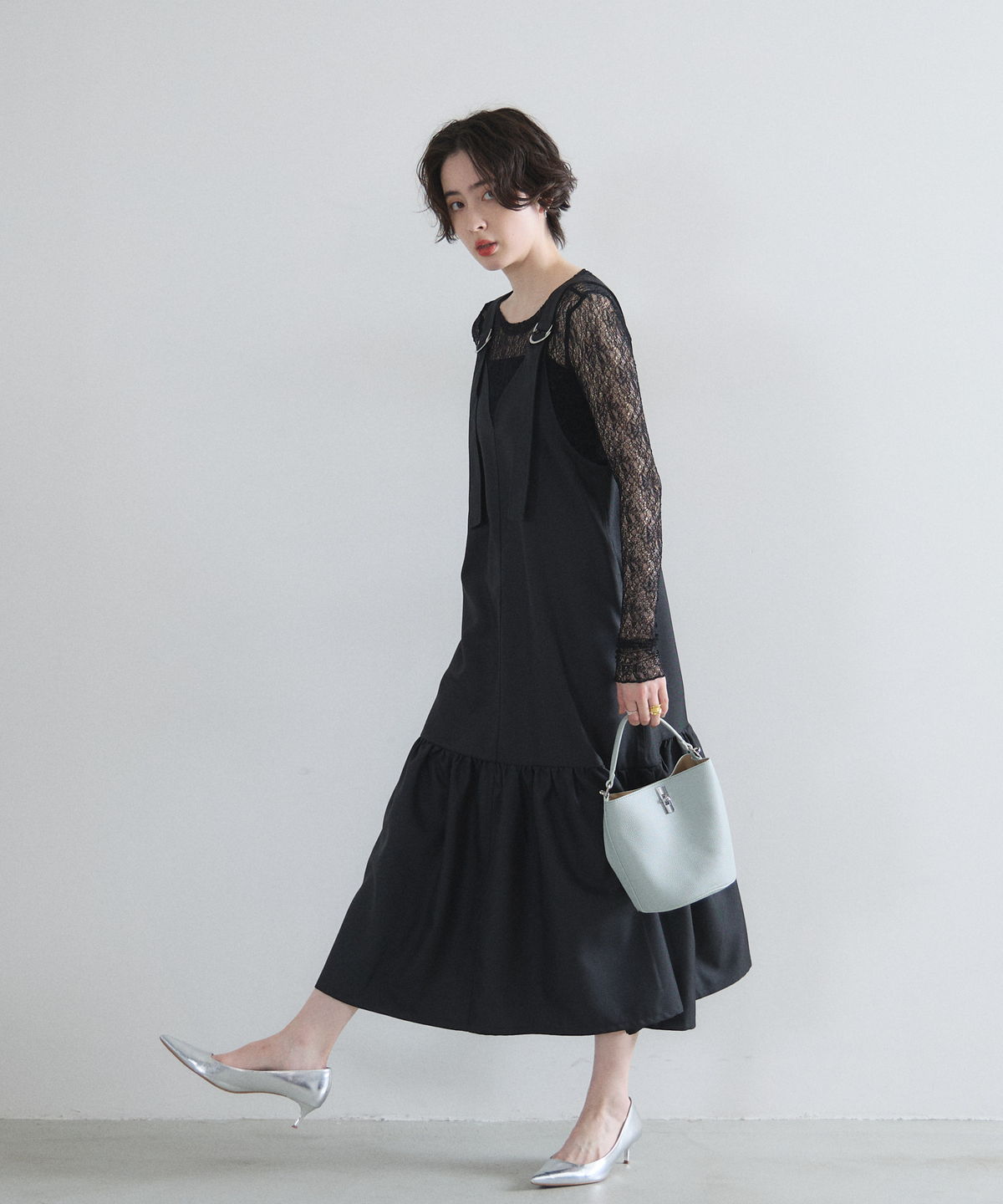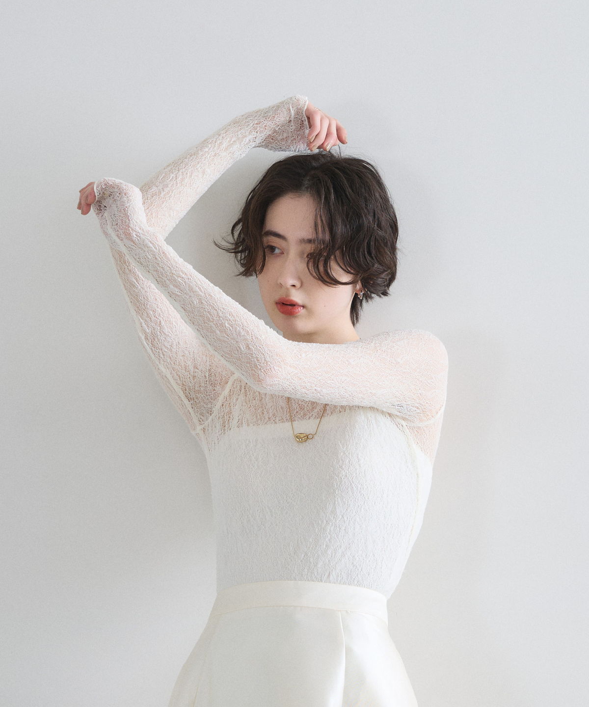 レイヤードスタイルを華やかに彩る、繊細な透け感の総レーストップス。