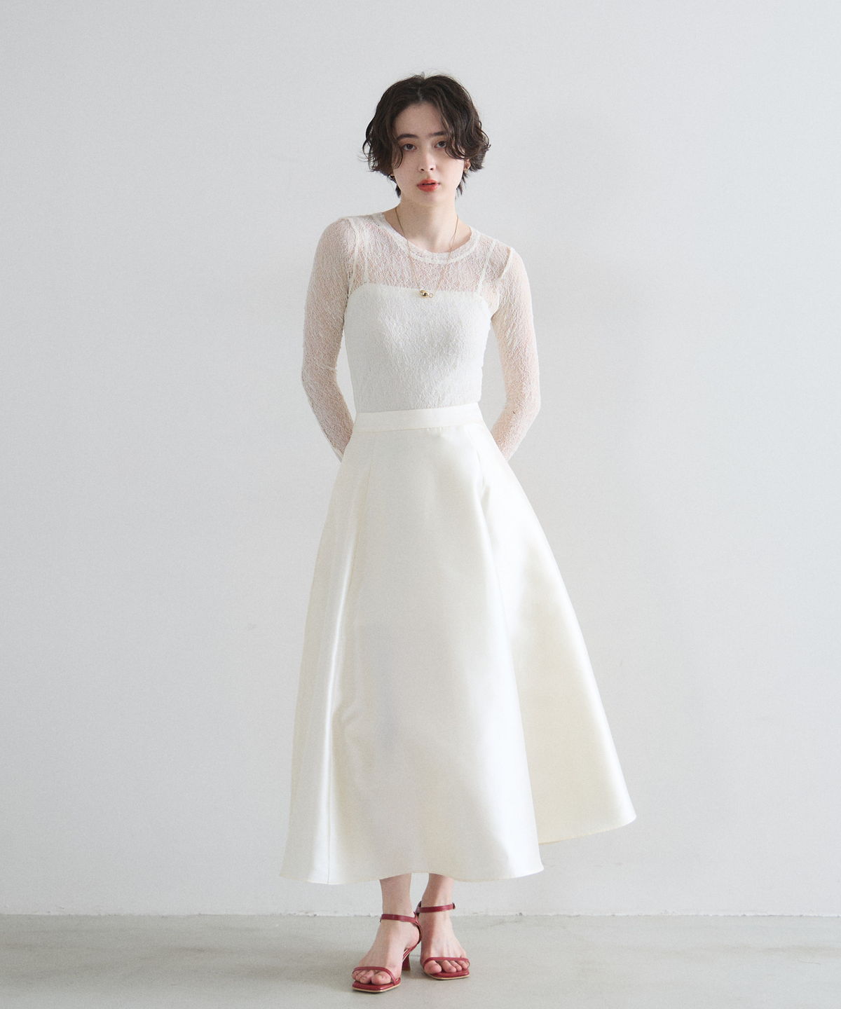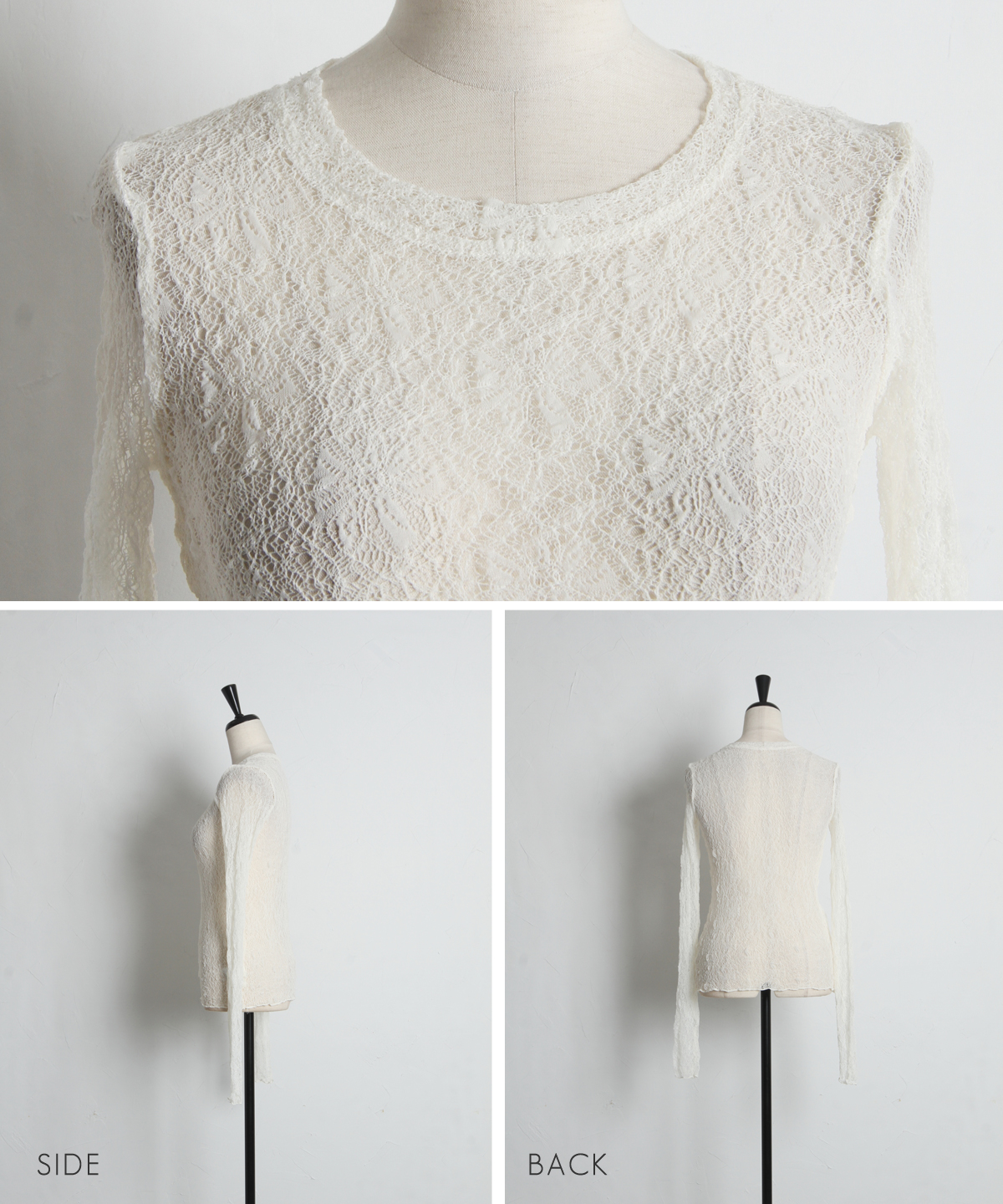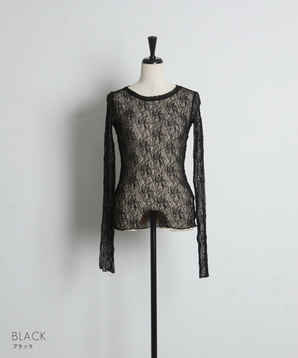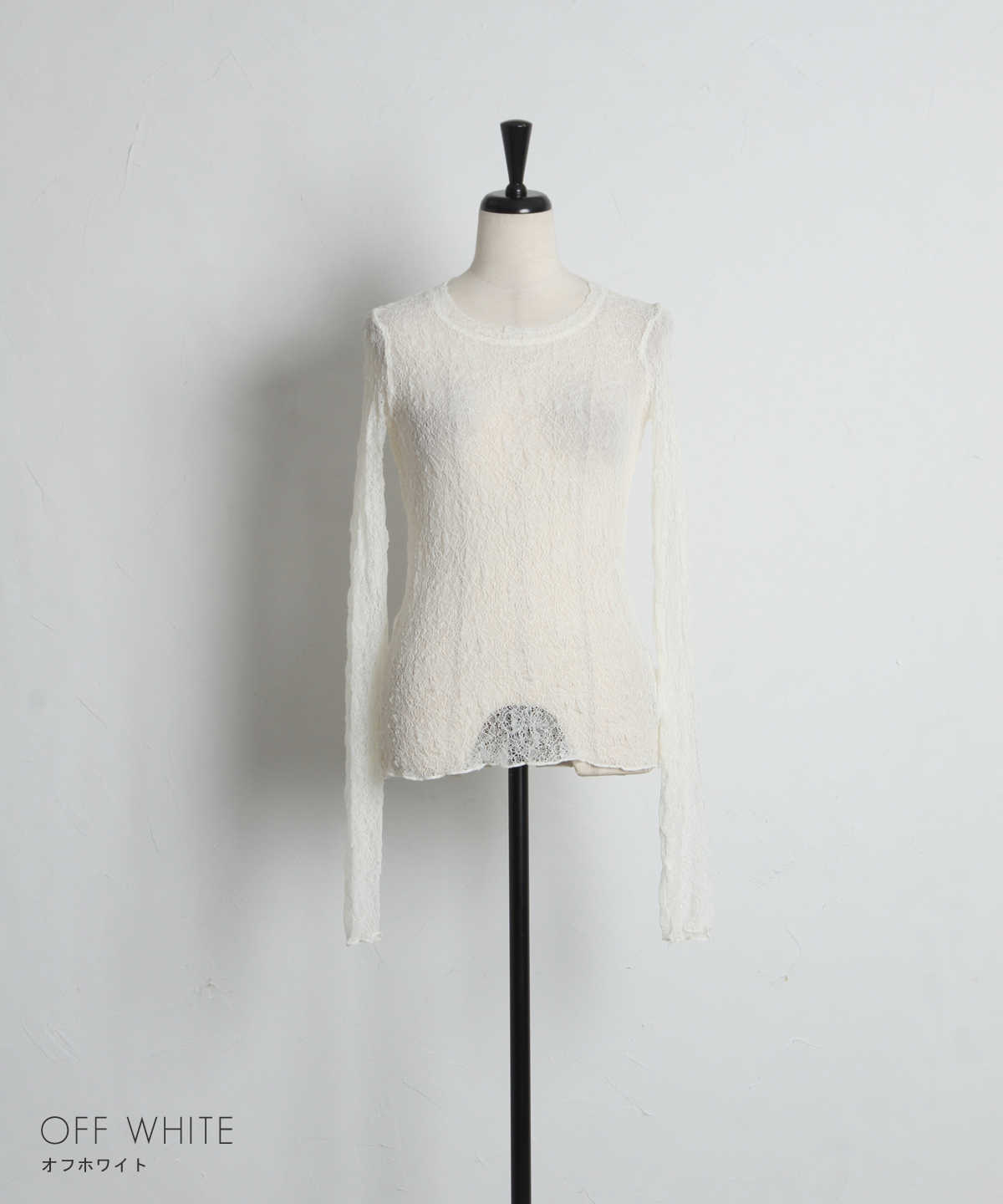 ほんのり透ける柔らかなレース素材が、女性らしい抜け感を演出する一枚。