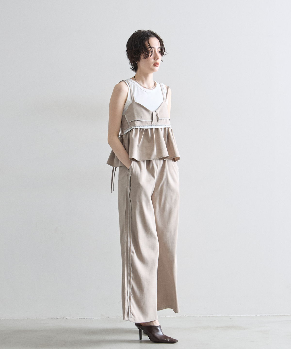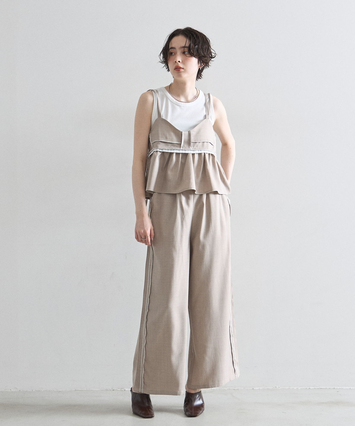 同素材のビスチェと合わせたモードなセットアップスタイルもおすすめです。