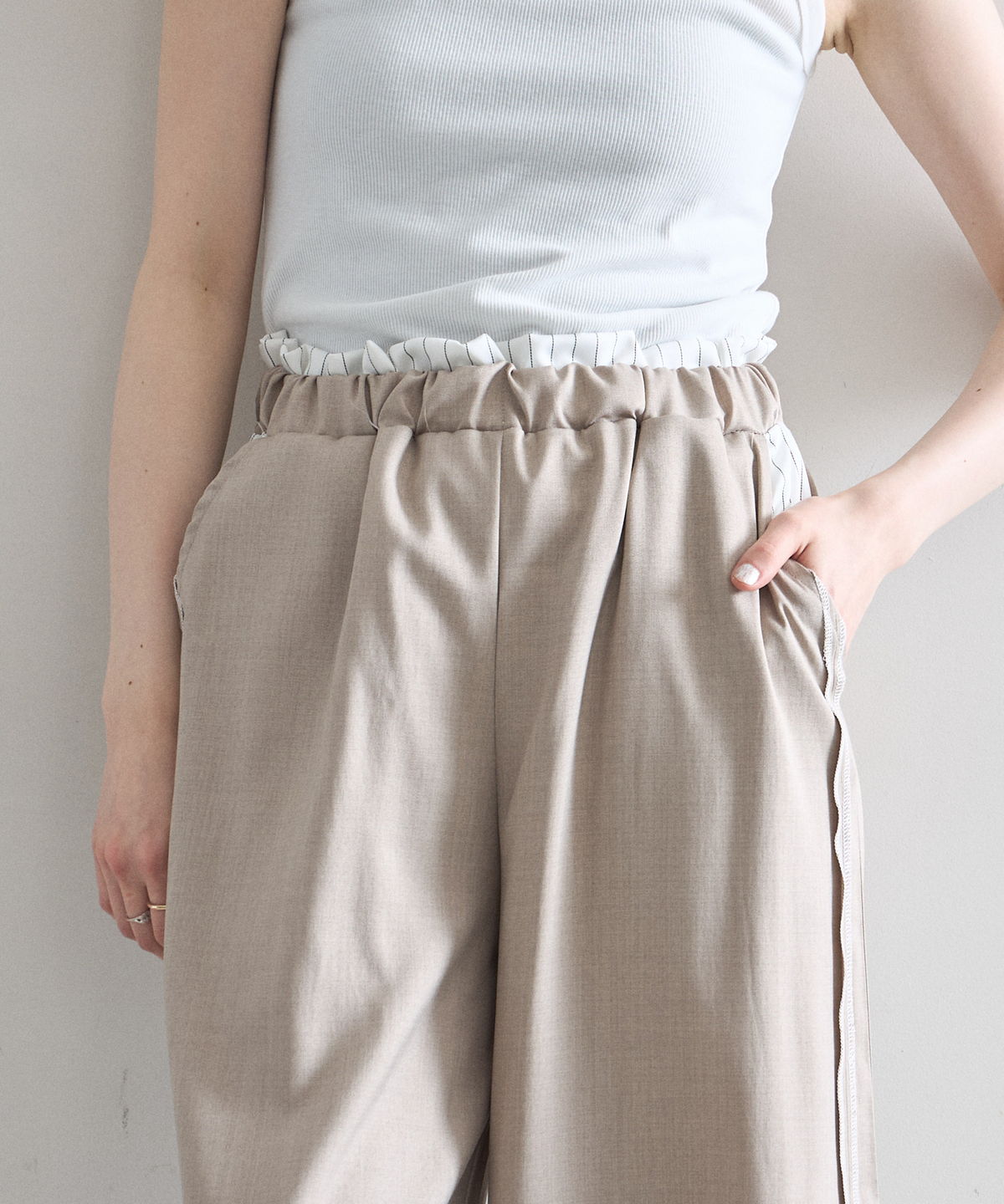 リラックス感のあるワイドシルエットとウエストゴム仕様で穿き心地も抜群。
