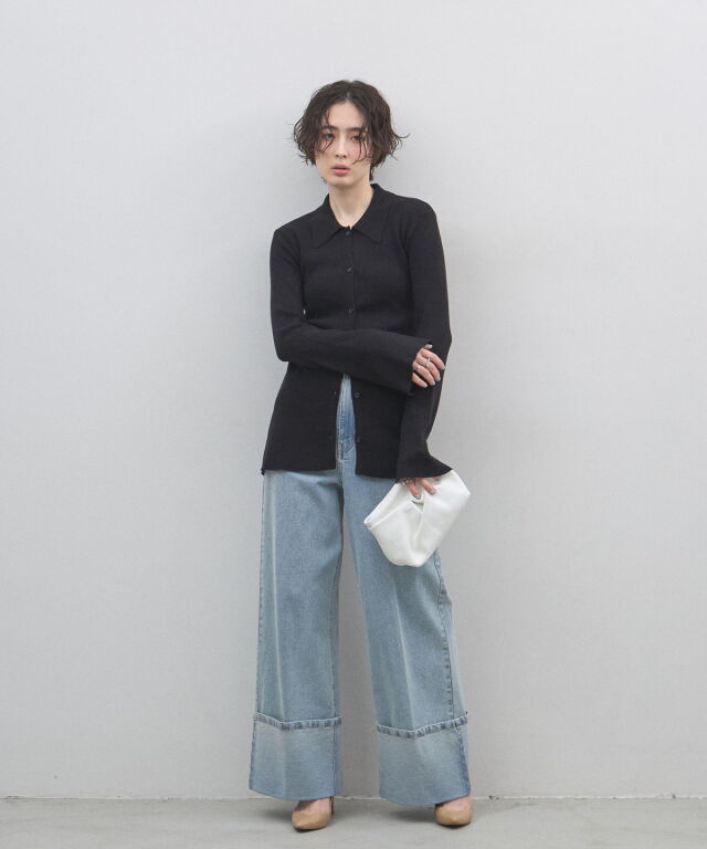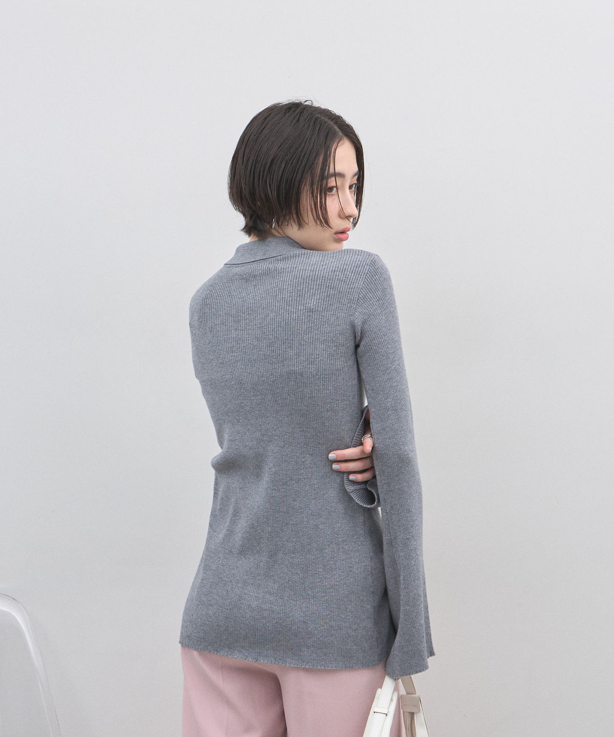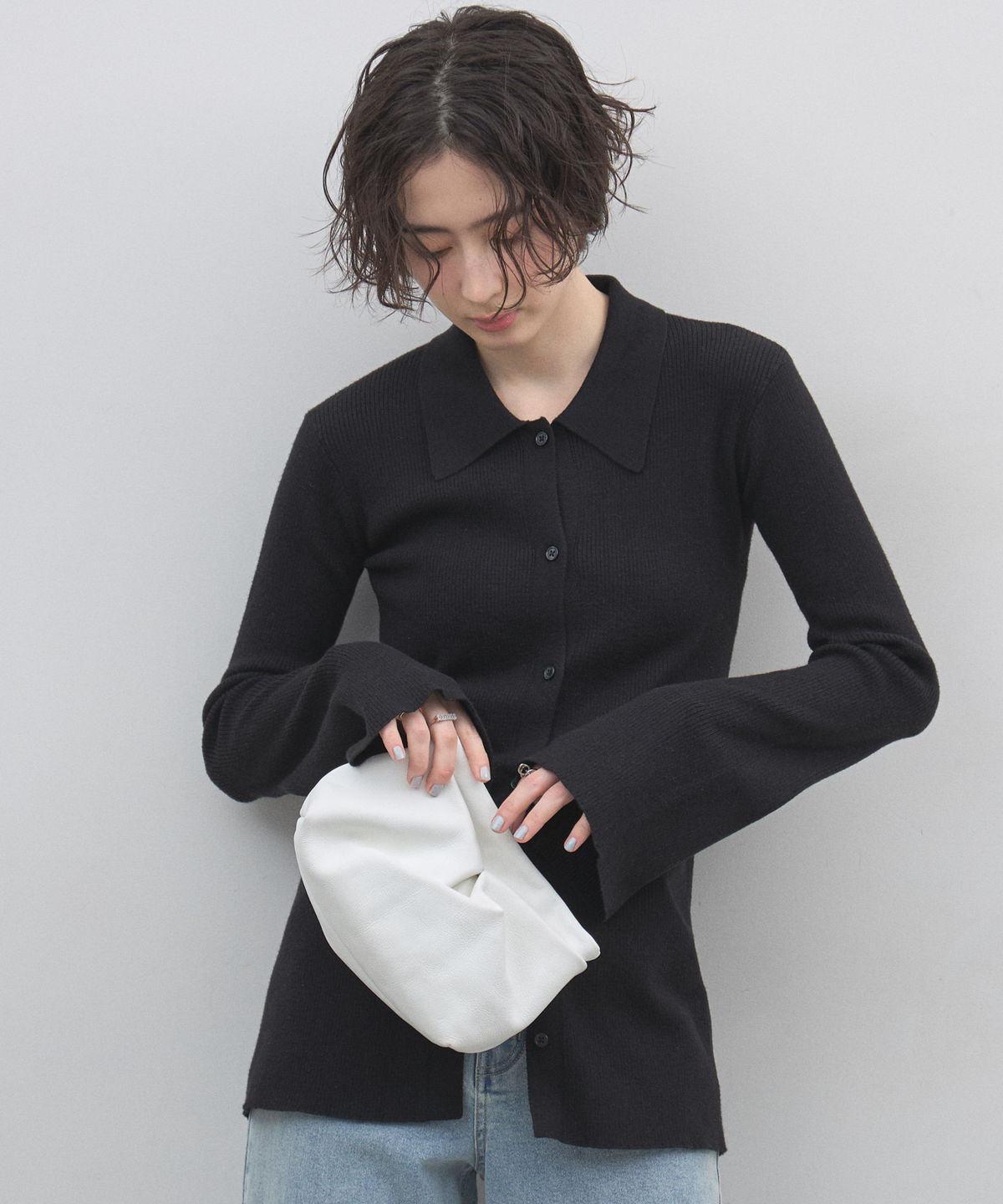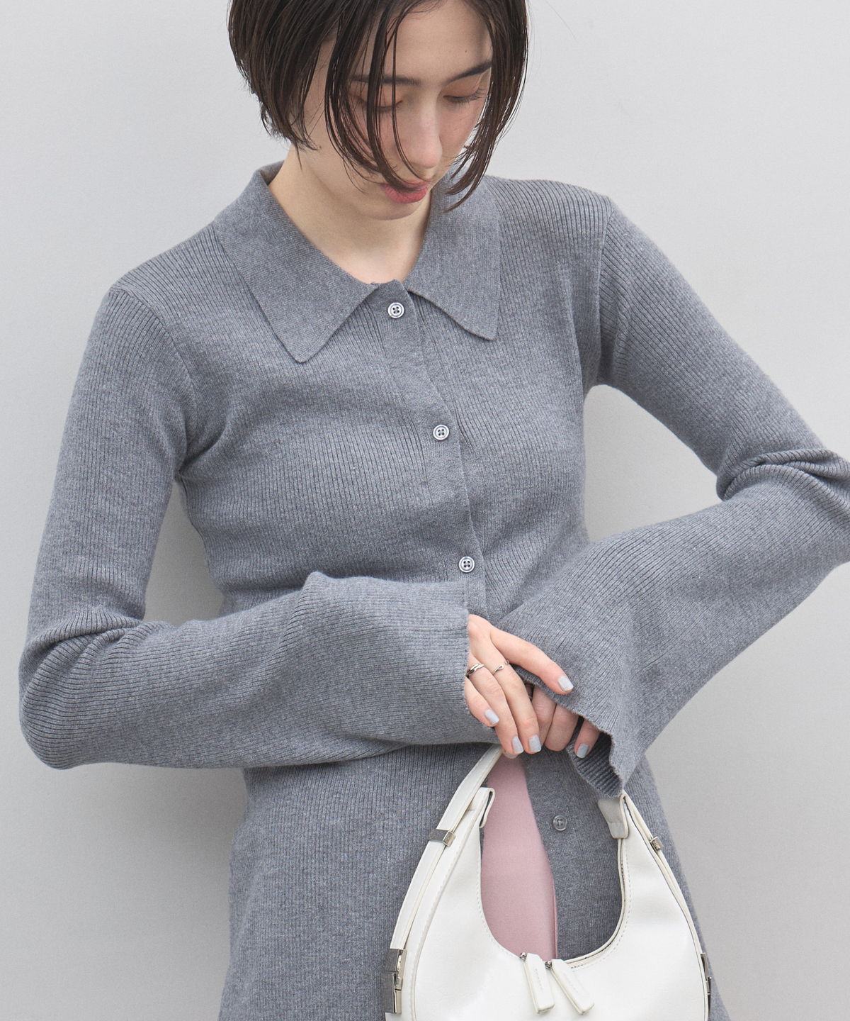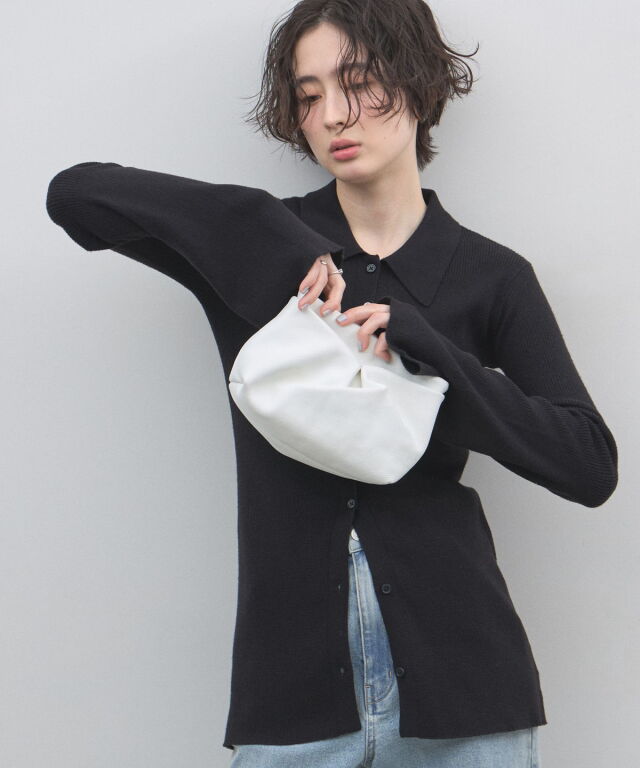 手元から溢れるエレガンス。ベルスリーブが描く、美シルエットのポロニットカーディガン。