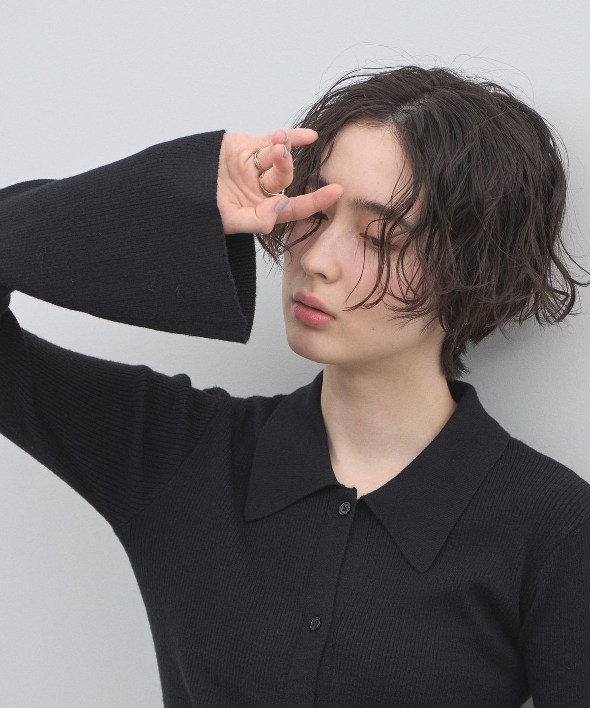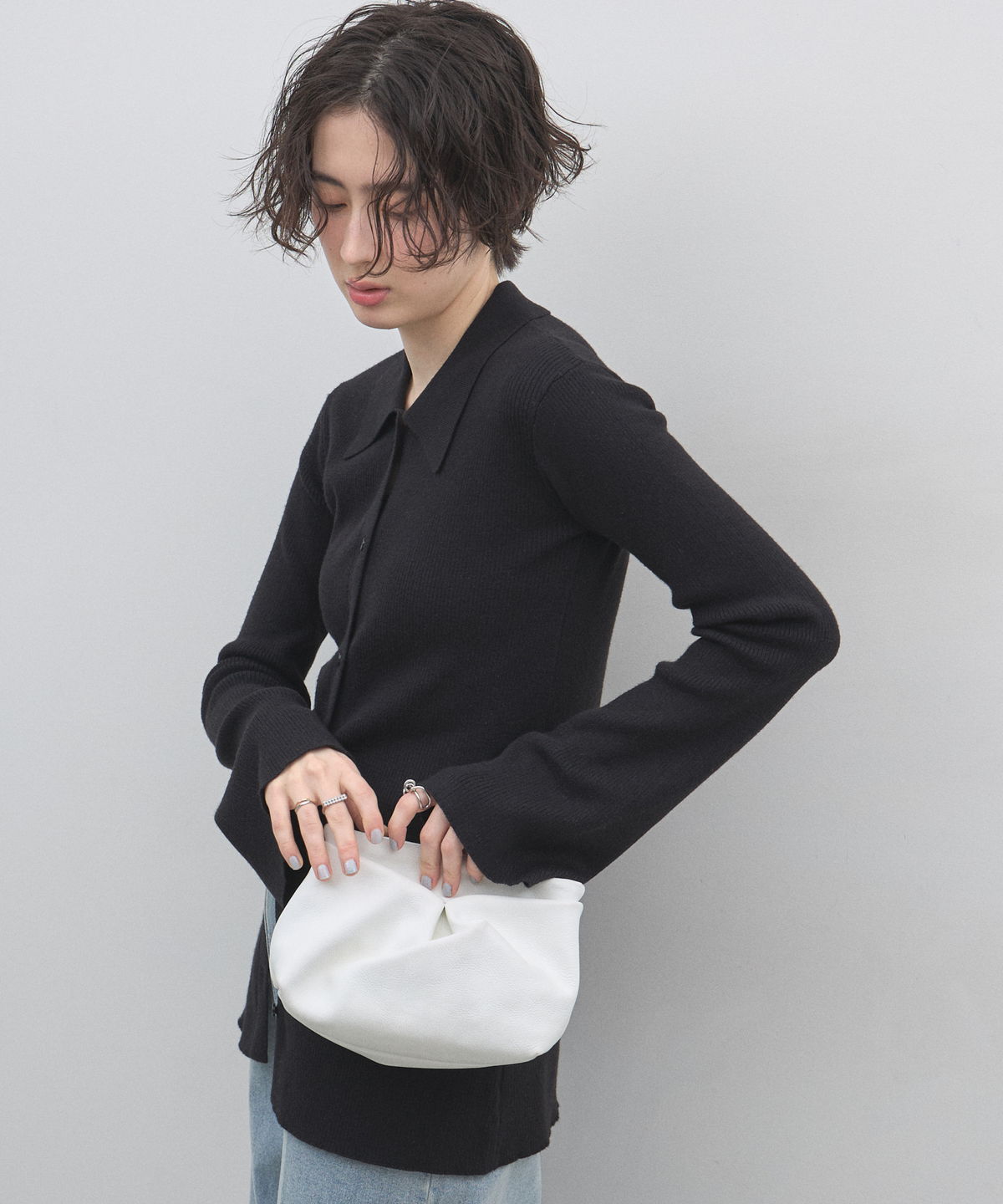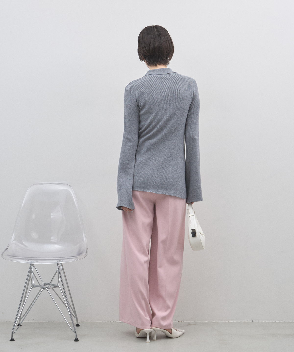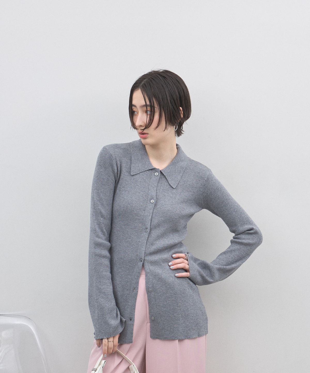 手元から溢れるエレガンス。ベルスリーブが描く、美シルエットのポロニットカーディガン。