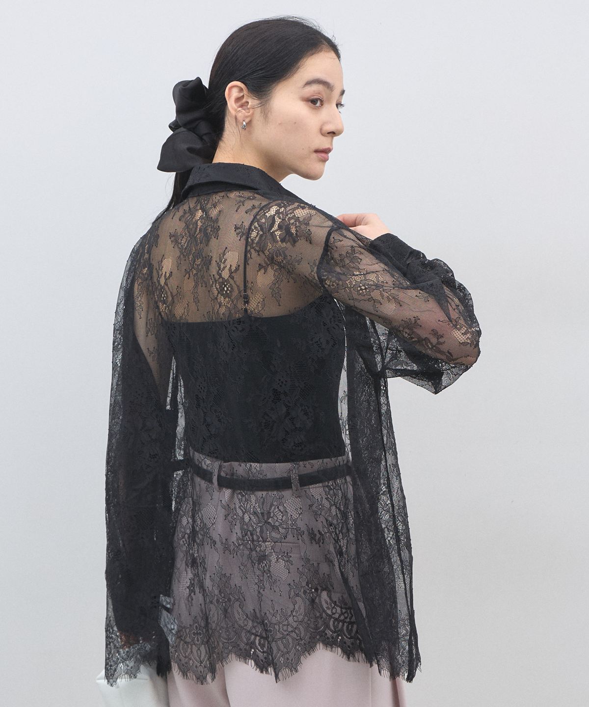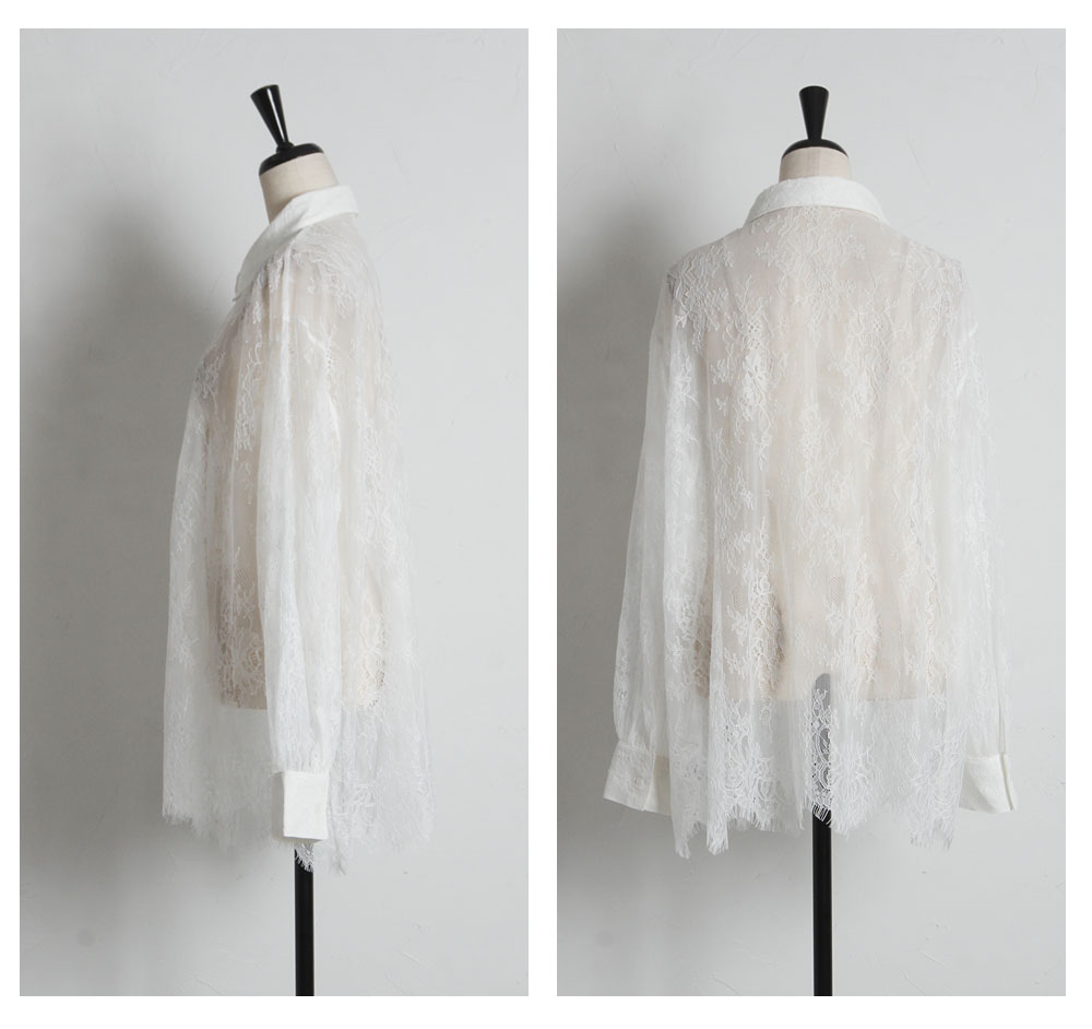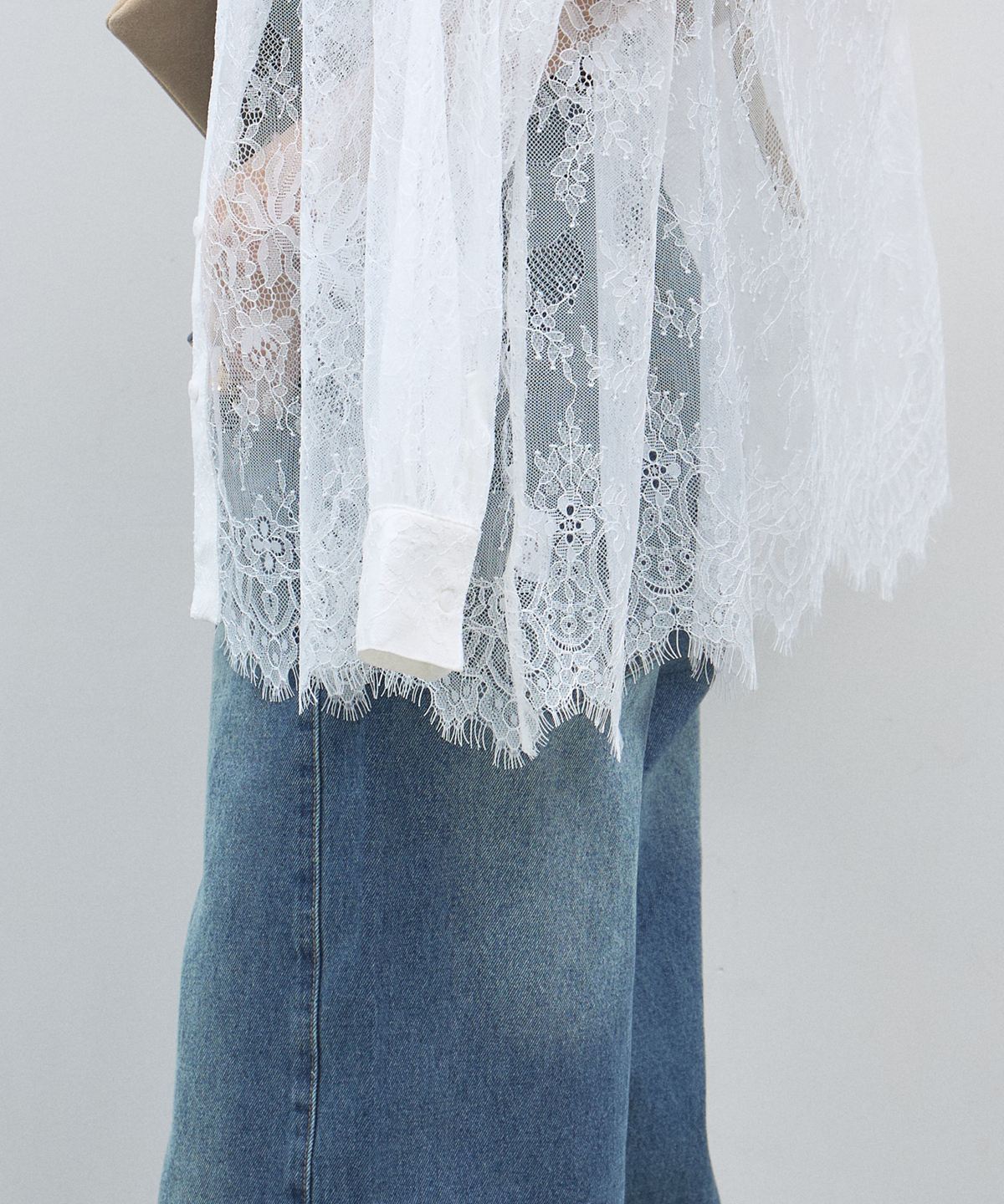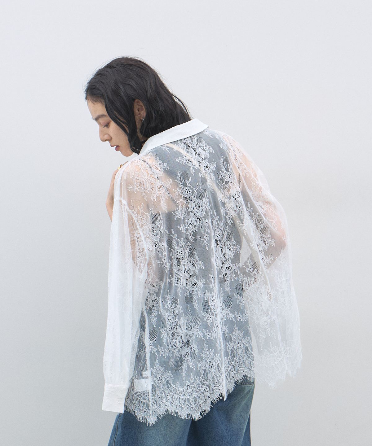 繊細な花柄の総レースが目を惹く、エレガントなシアーシャツです。