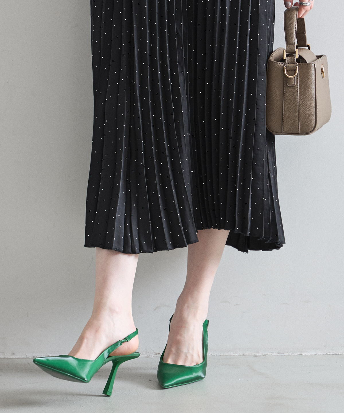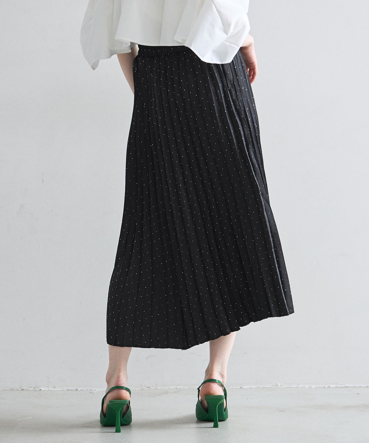 細やかなドット柄が上品に踊る、大人のための洗練プリーツスカート。