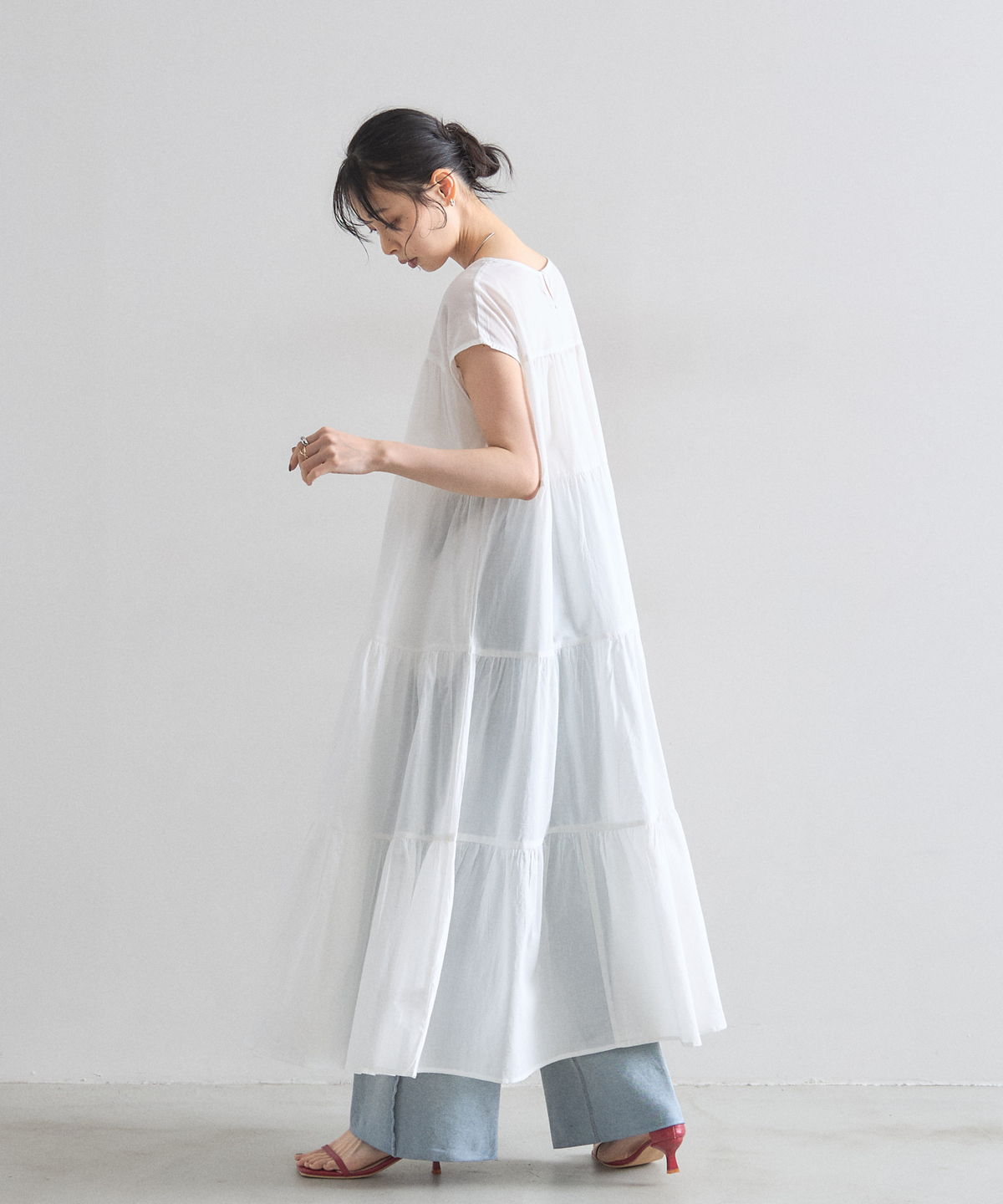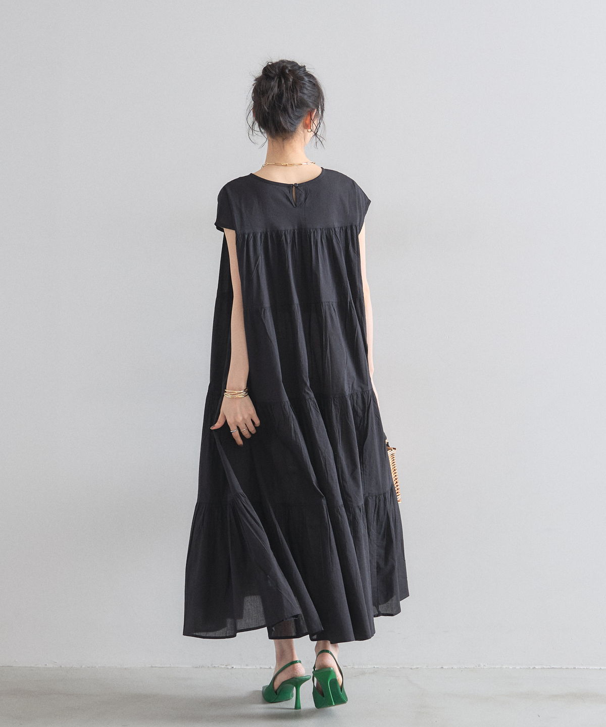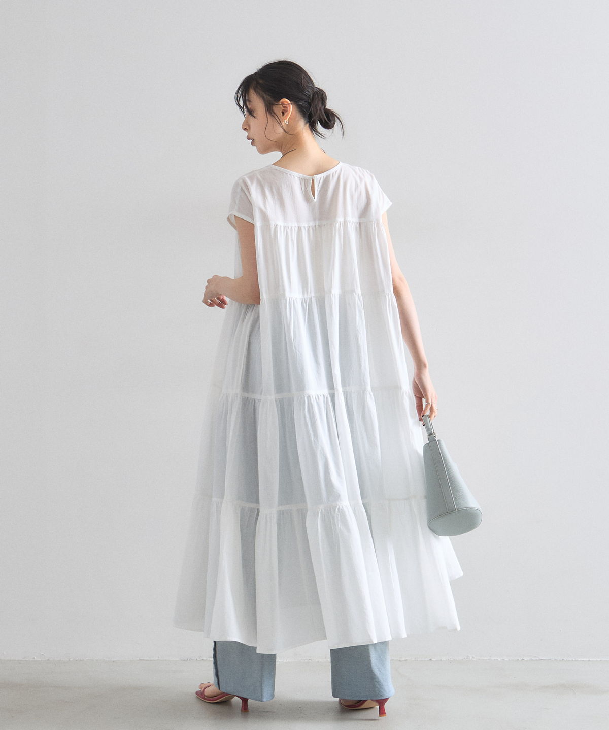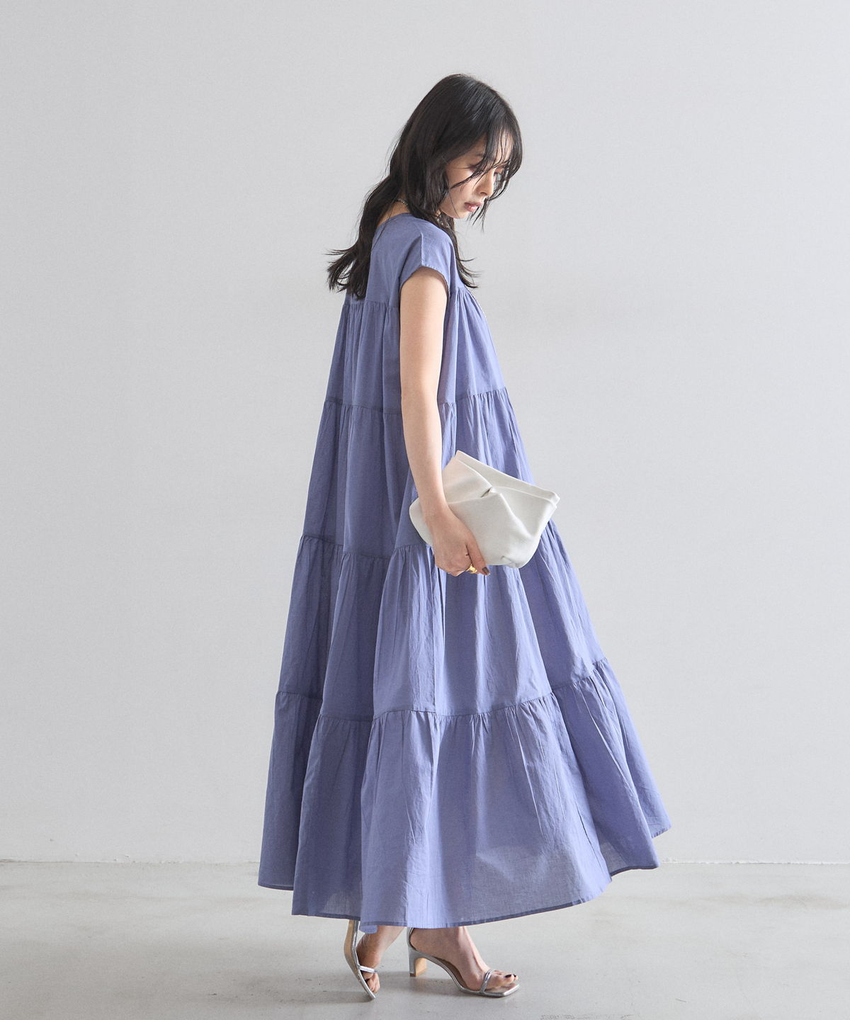 4段のティアード切り替えで華やかなシルエットに仕上げました。