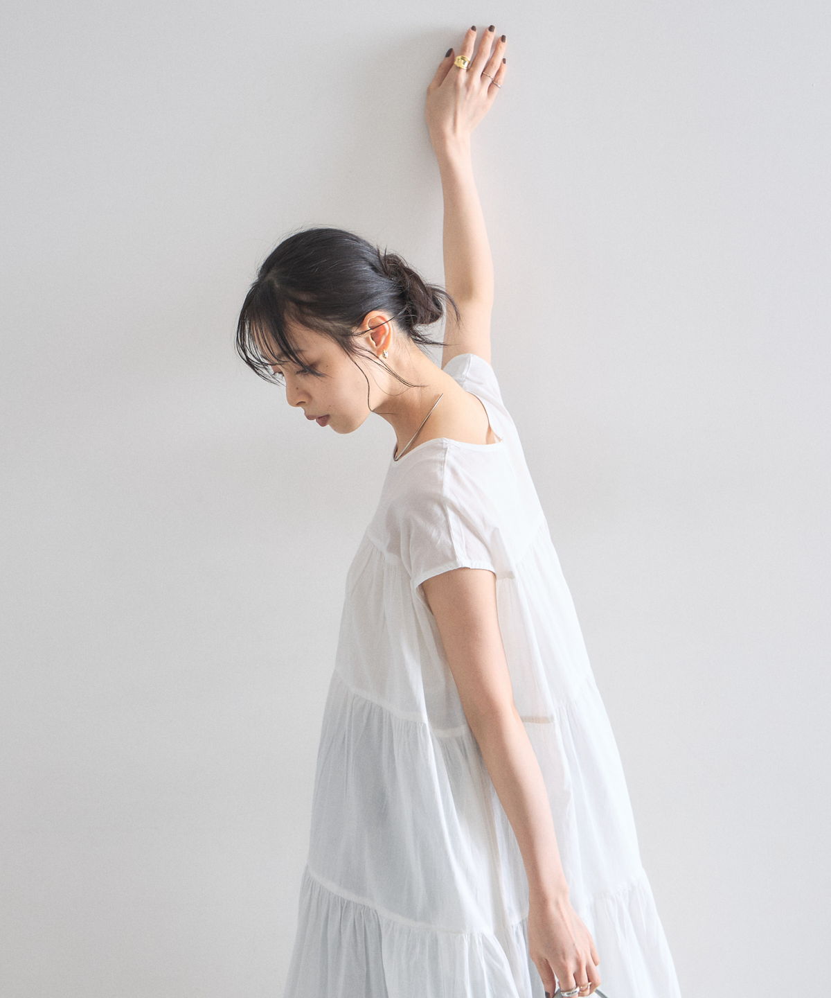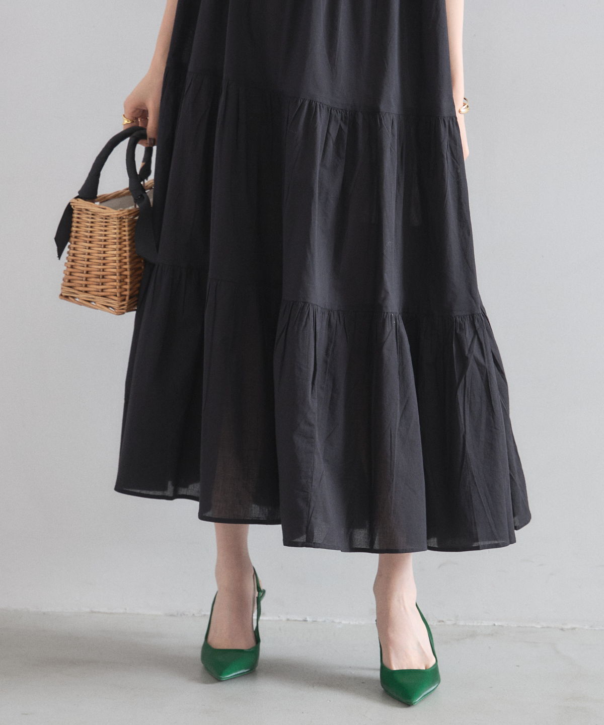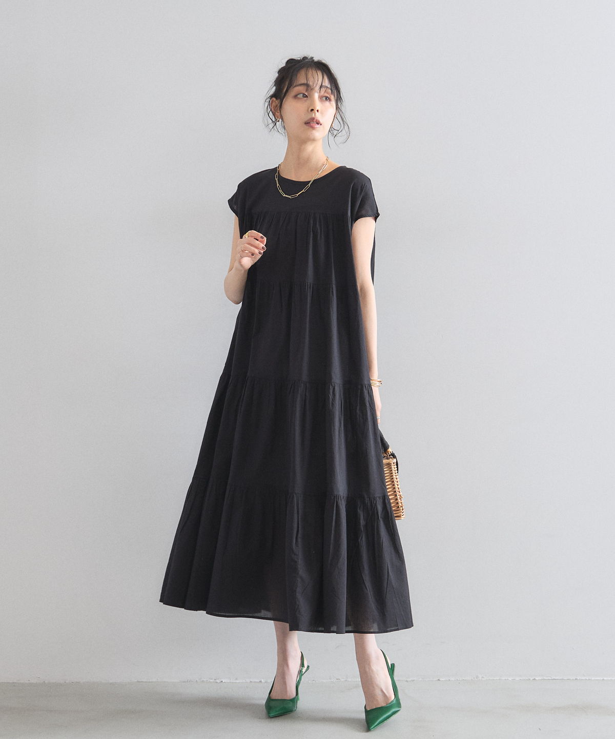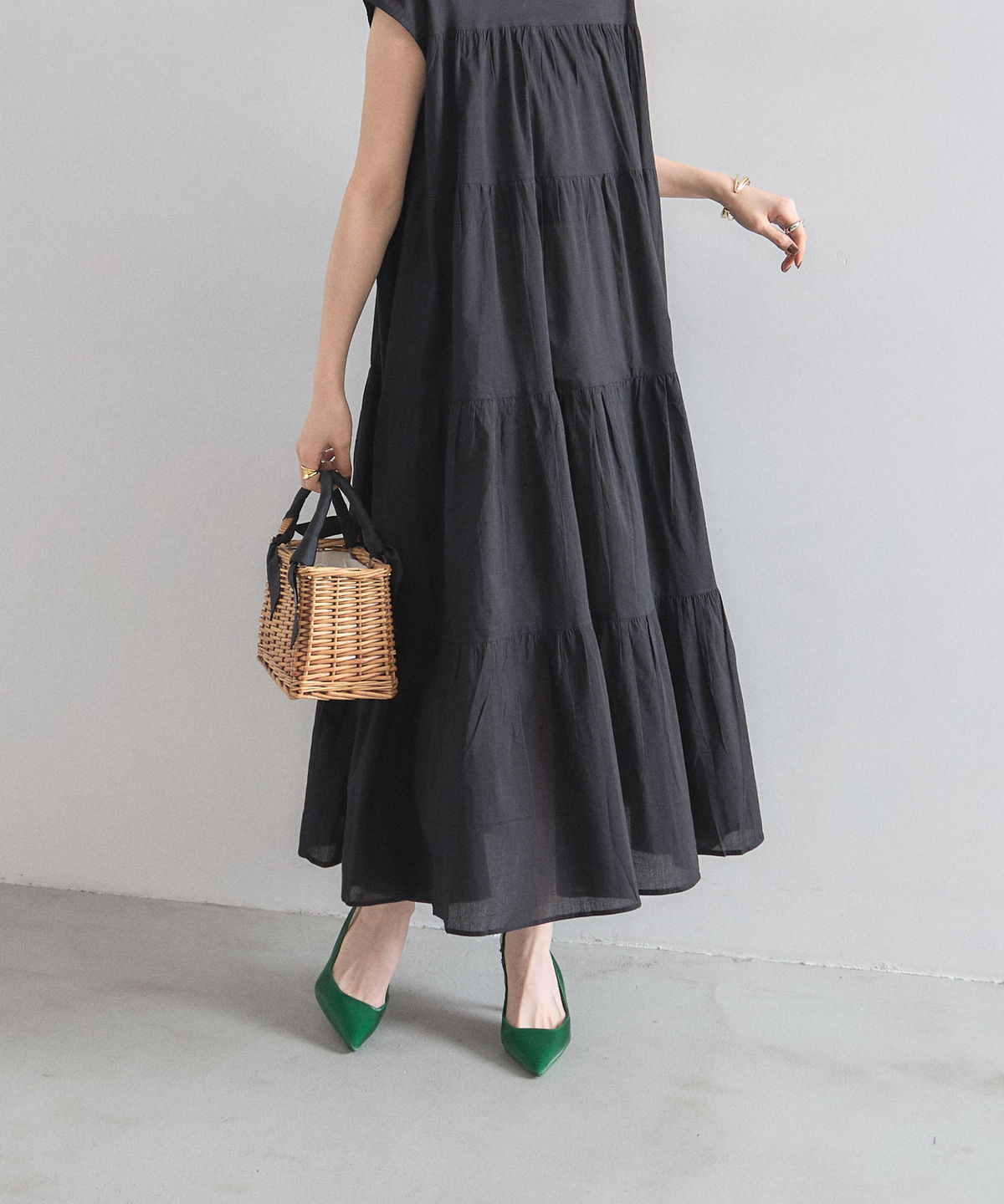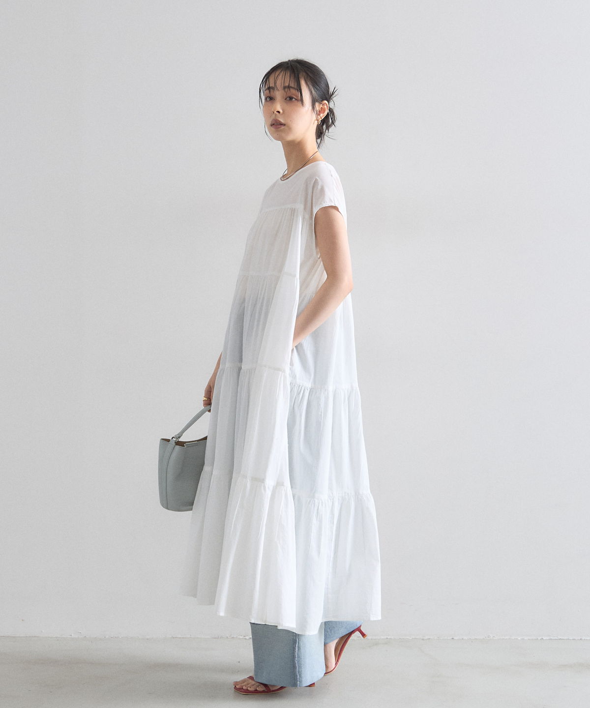 4段のティアード切り替えで華やかなシルエットに仕上げました。