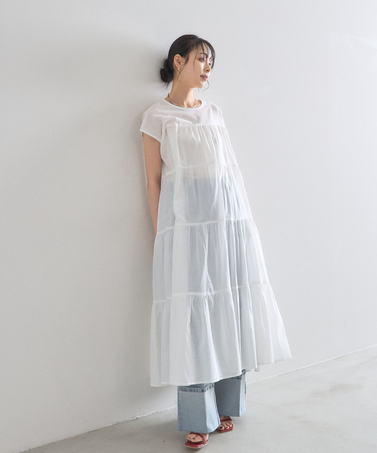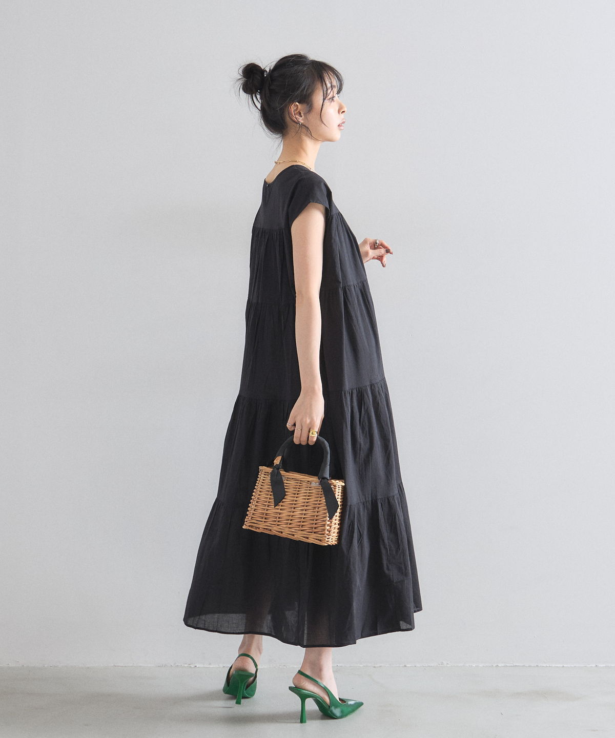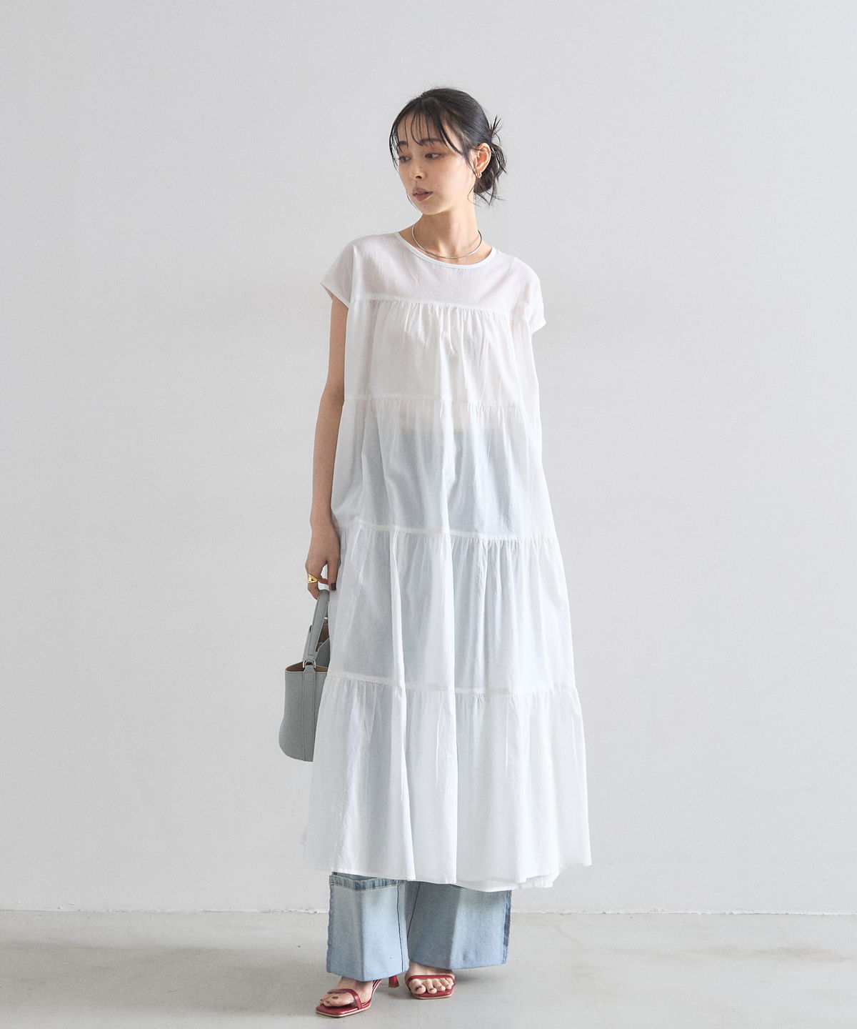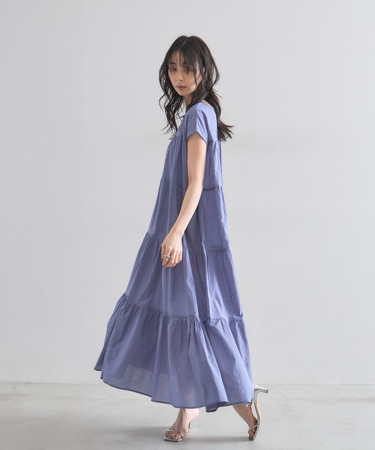 4段のティアード切り替えで華やかなシルエットに仕上げました。