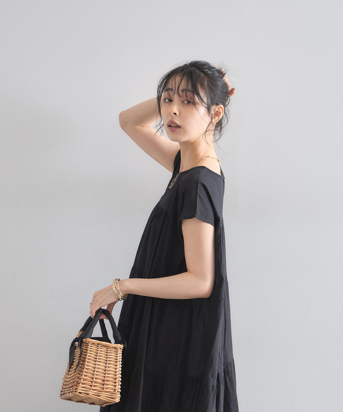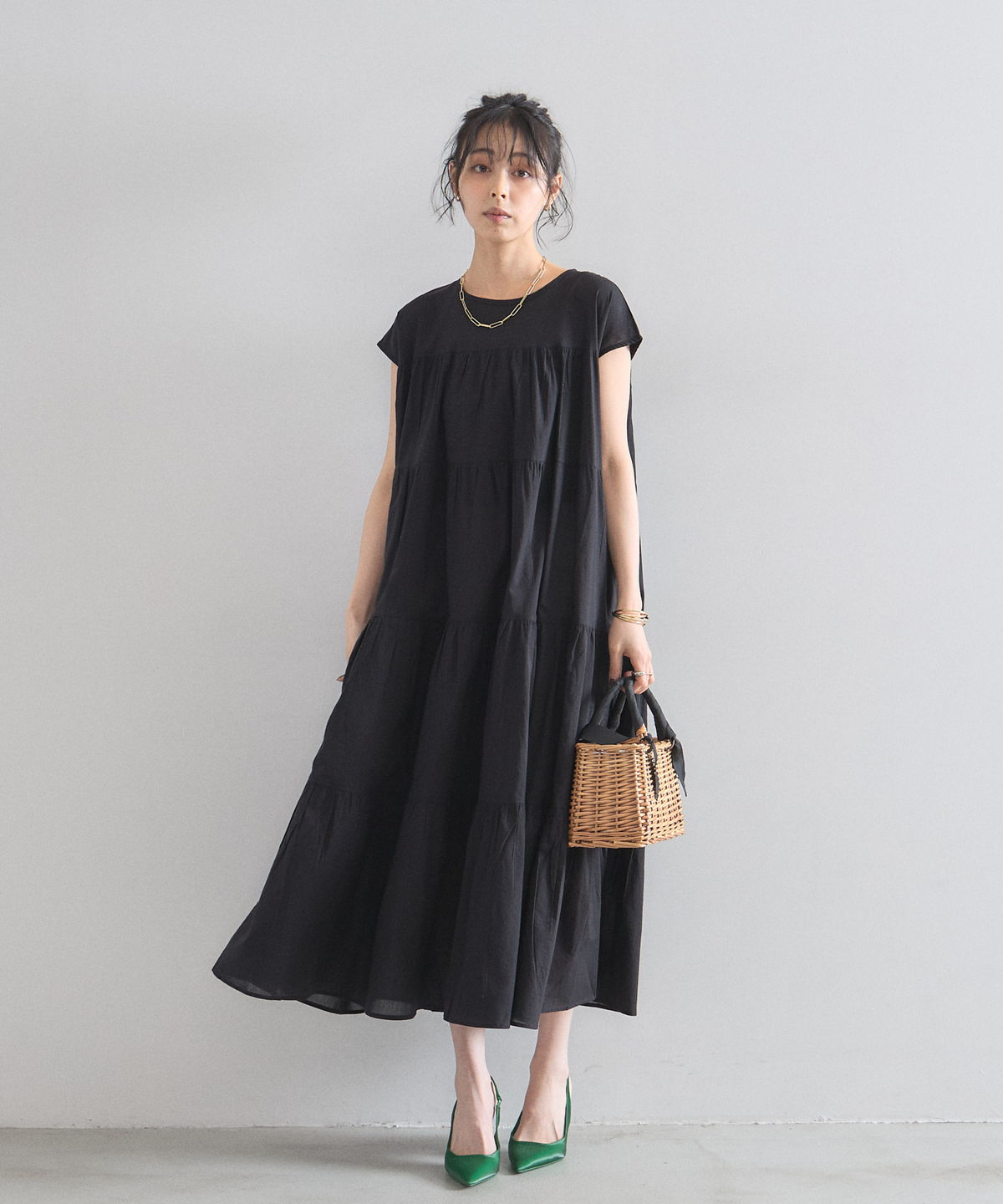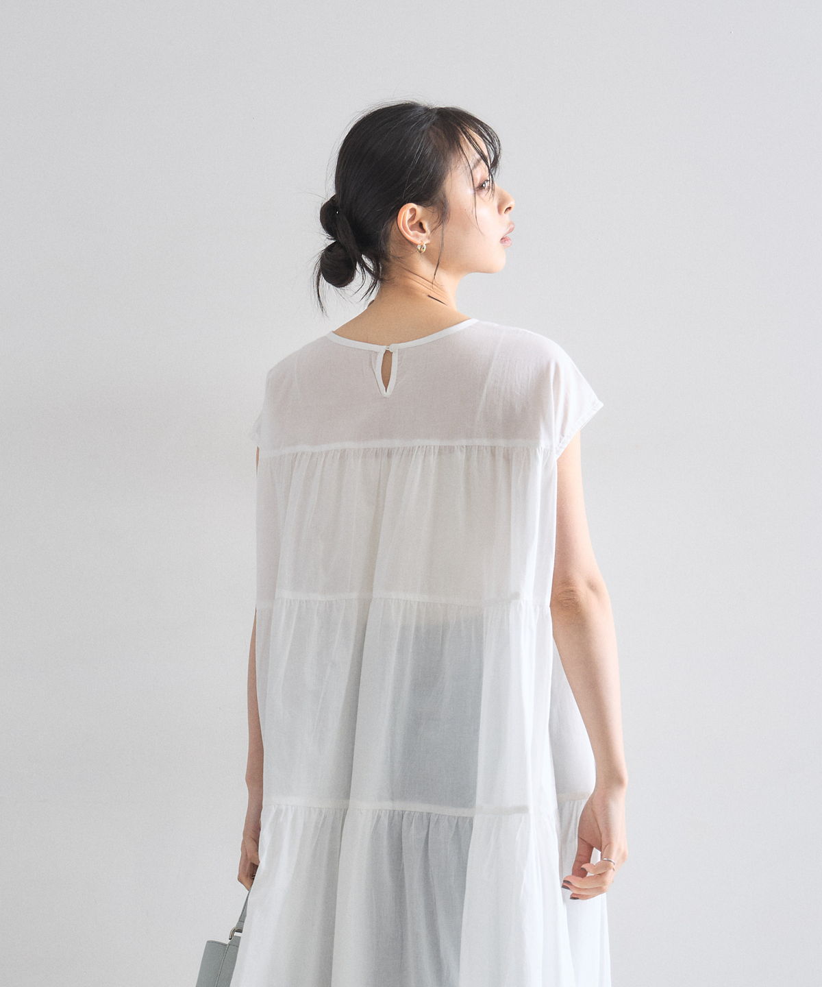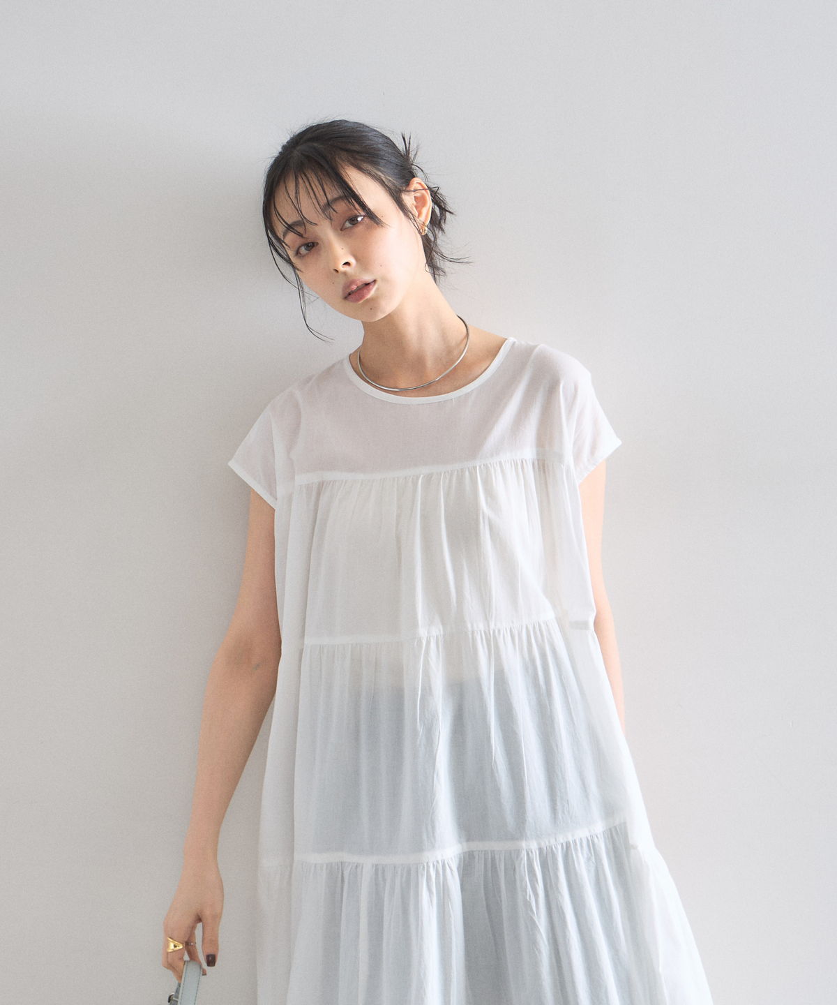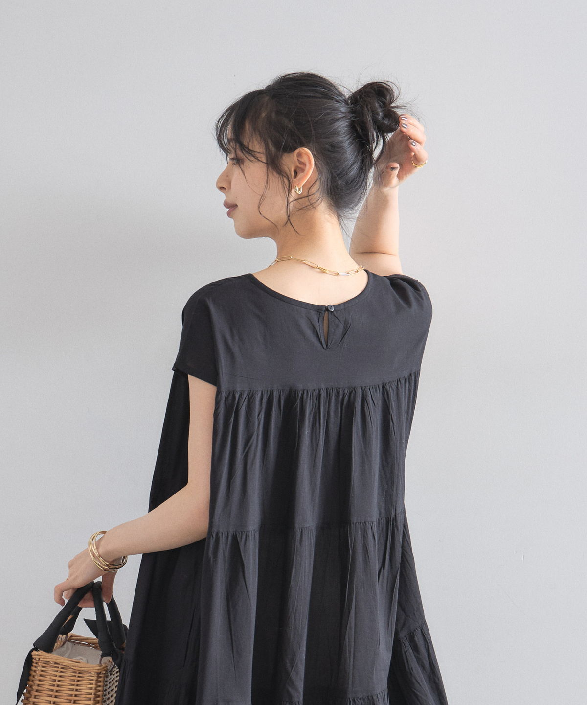 4段のティアード切り替えで華やかなシルエットに仕上げました。