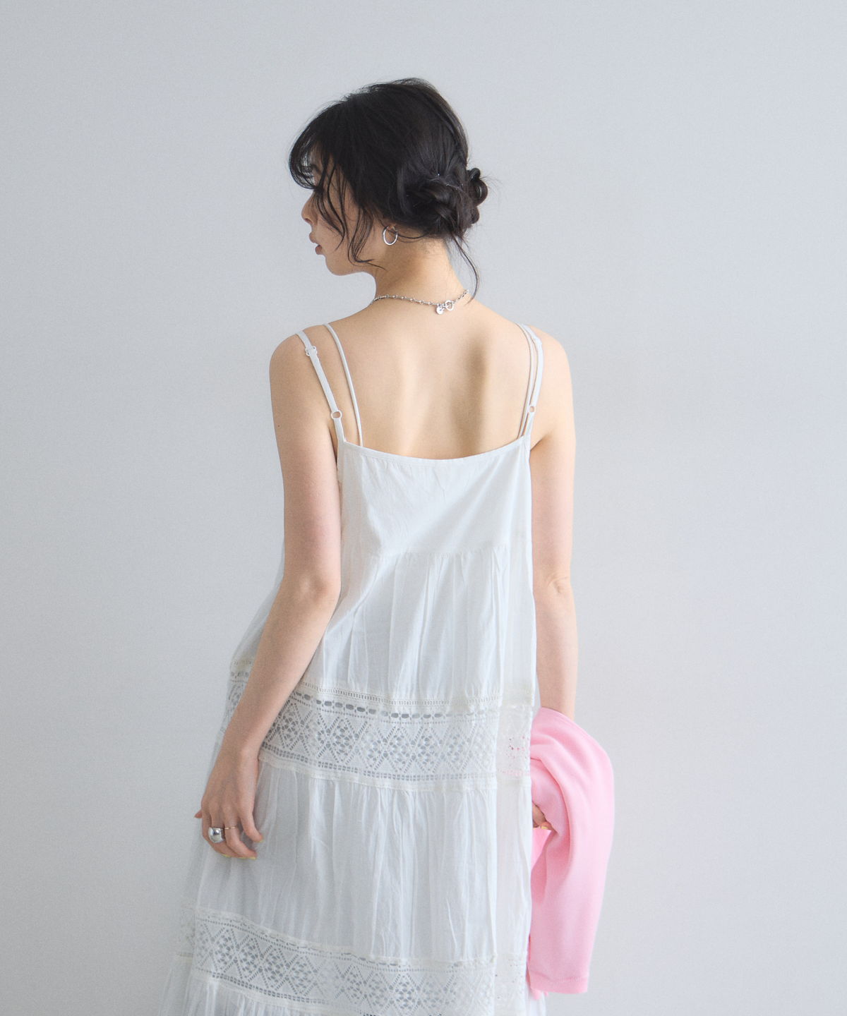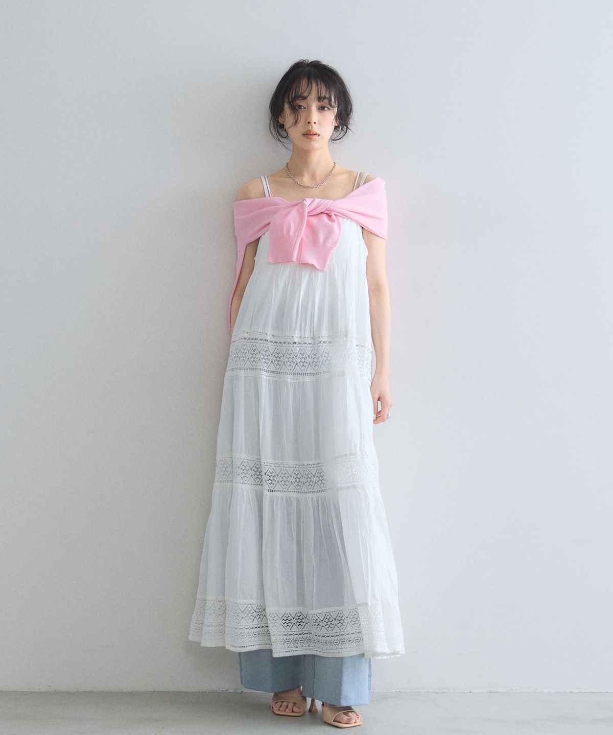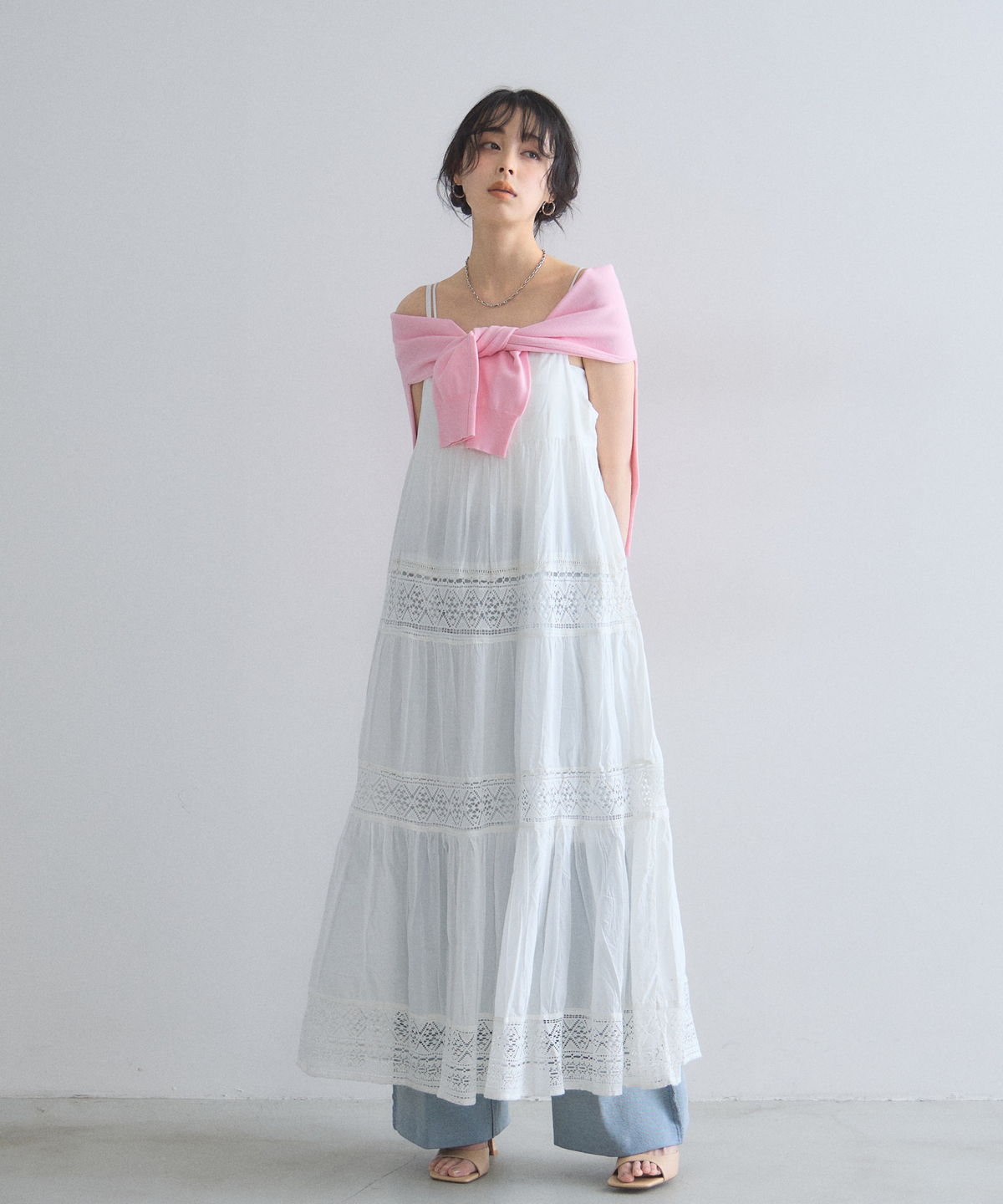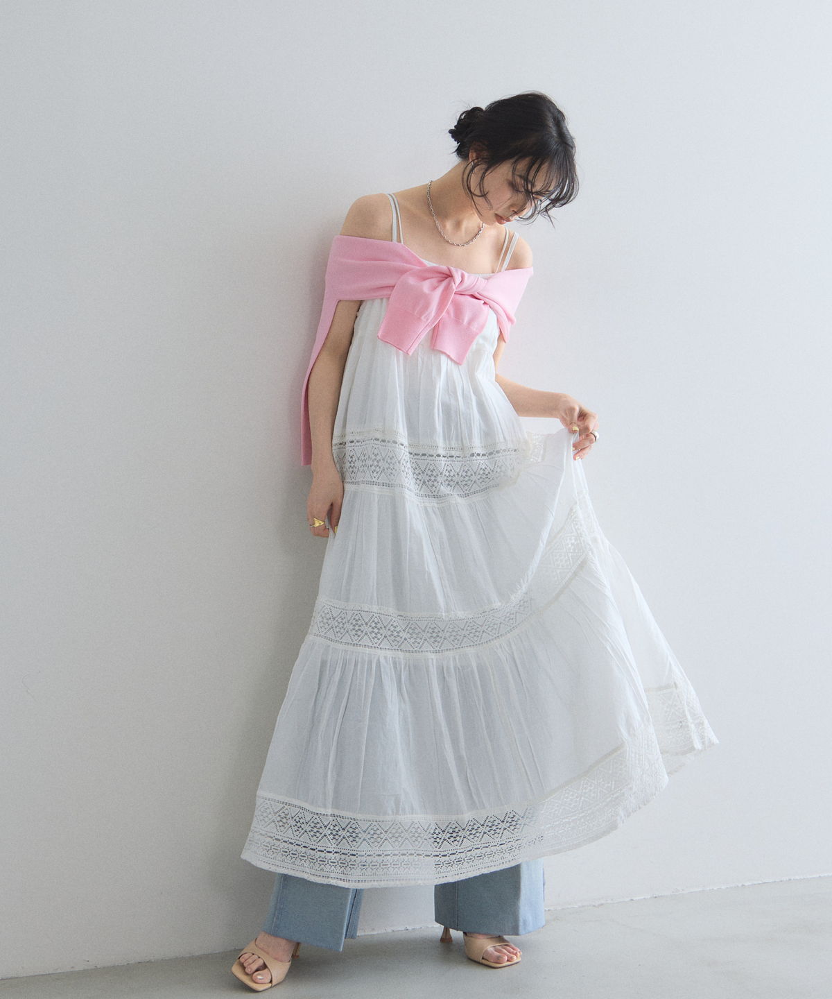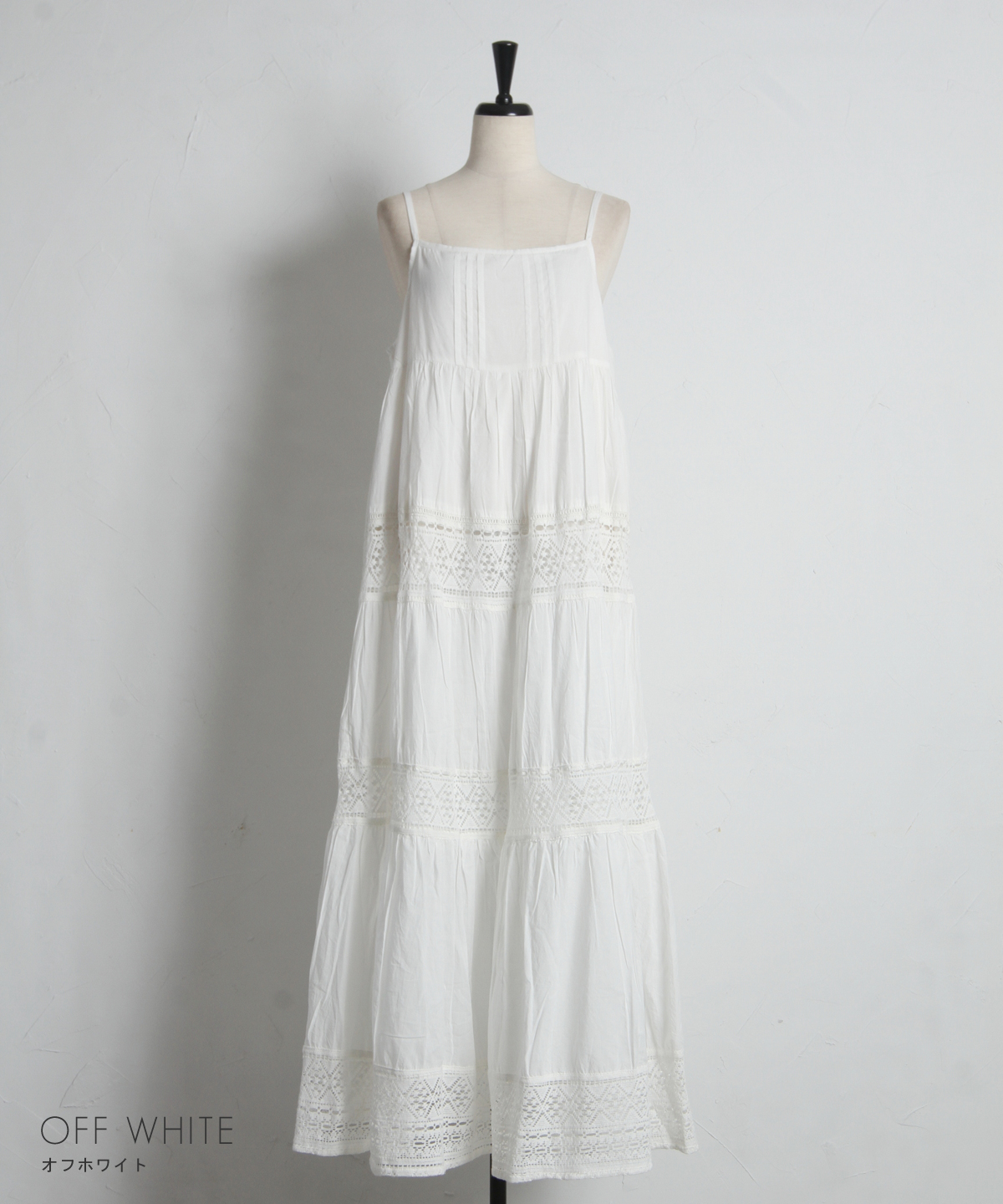 贅沢なレース使いとティアードシルエットが目を惹く、主役級キャミワンピース。