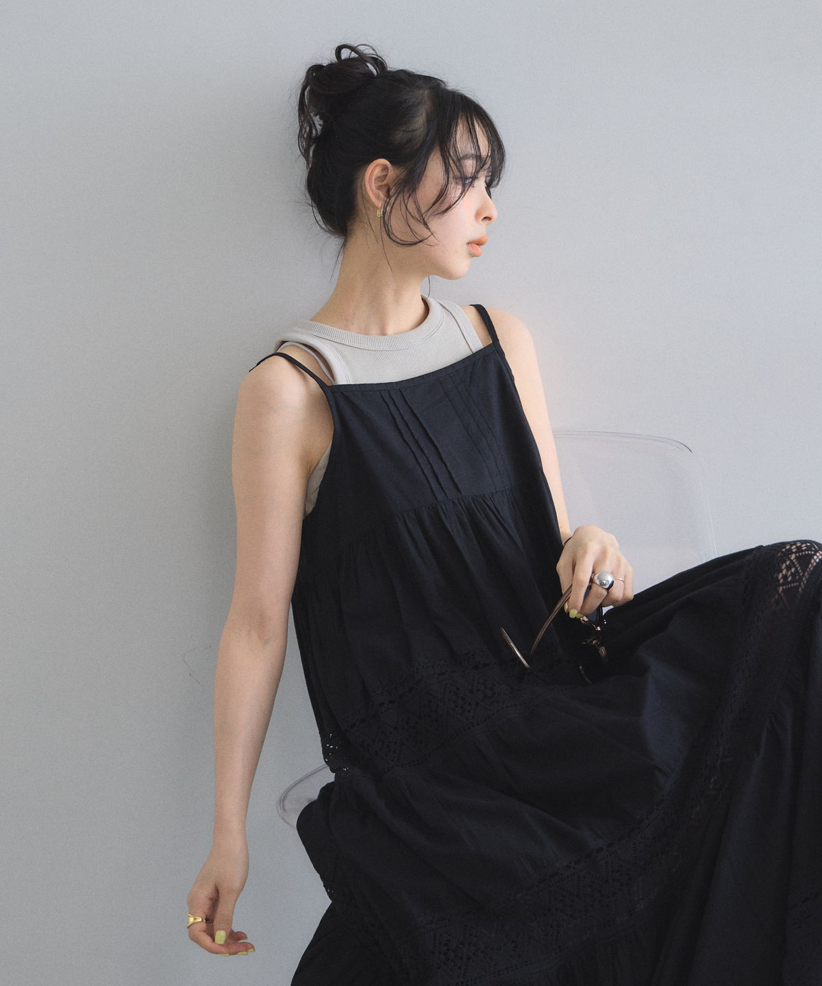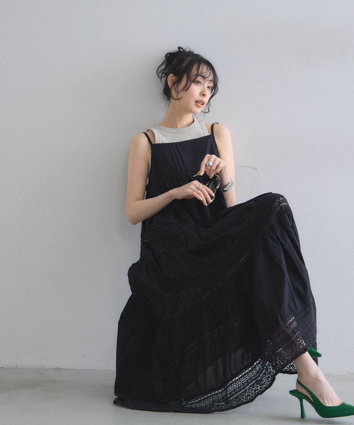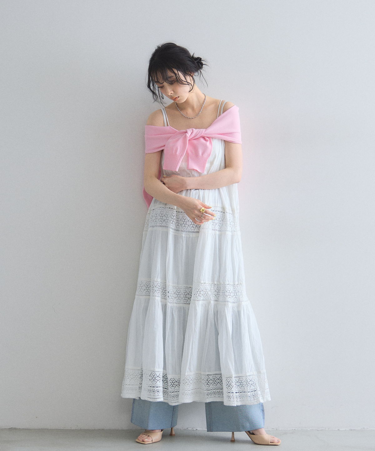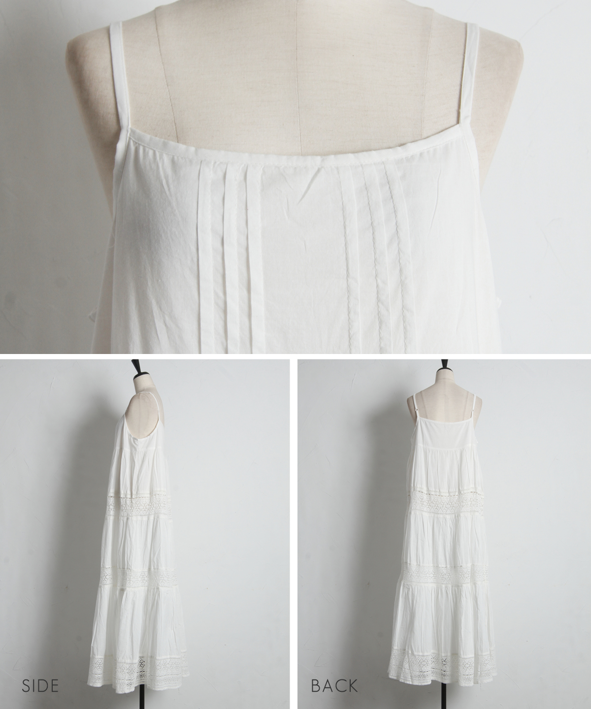 贅沢なレース使いとティアードシルエットが目を惹く、主役級キャミワンピース。