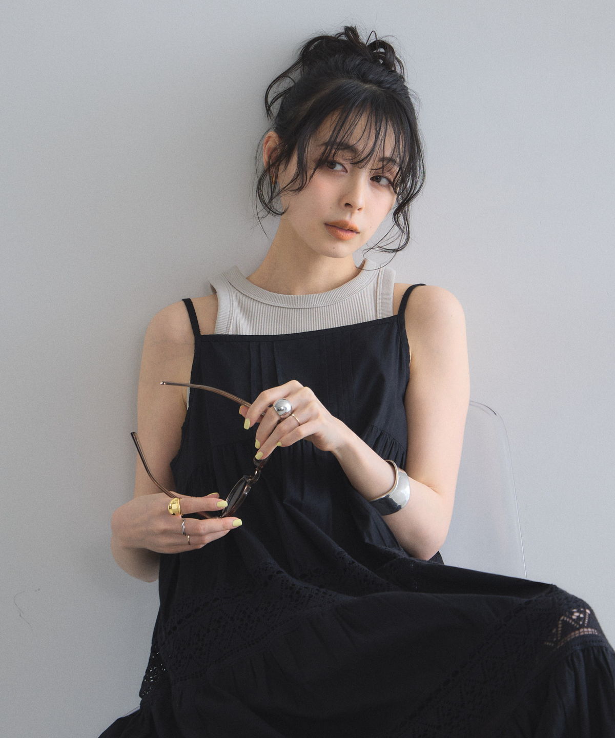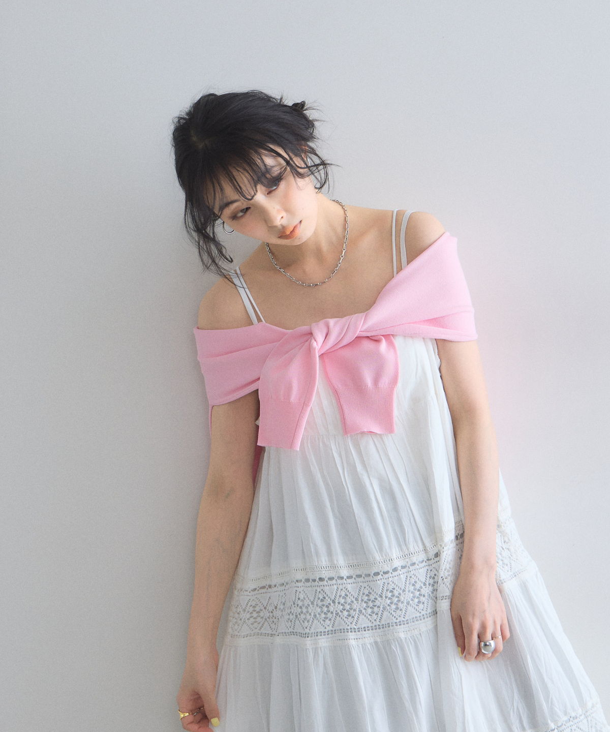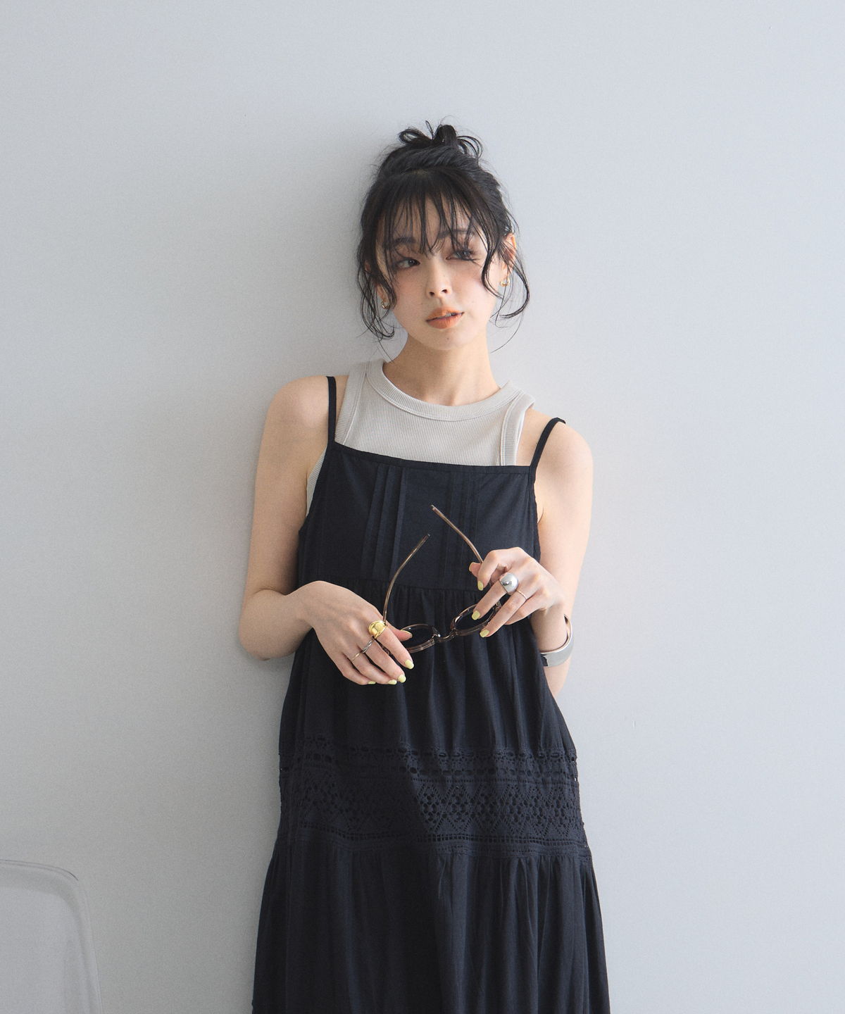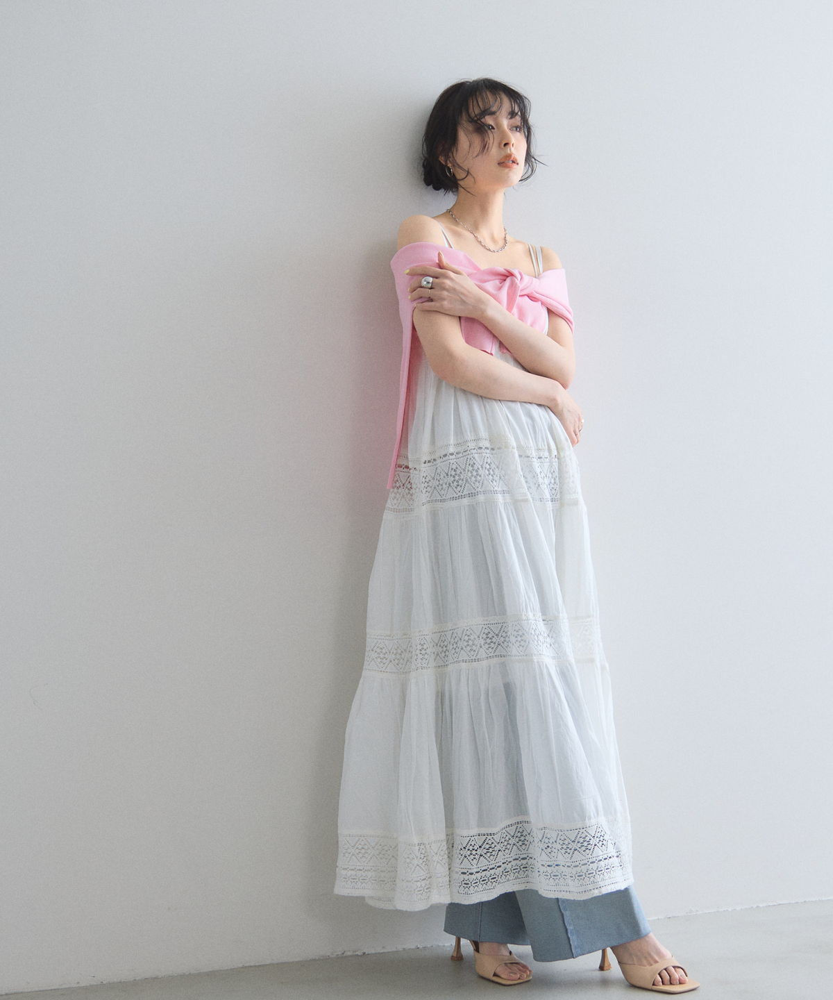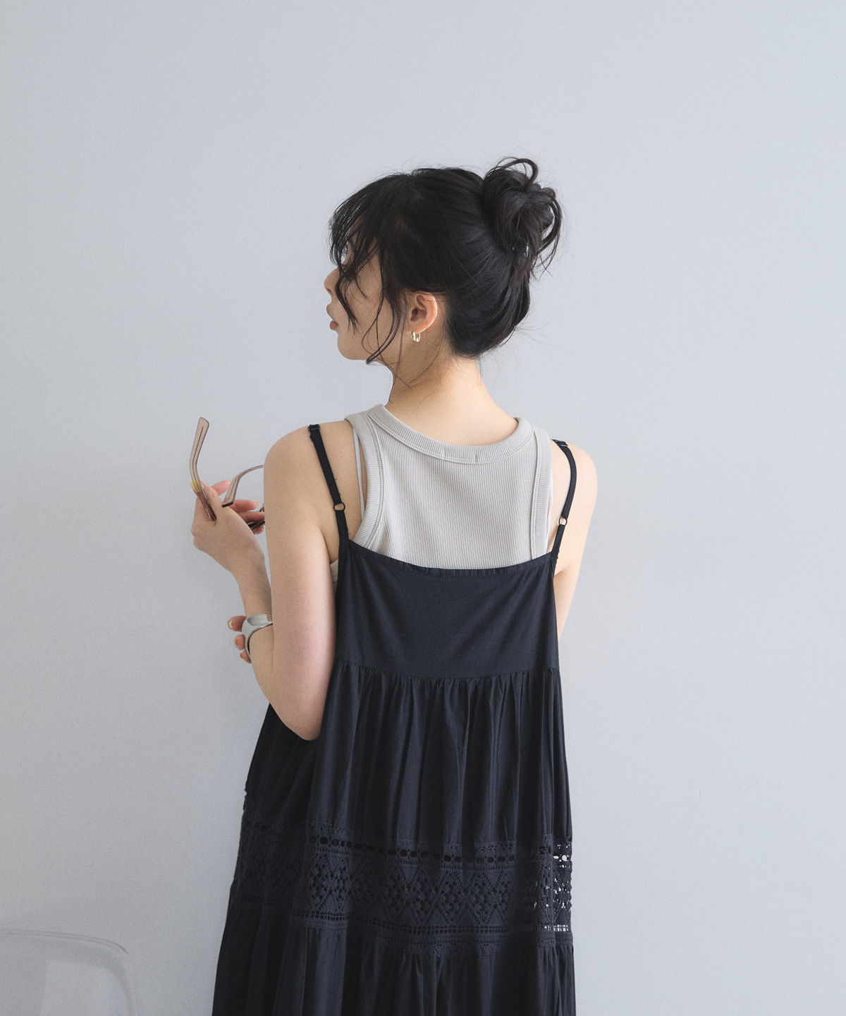 贅沢なレース使いとティアードシルエットが目を惹く、主役級キャミワンピース。