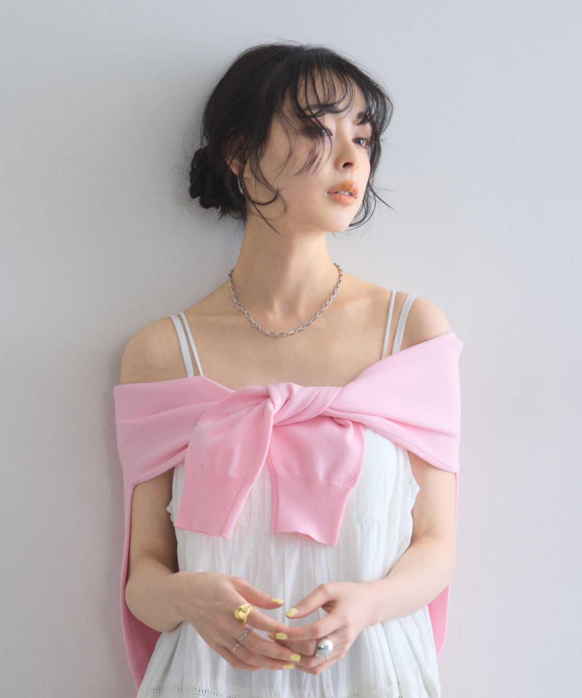体のラインを拾わずリラクシーかつ華やかな装いを叶えてくれる一着です。