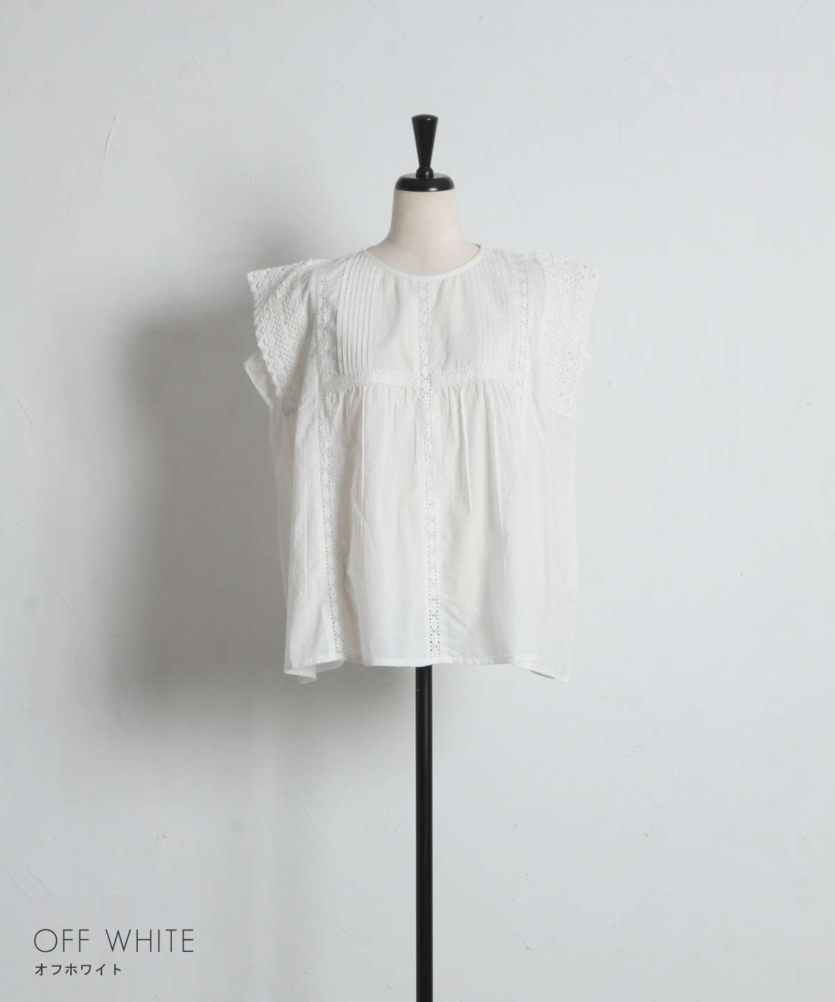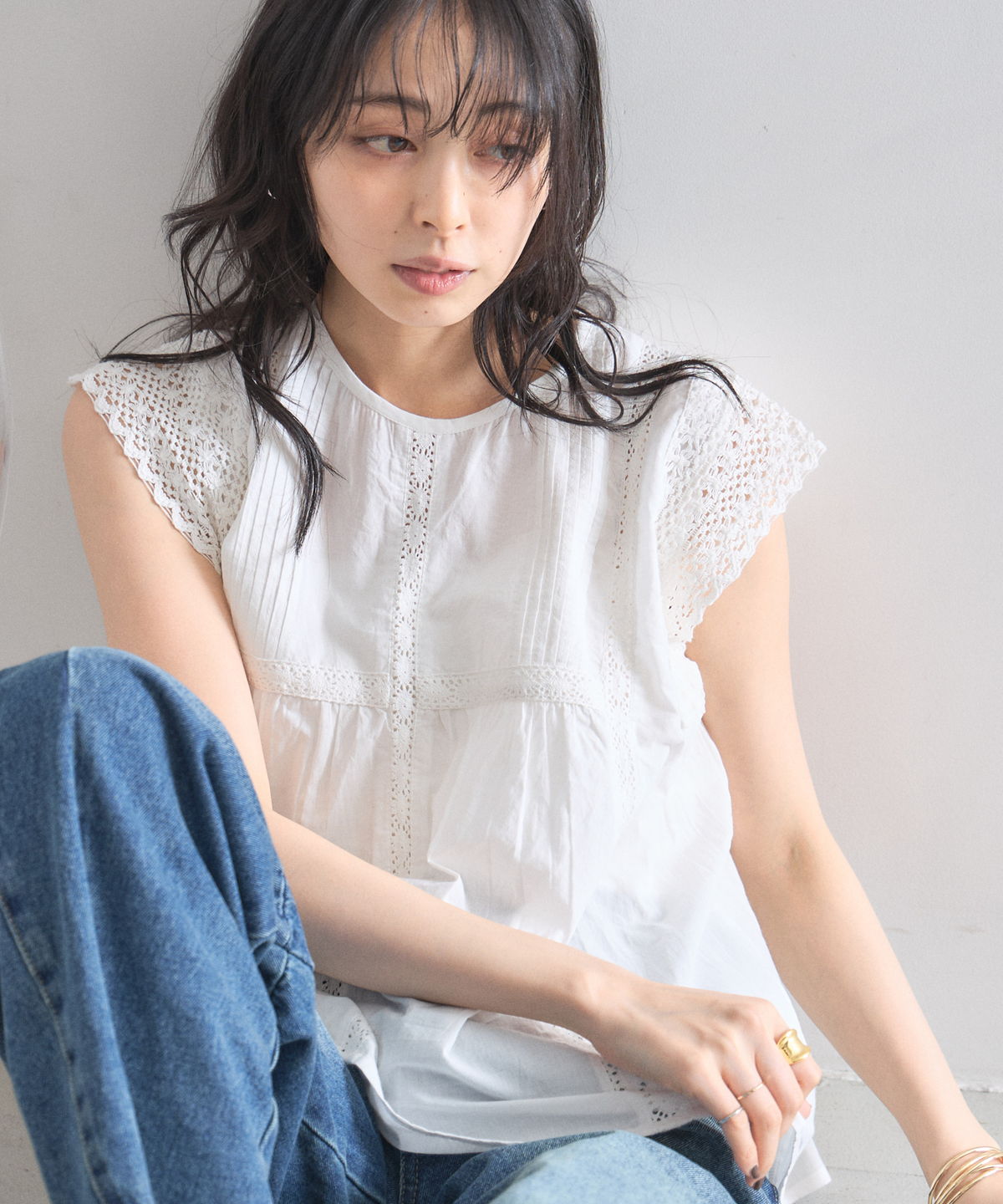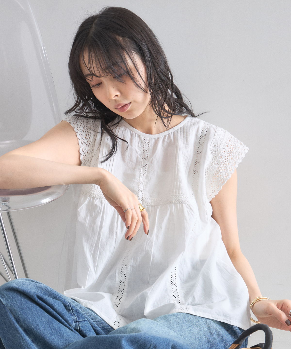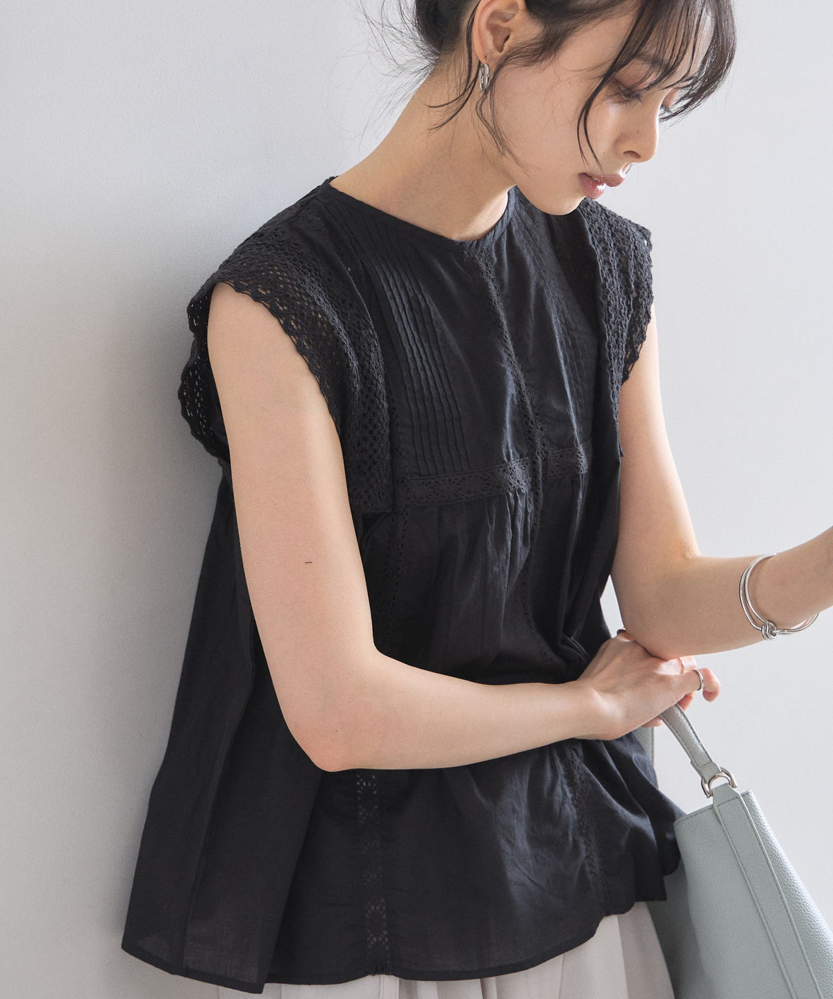 繊細なレースとピンタックが織りなす、クラシカルで贅沢なコットンブラウス。