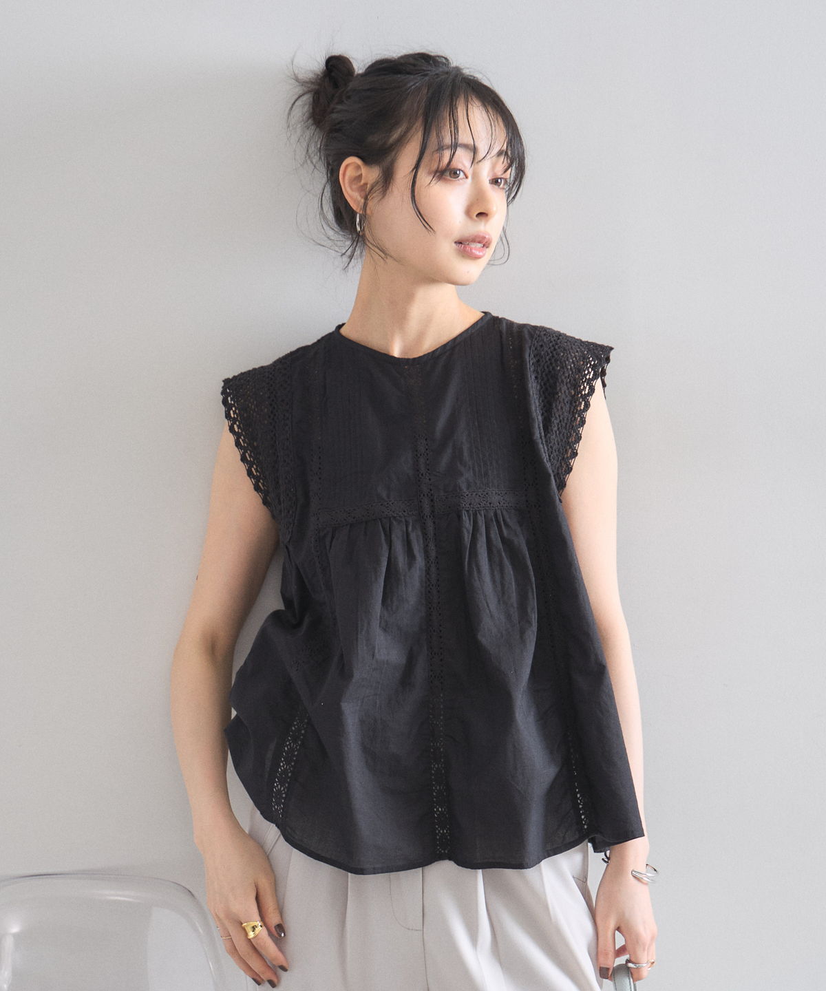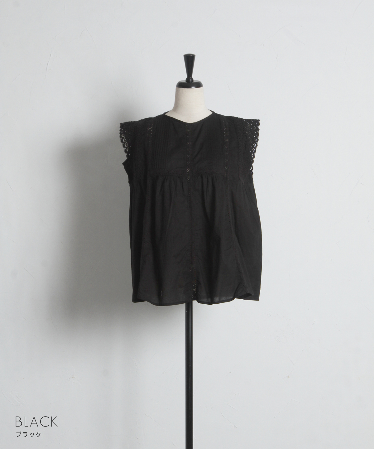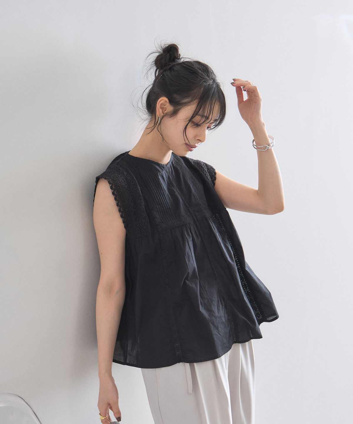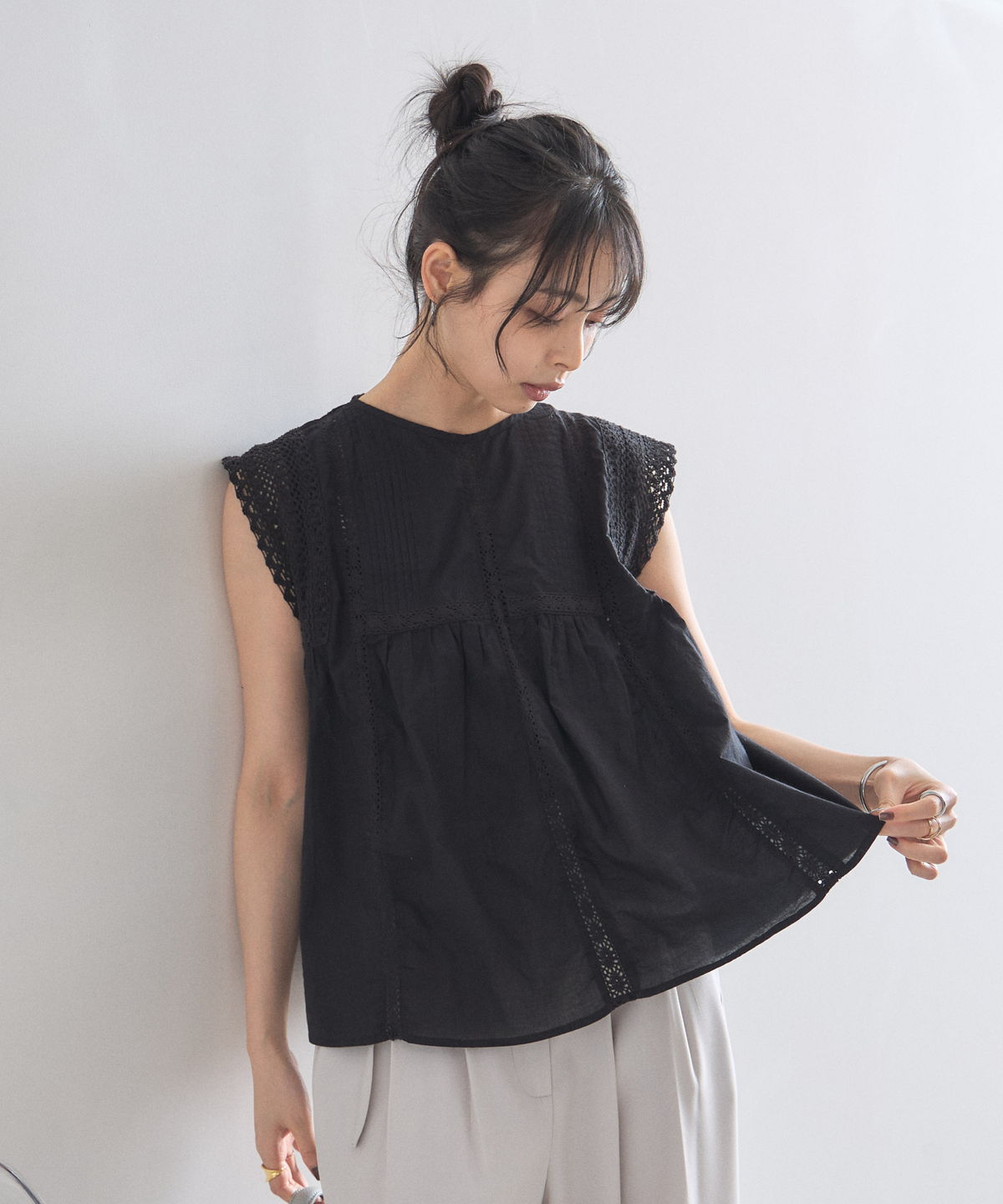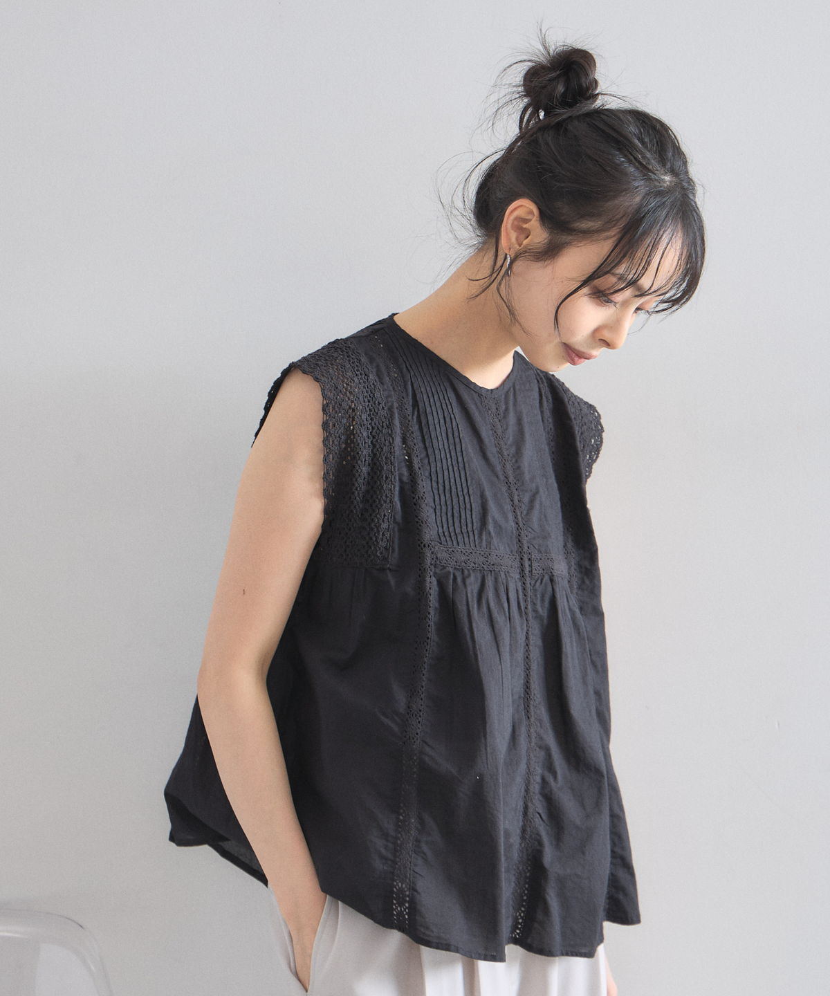 繊細なレースとピンタックが織りなす、クラシカルで贅沢なコットンブラウス。