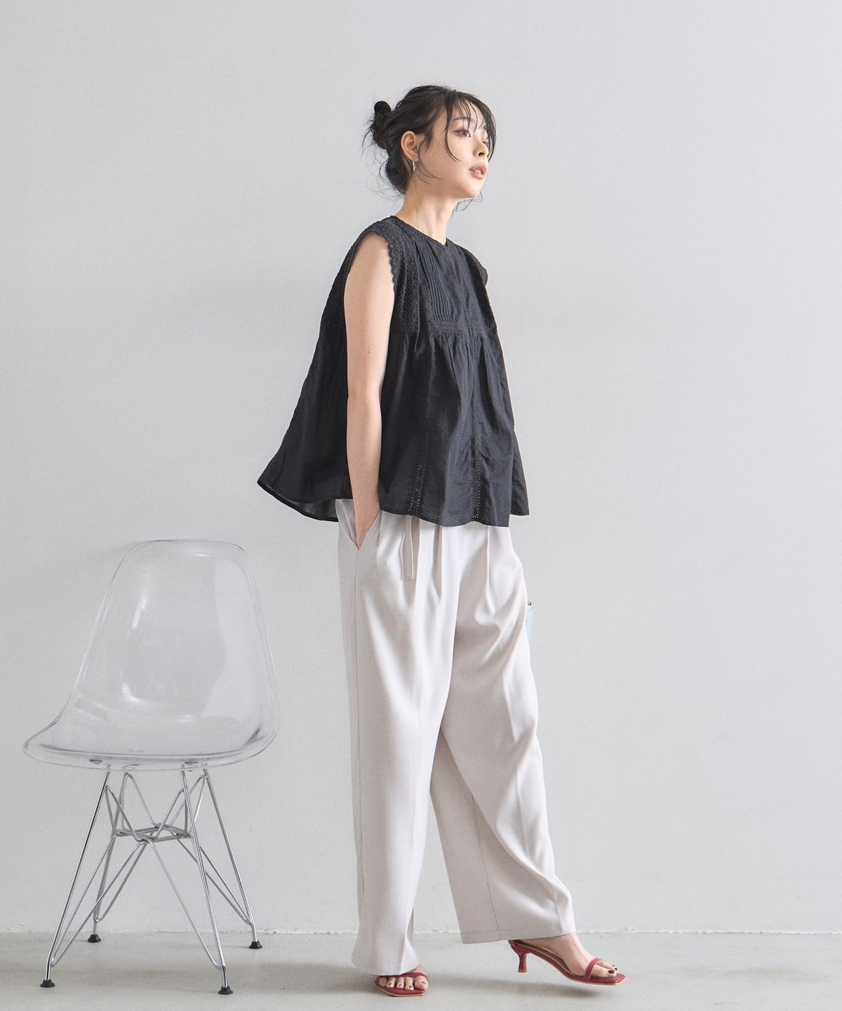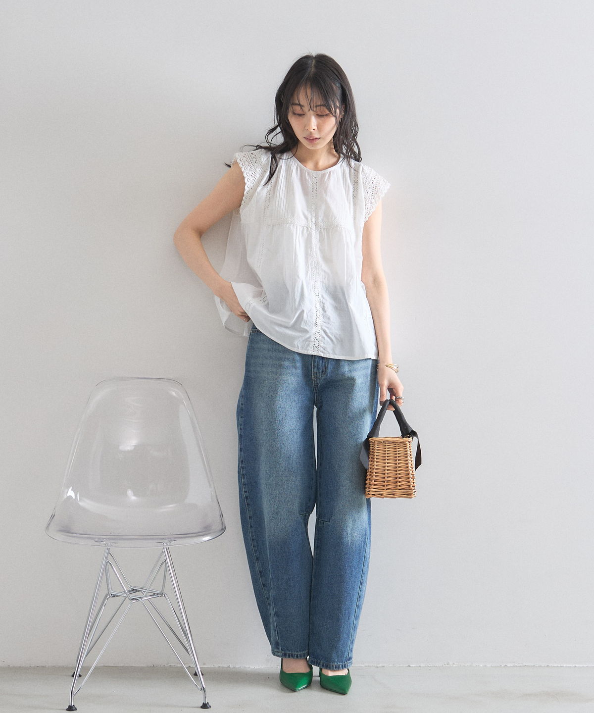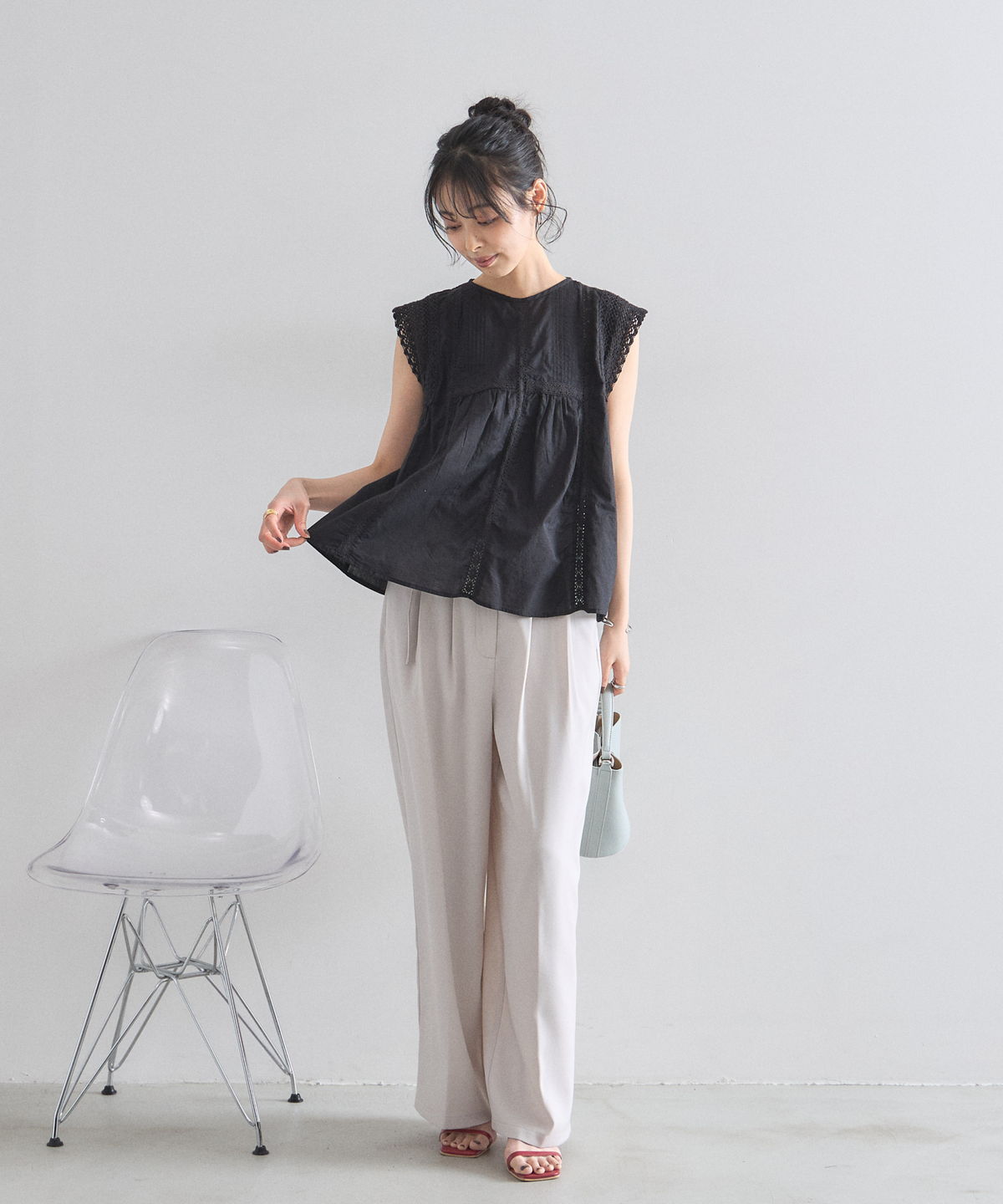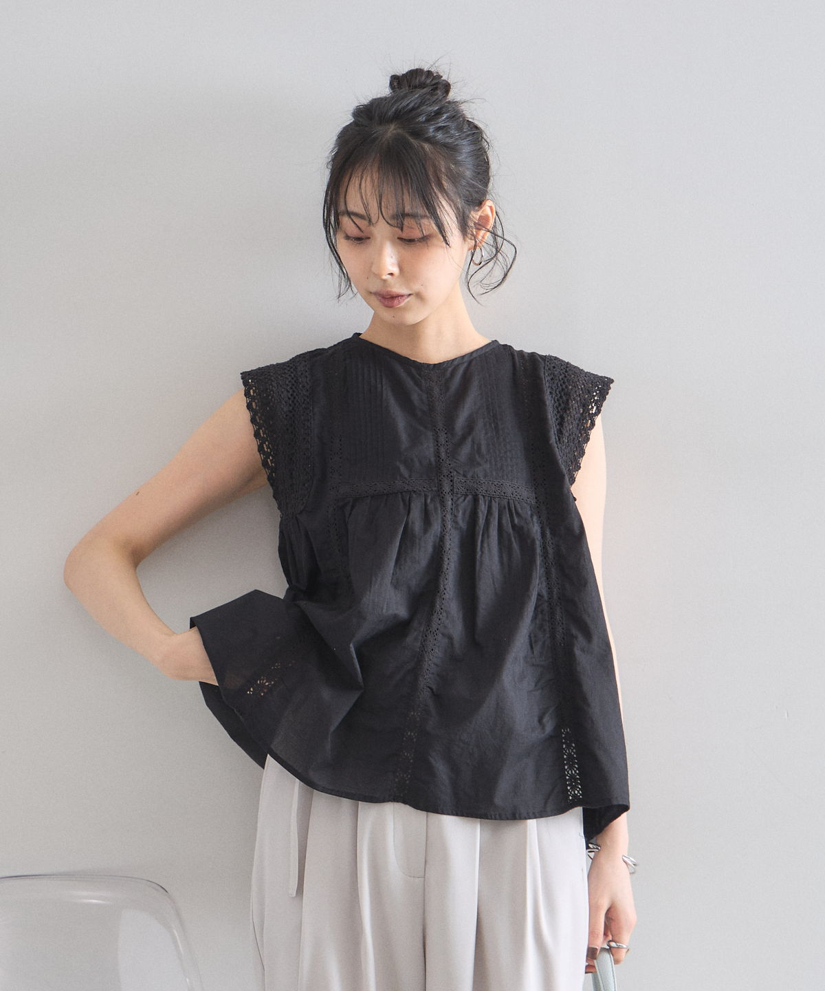繊細なレースとピンタックが織りなす、クラシカルで贅沢なコットンブラウス。
