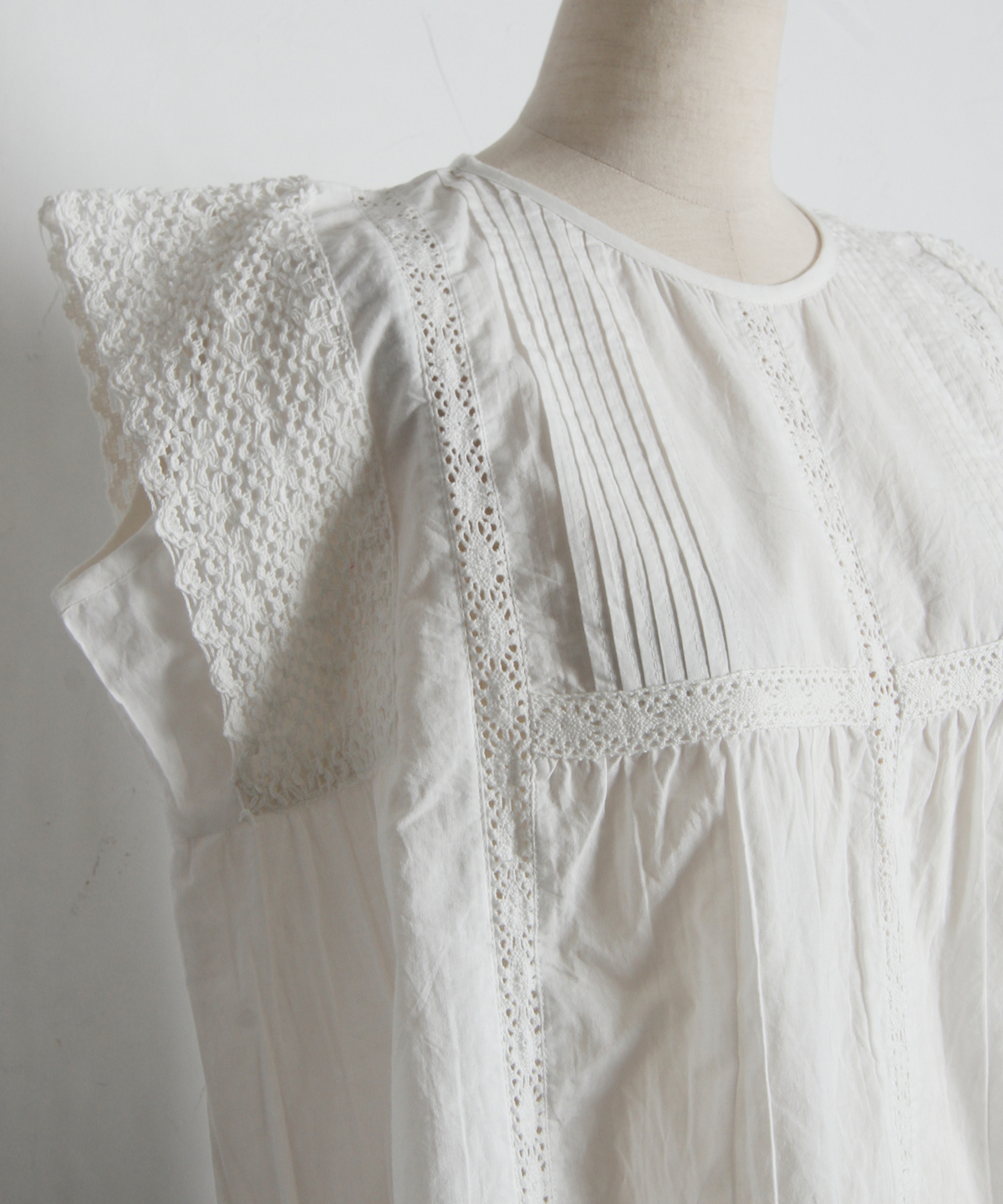 柔らかなコットン生地に、レースやピンタックを施したこだわりの一枚。