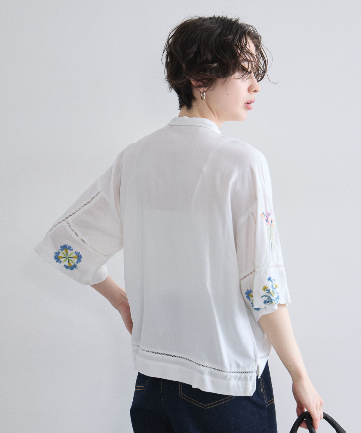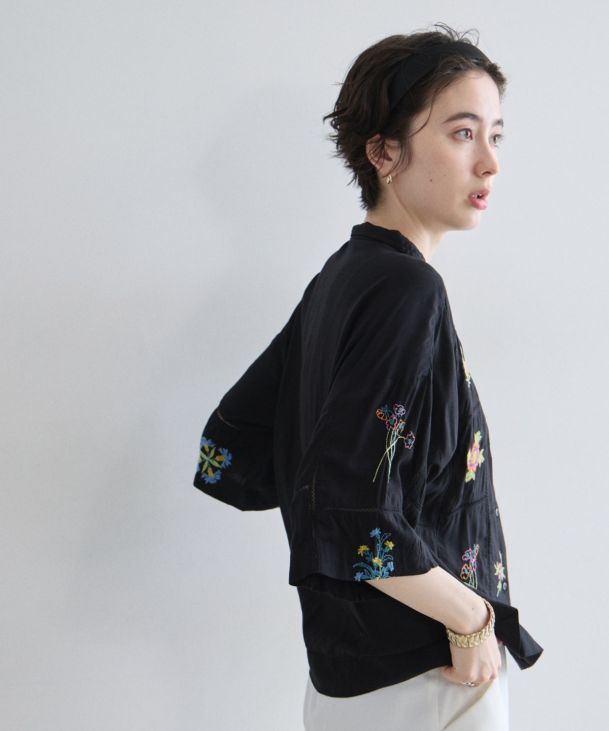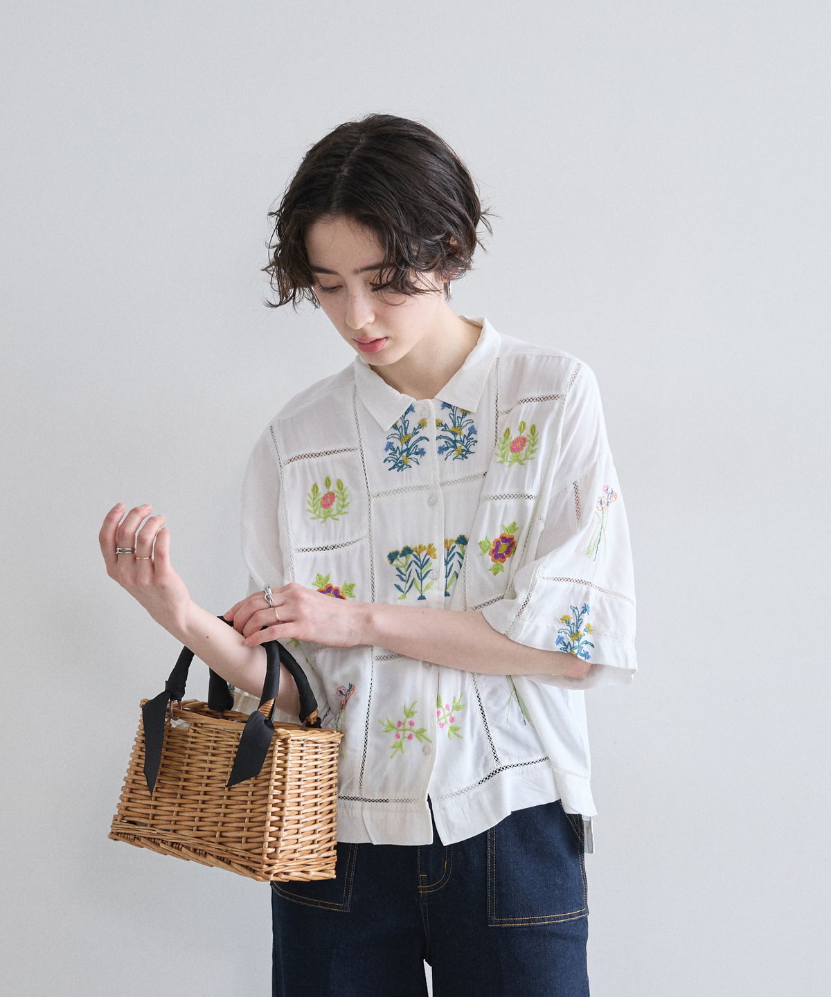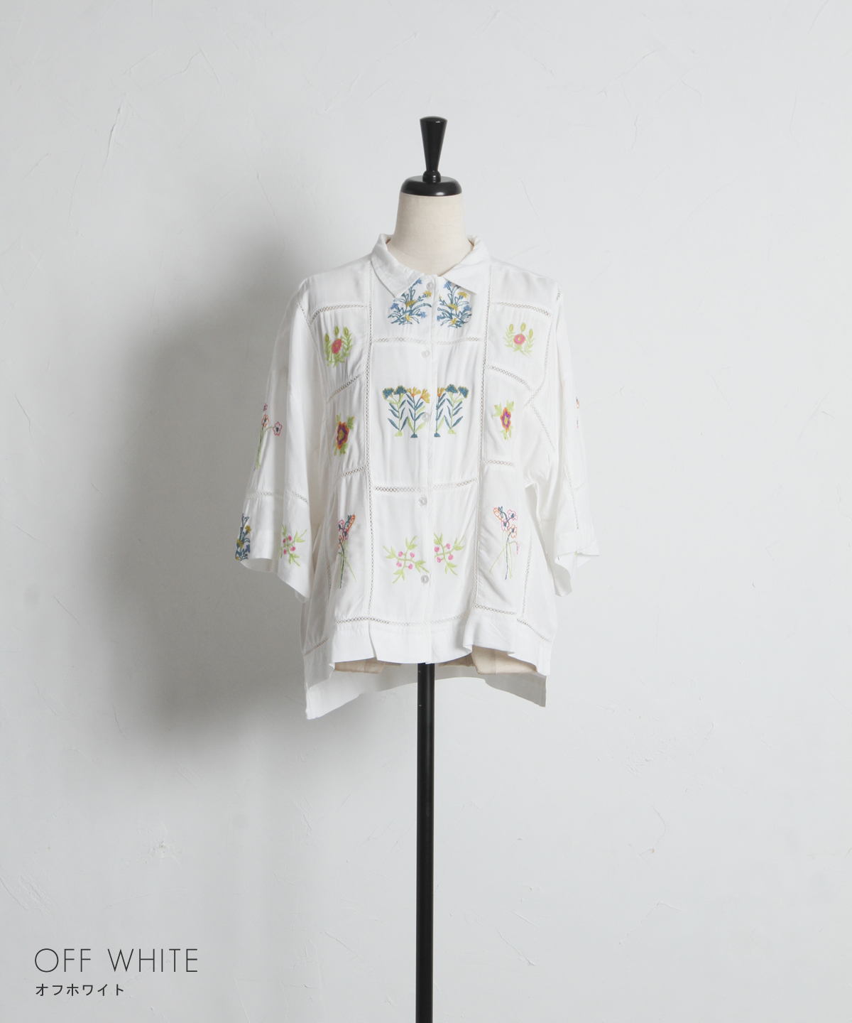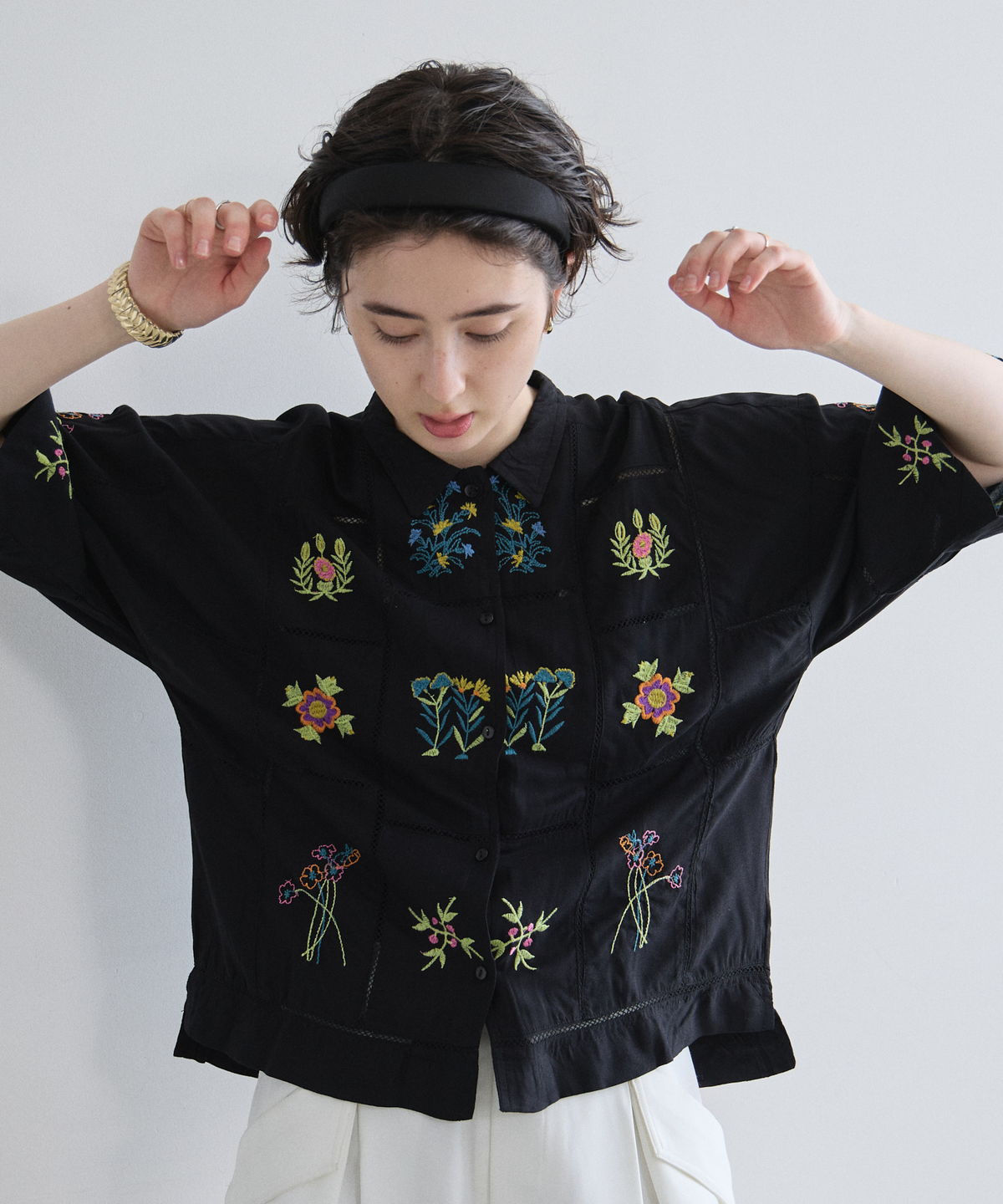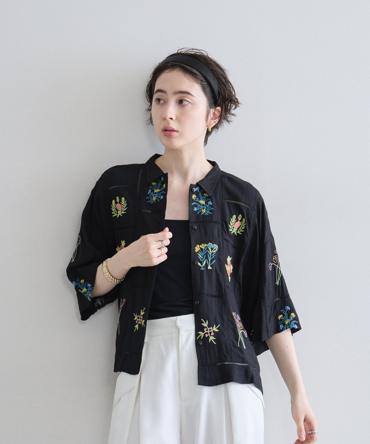 ノスタルジックな草花刺繍が心をくすぐる、大人可愛いフラワーエンブロイダリーシャツ。