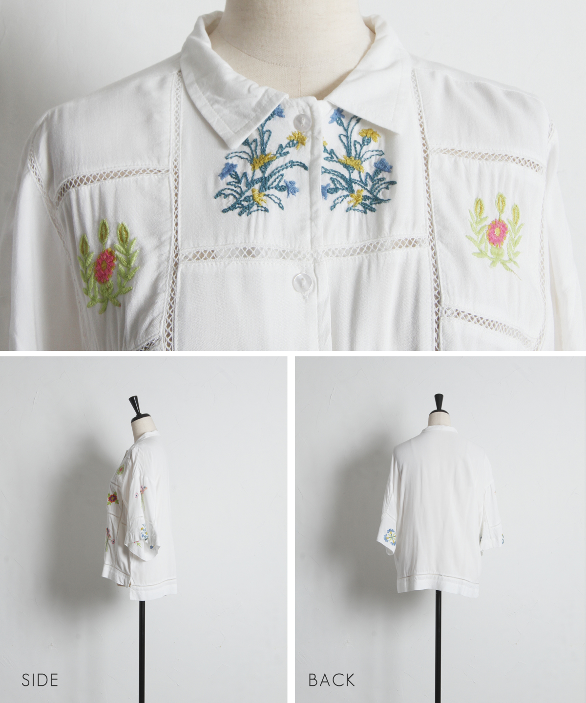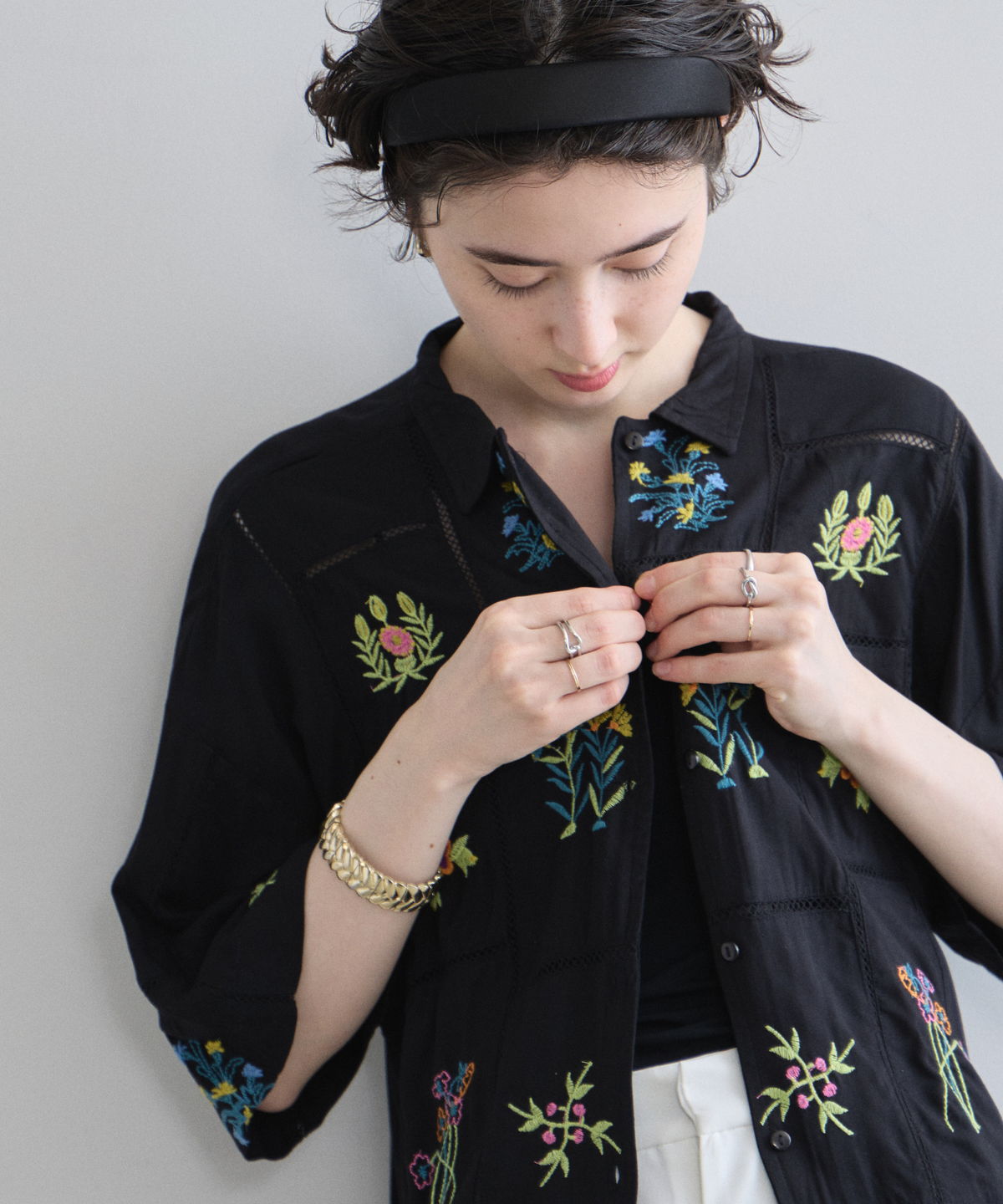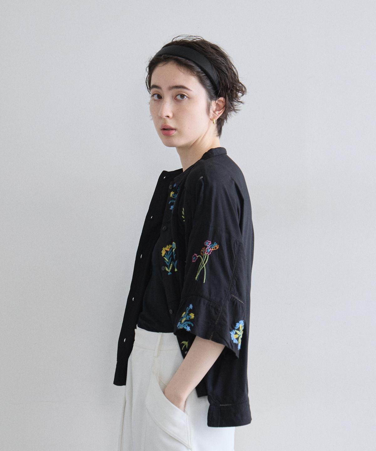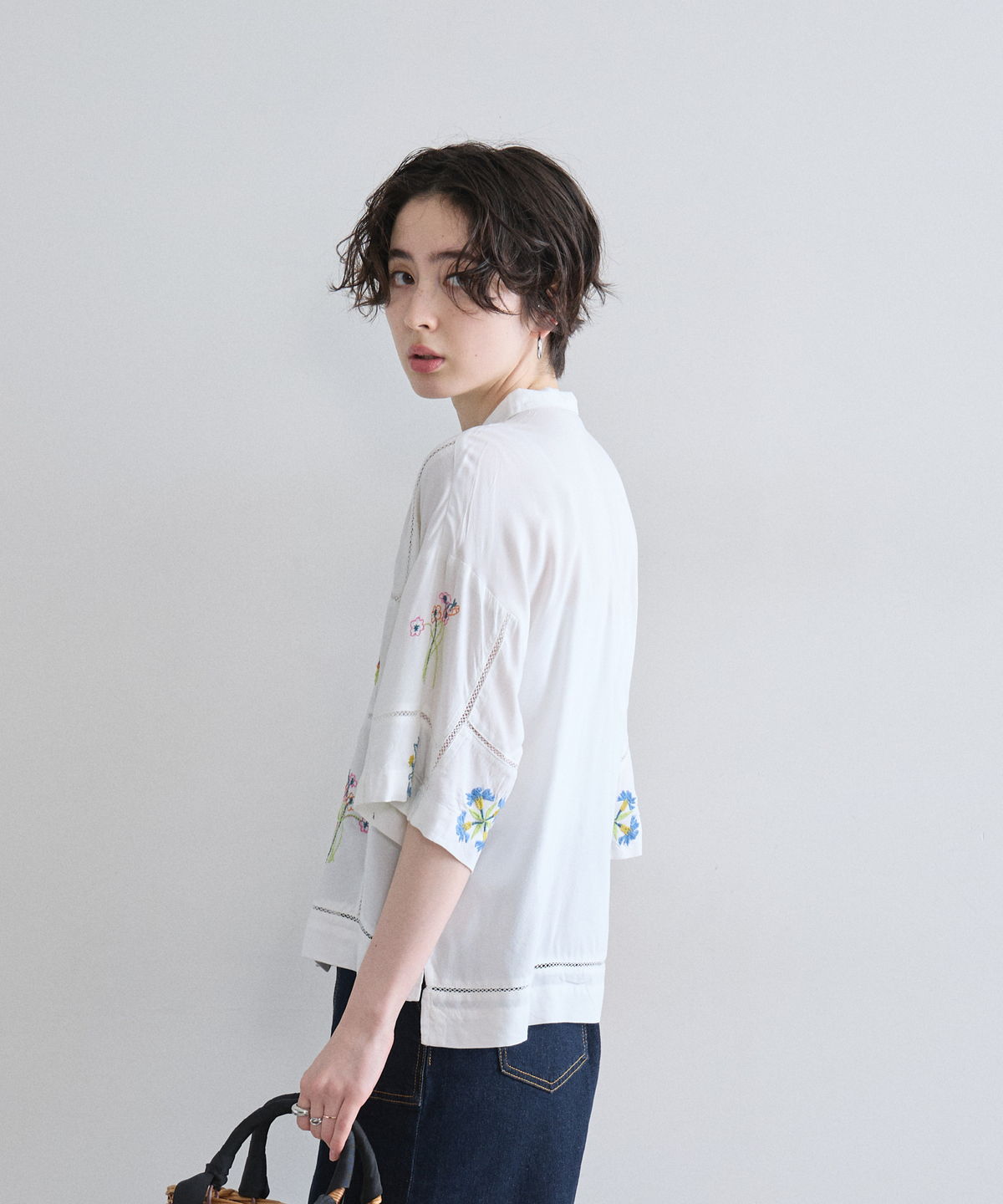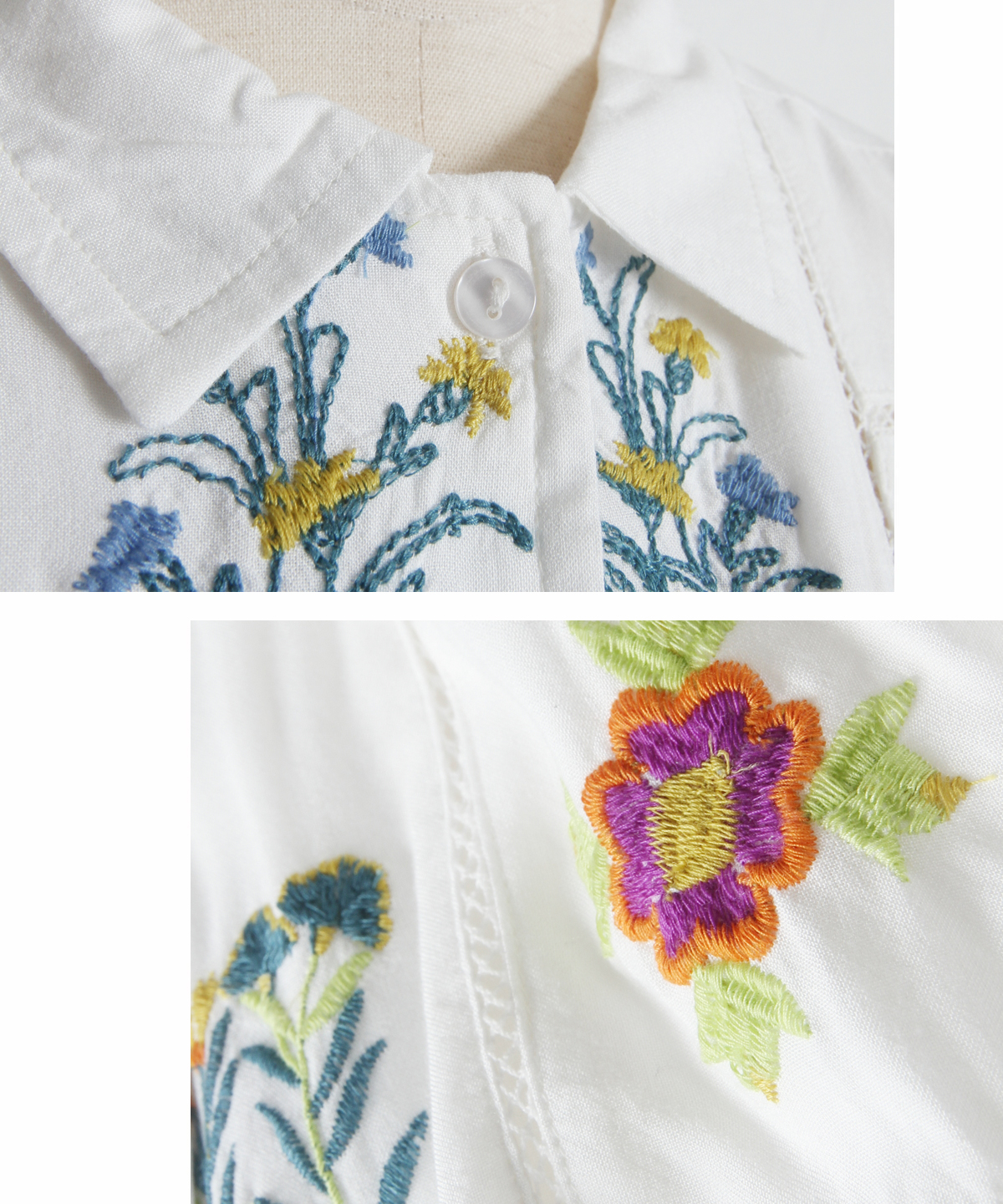 ノスタルジックな草花刺繍が心をくすぐる、大人可愛いフラワーエンブロイダリーシャツ。