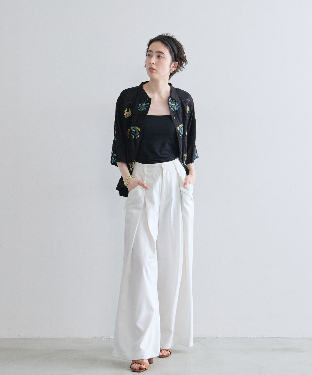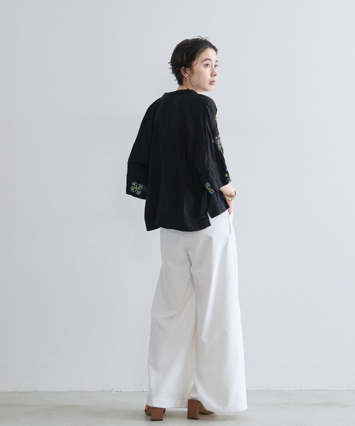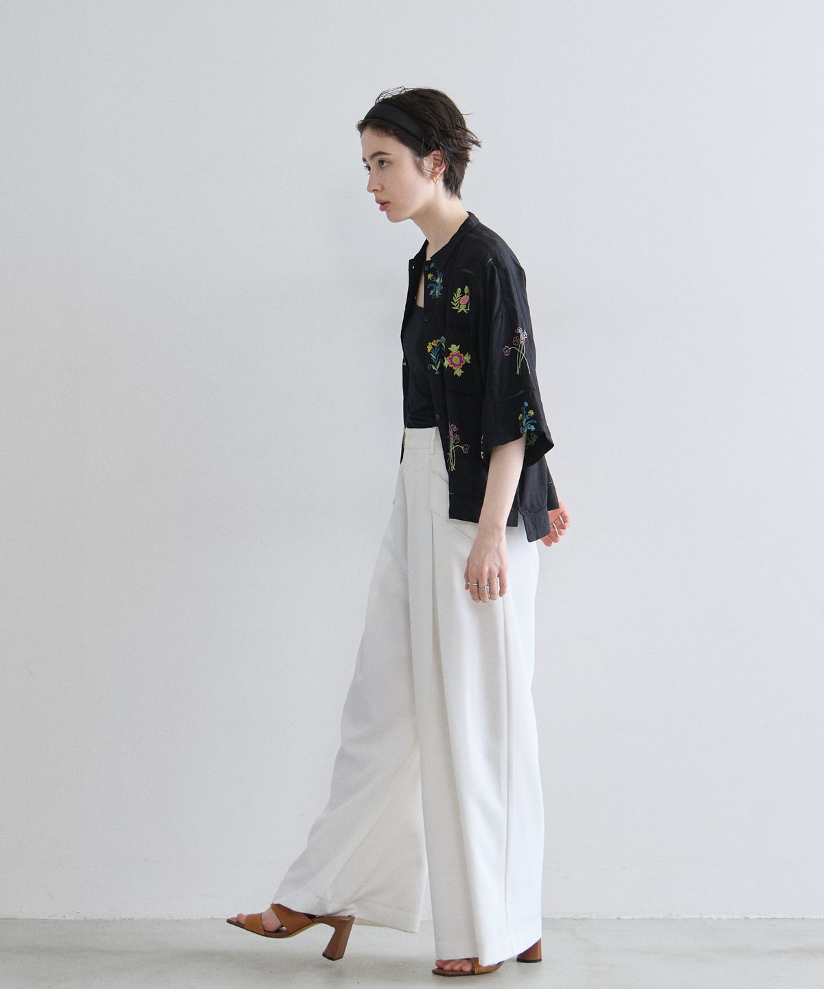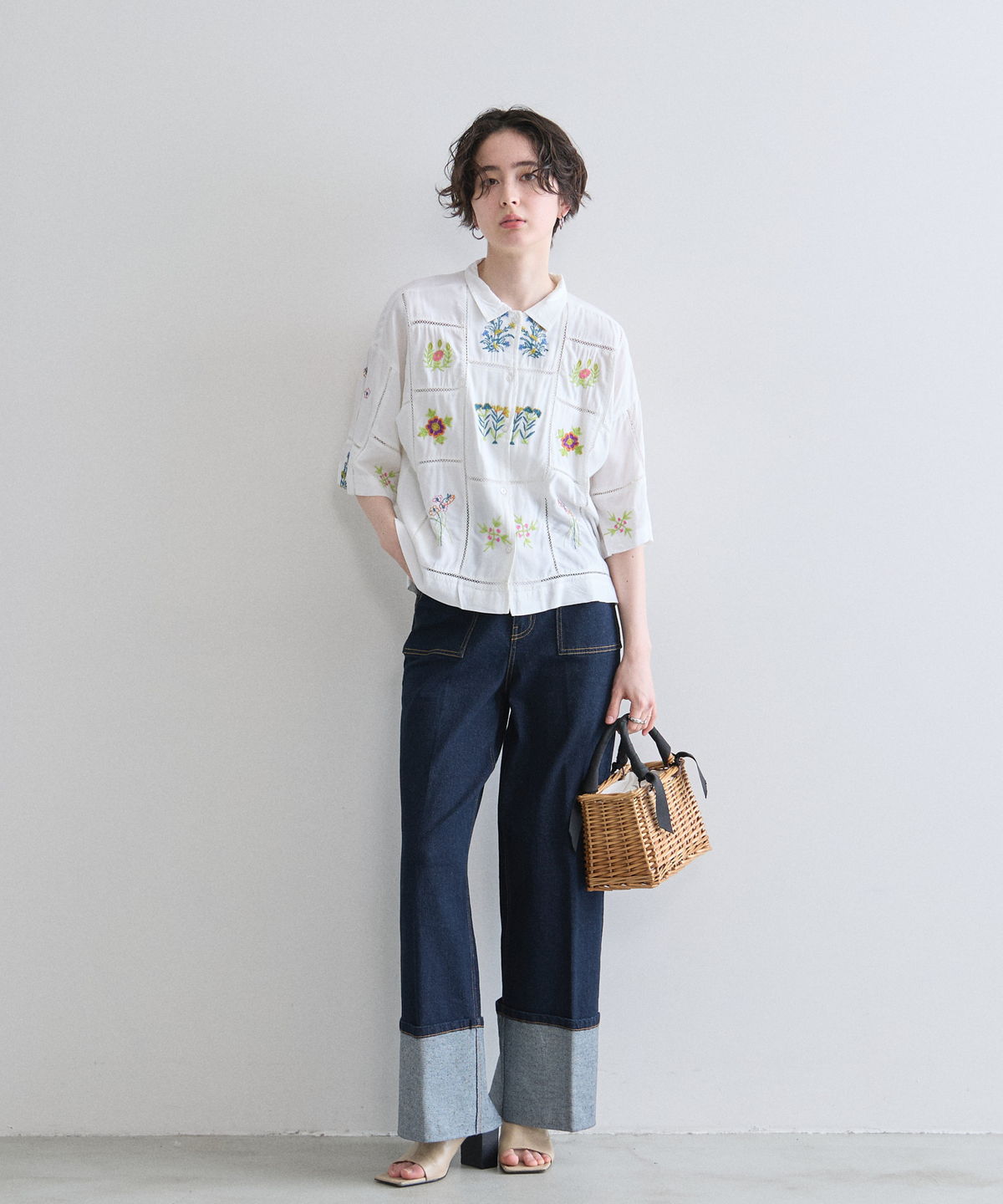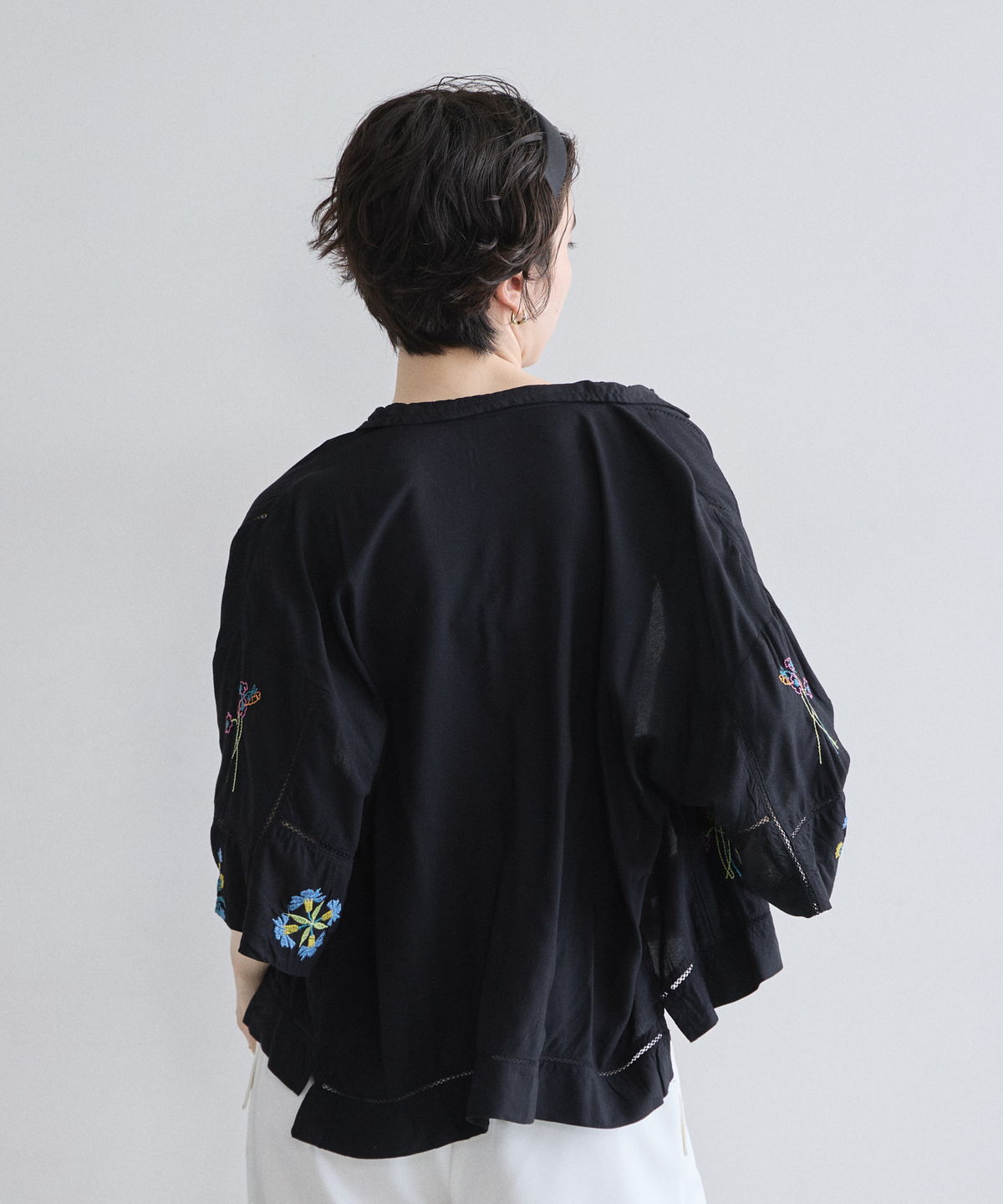 ノスタルジックな草花刺繍が心をくすぐる、大人可愛いフラワーエンブロイダリーシャツ。