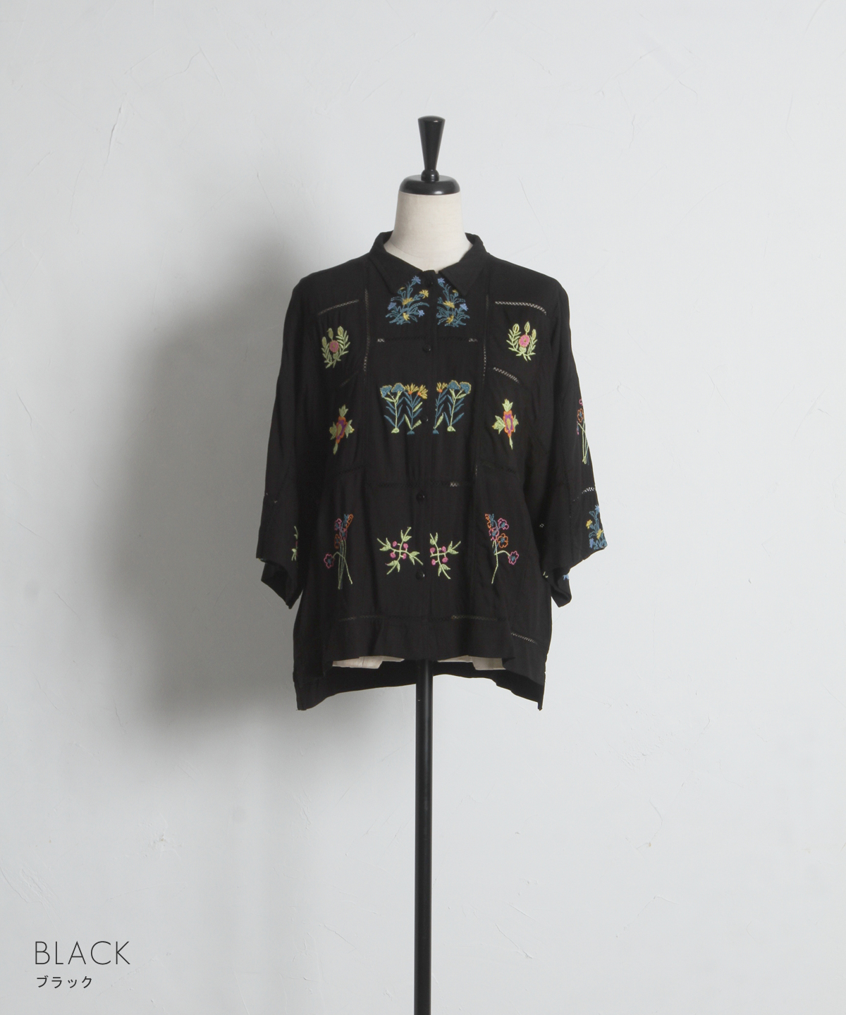 色鮮やかなボタニカル刺繍を散りばめた、ヴィンテージライクな表情が魅力のシャツ。