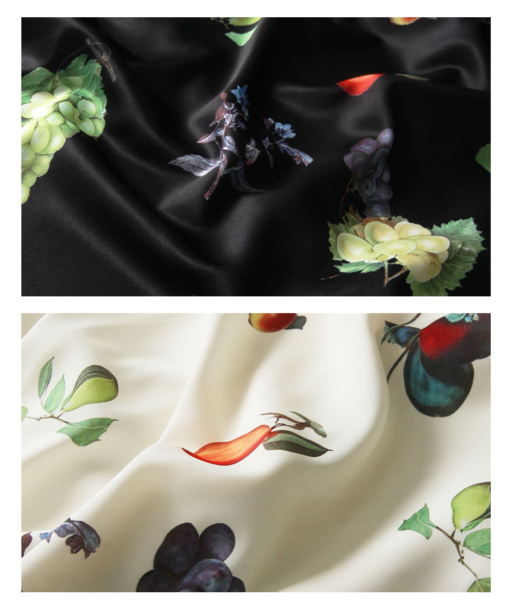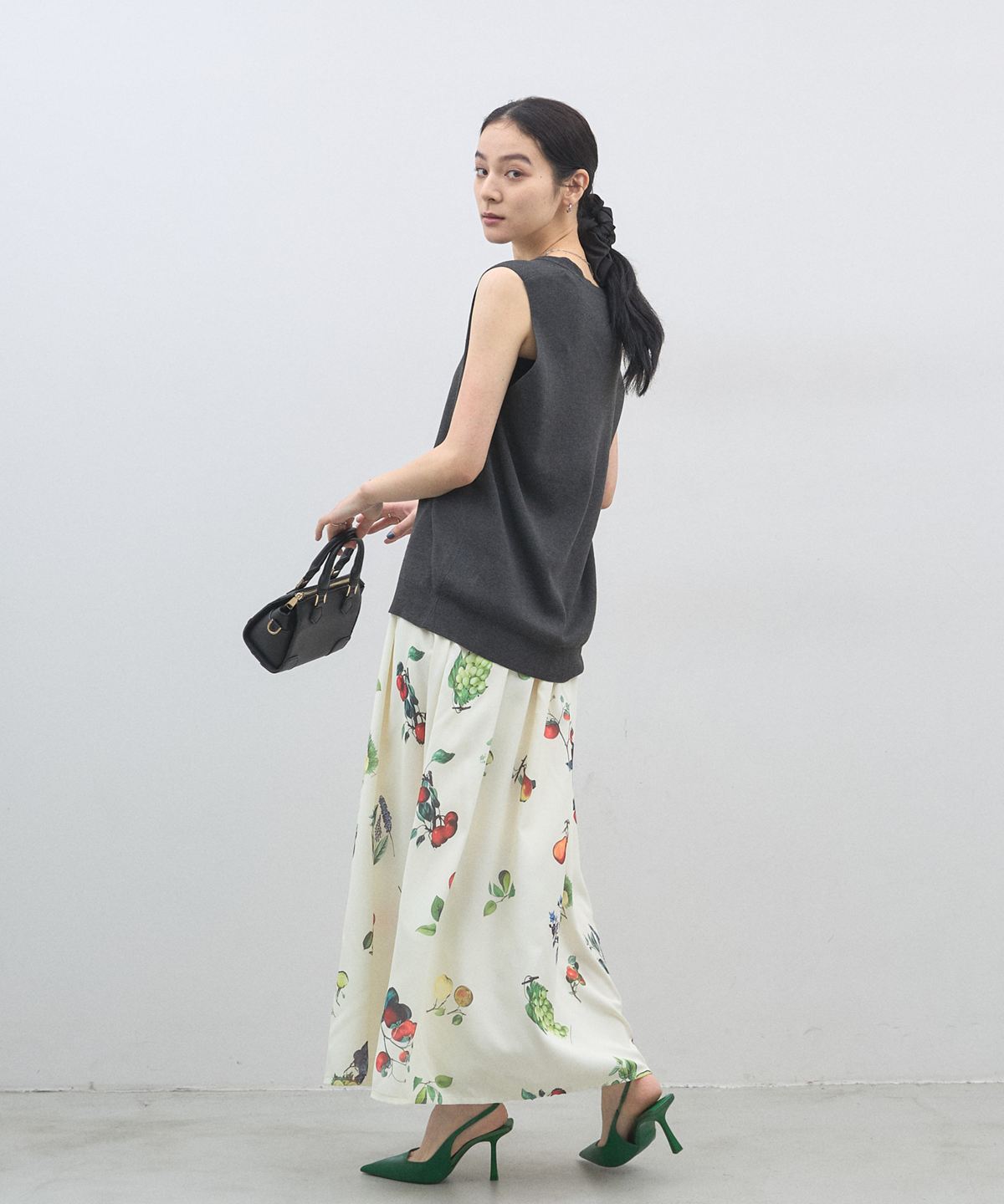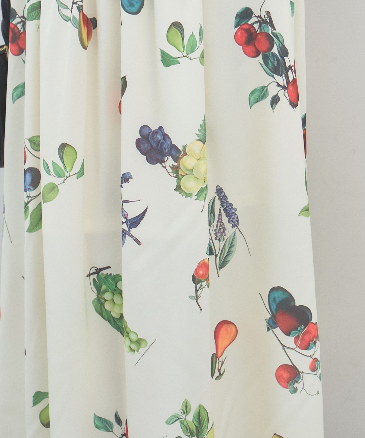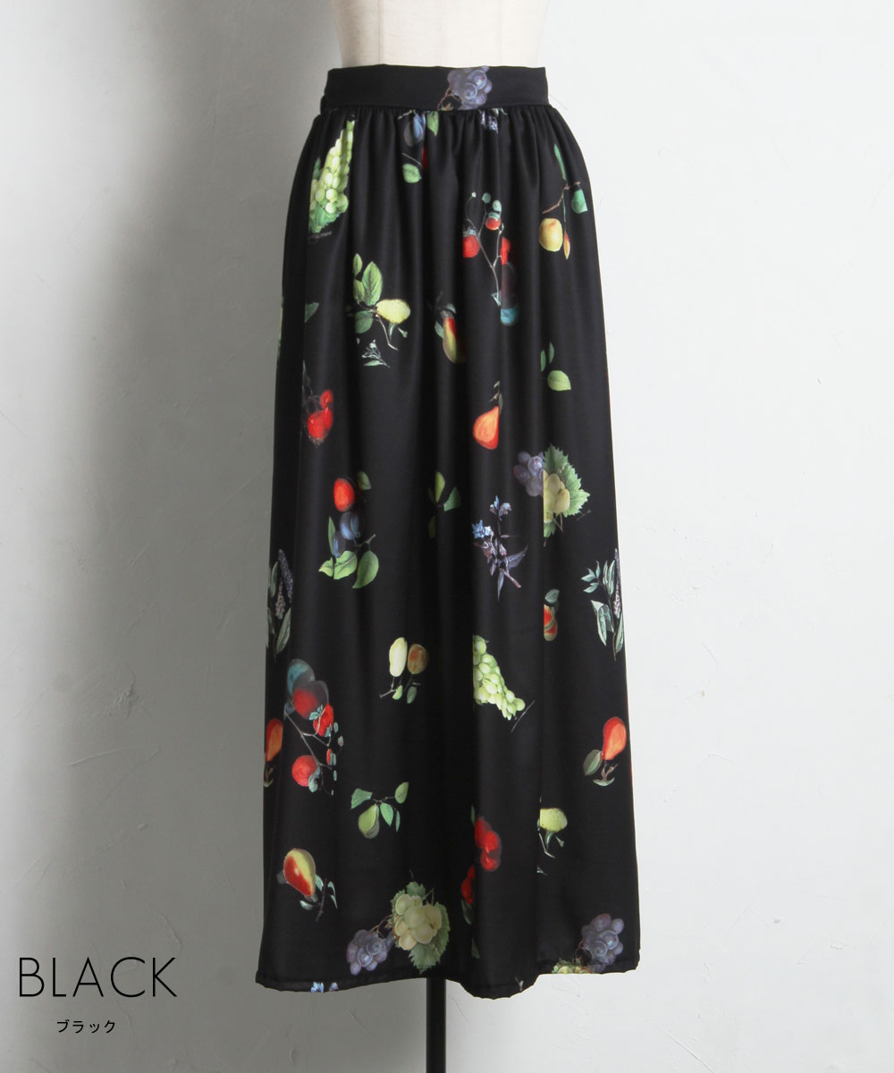 水彩画のようなフルーツ柄が華やかな印象を与える主役級スカート。