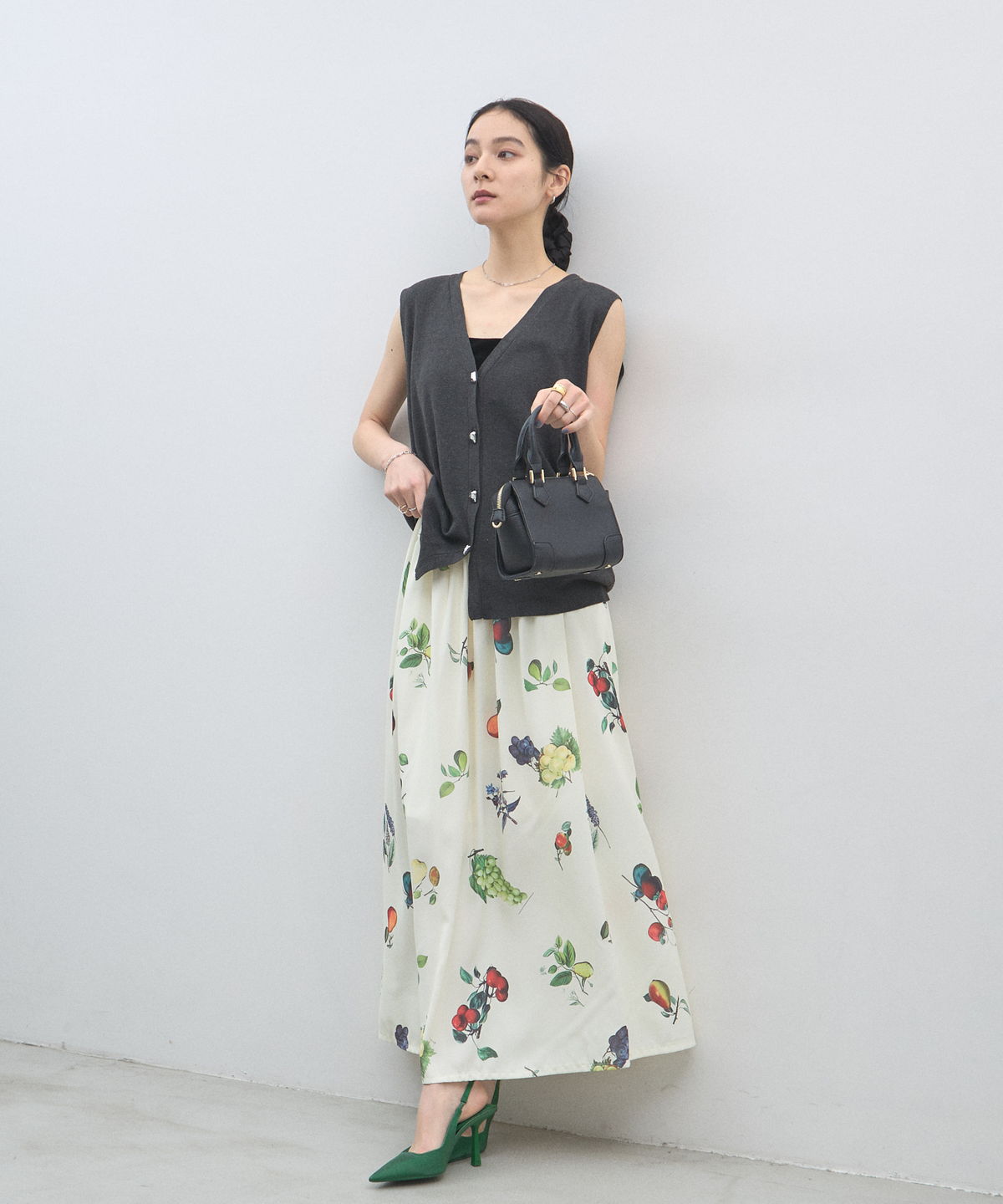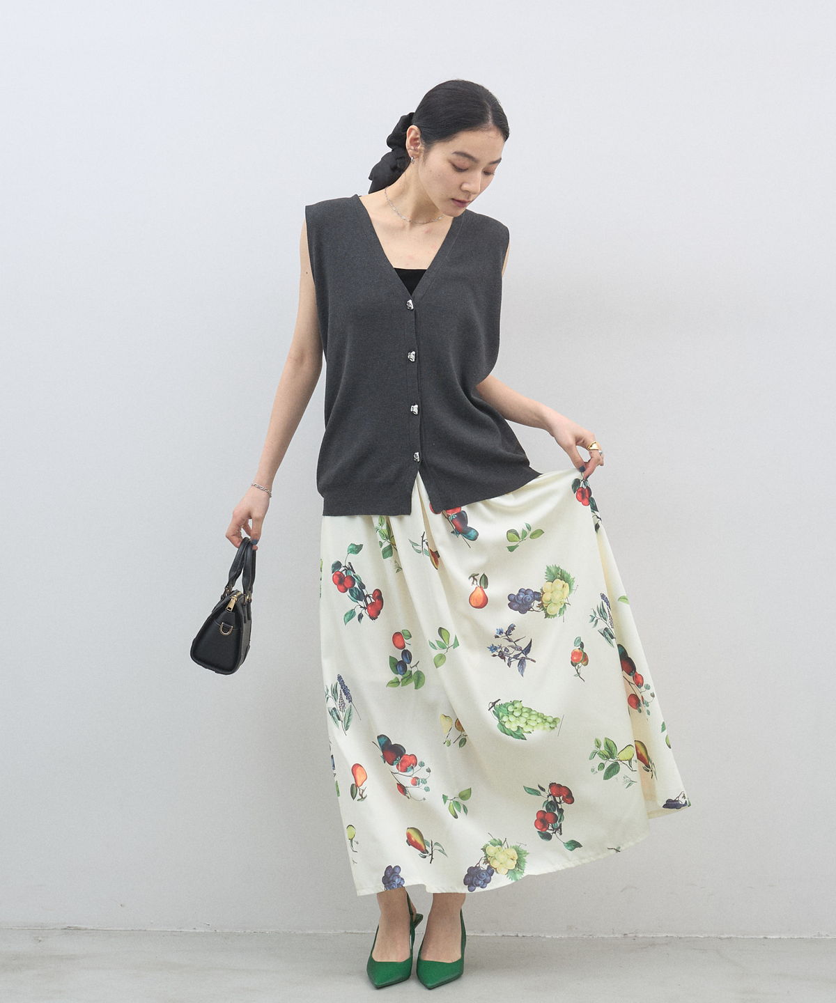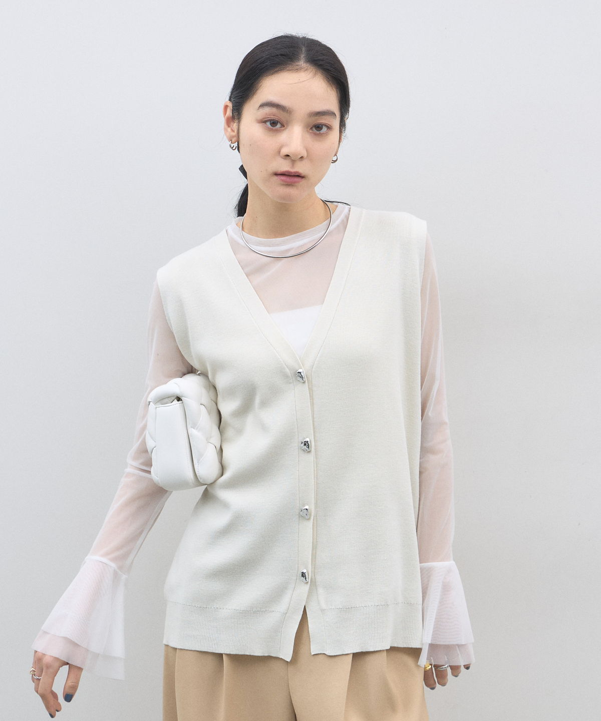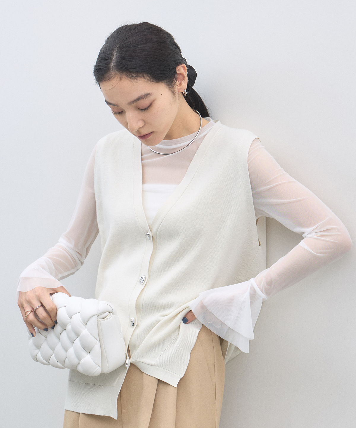 深めのVネックとメタルボタンがアクセントのニットベスト。