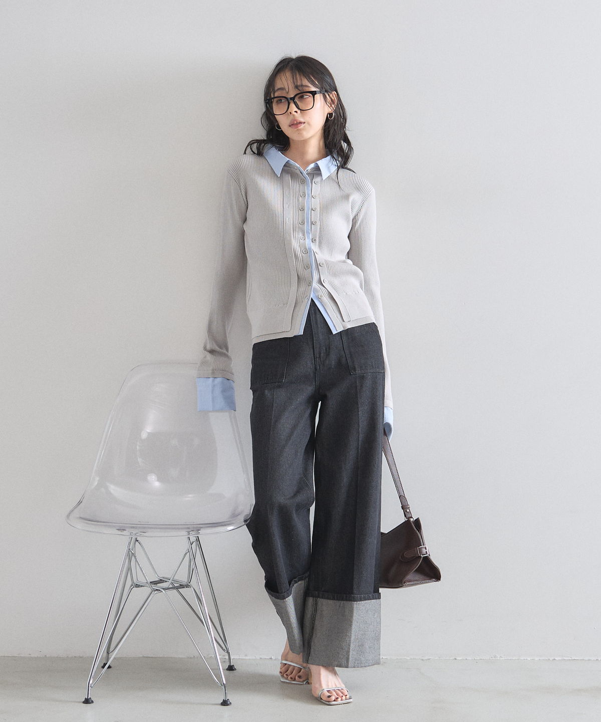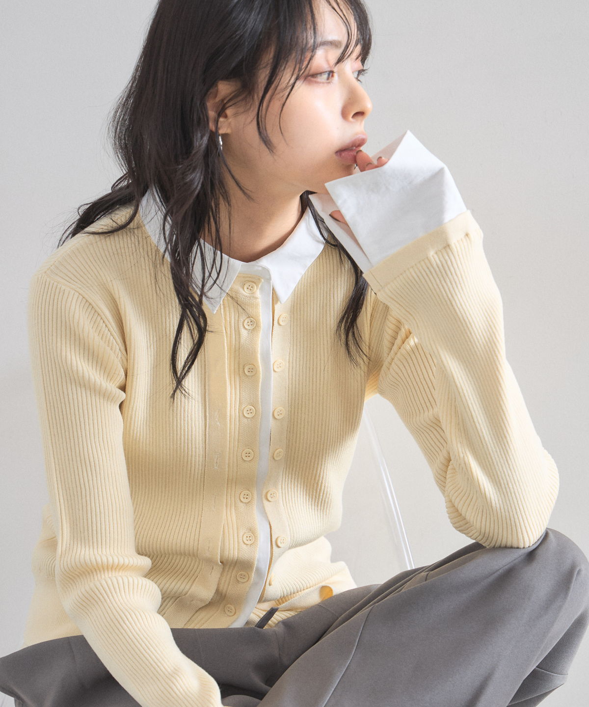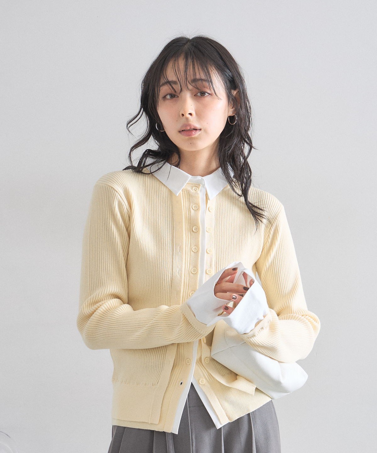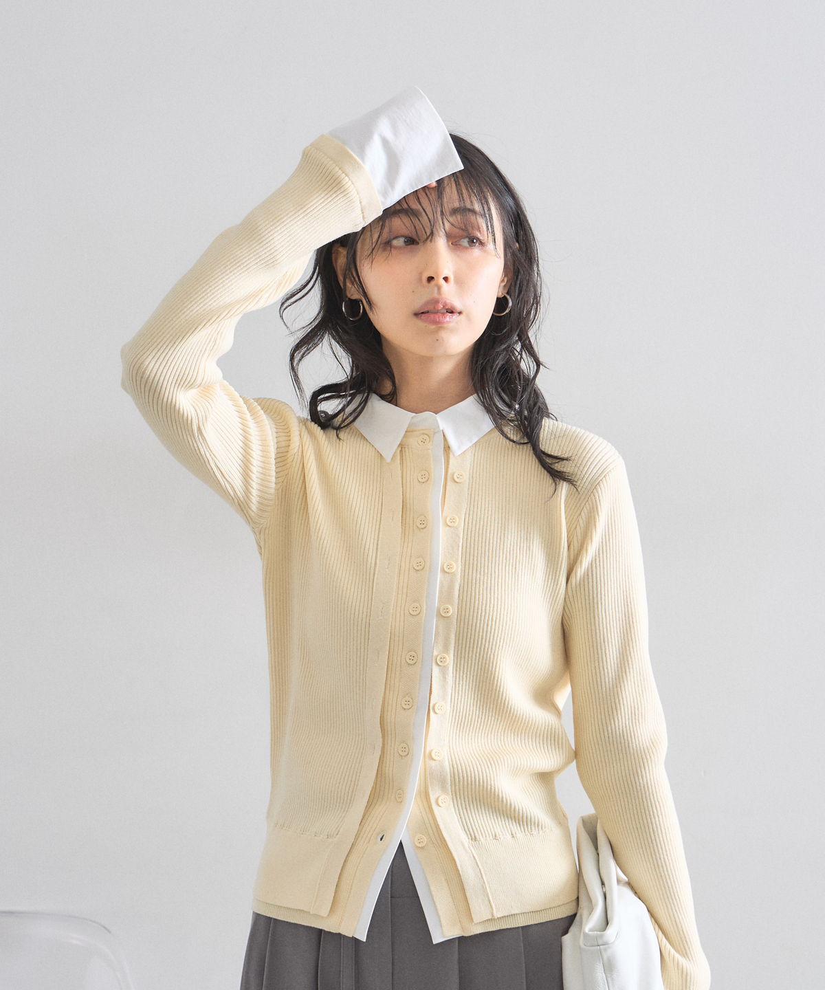 カーディガンは肌触りの良い細リブ素材で、程よくボディにフィットし、上品なシルエットを叶えます。