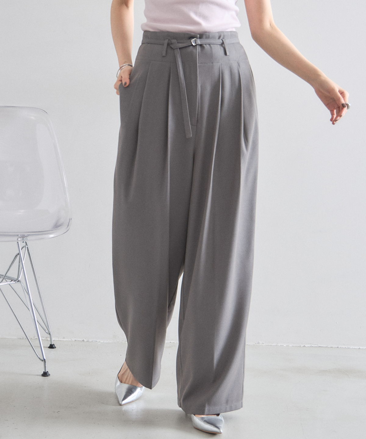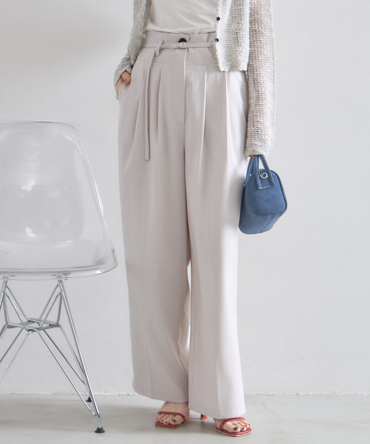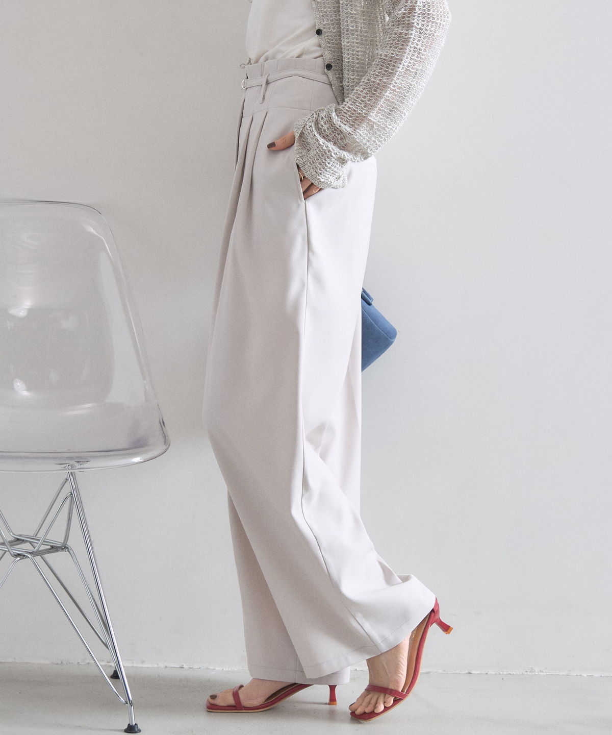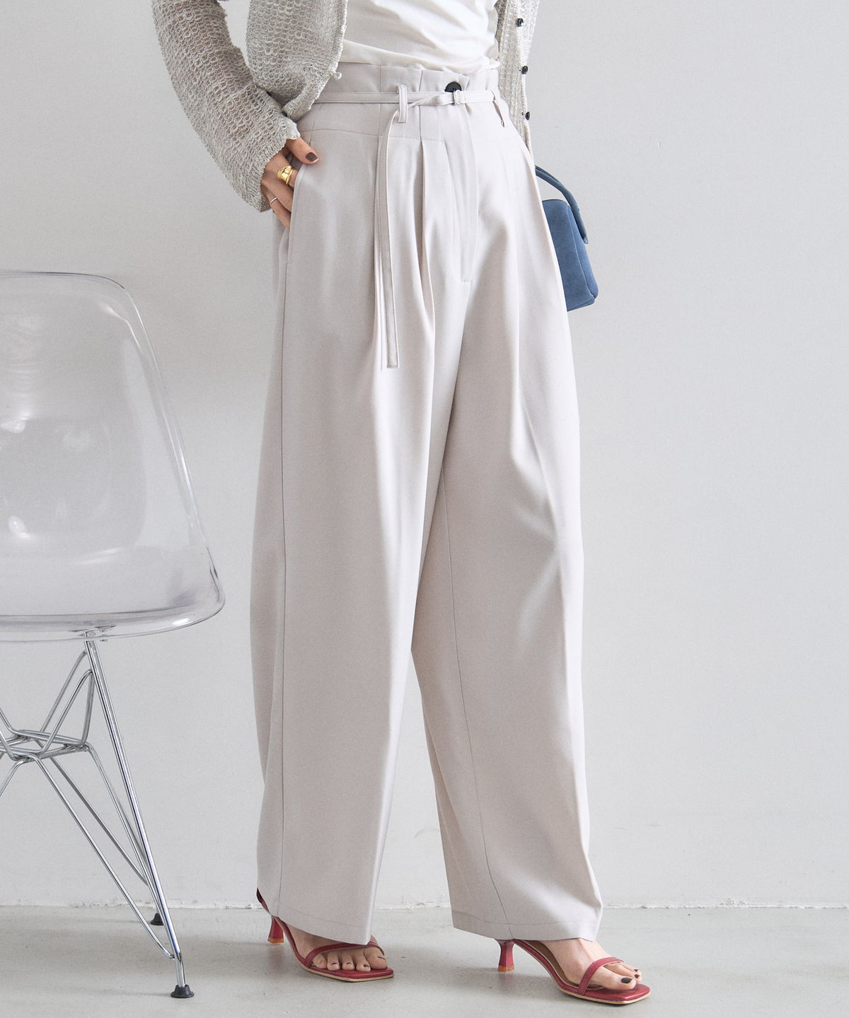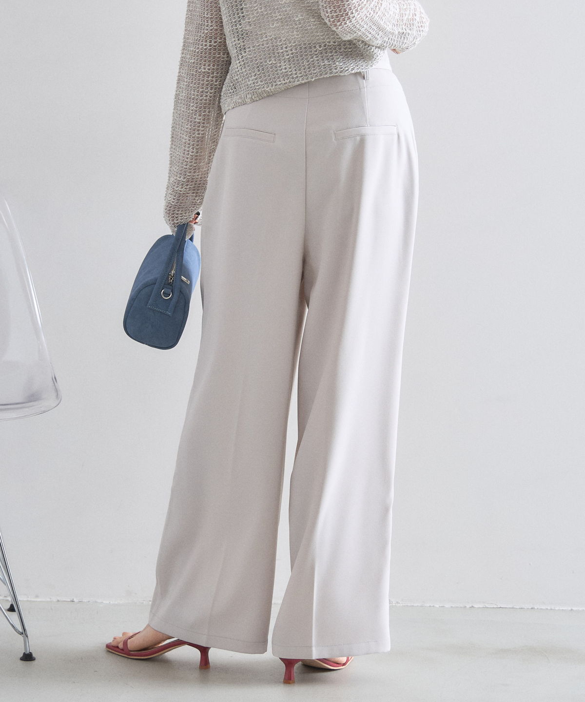 たっぷりと施されたタックとハイウエスト設計が、縦のラインを強調し圧倒的な脚長効果を叶える一着。
