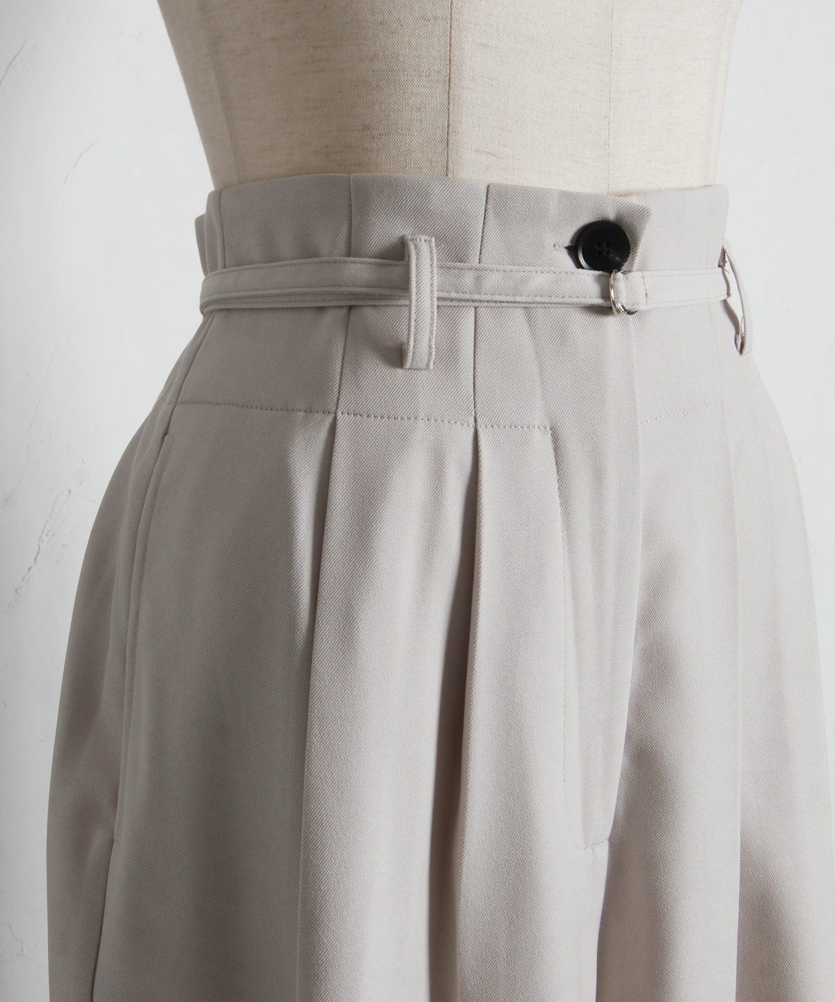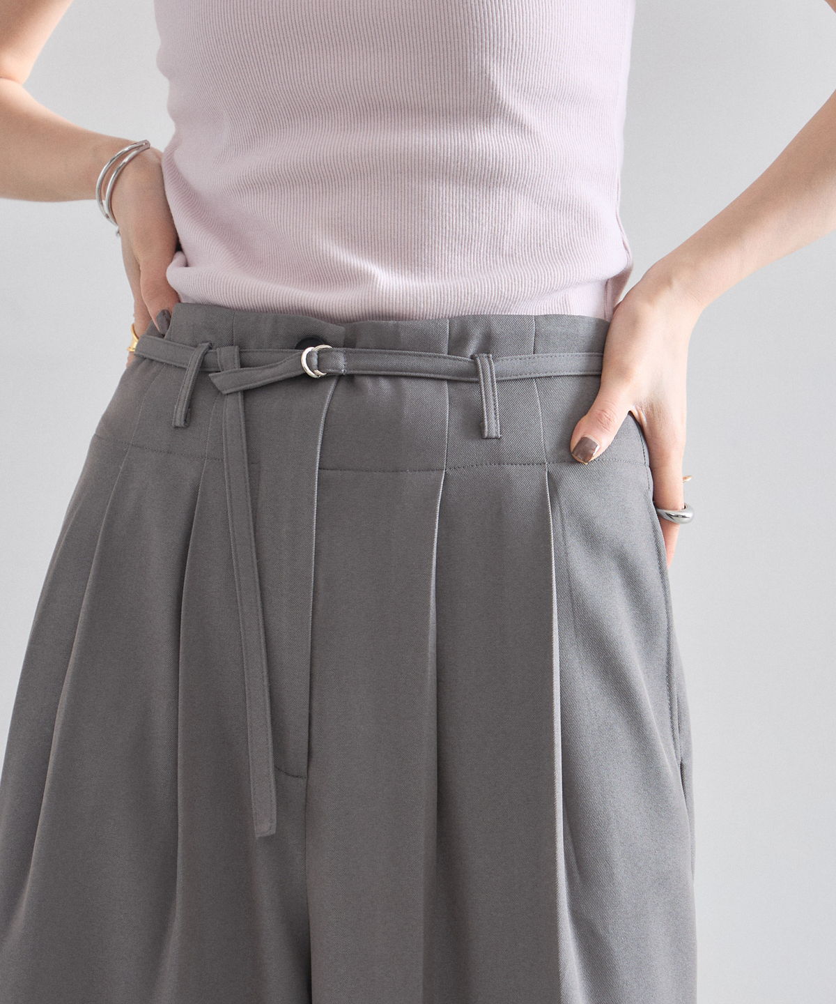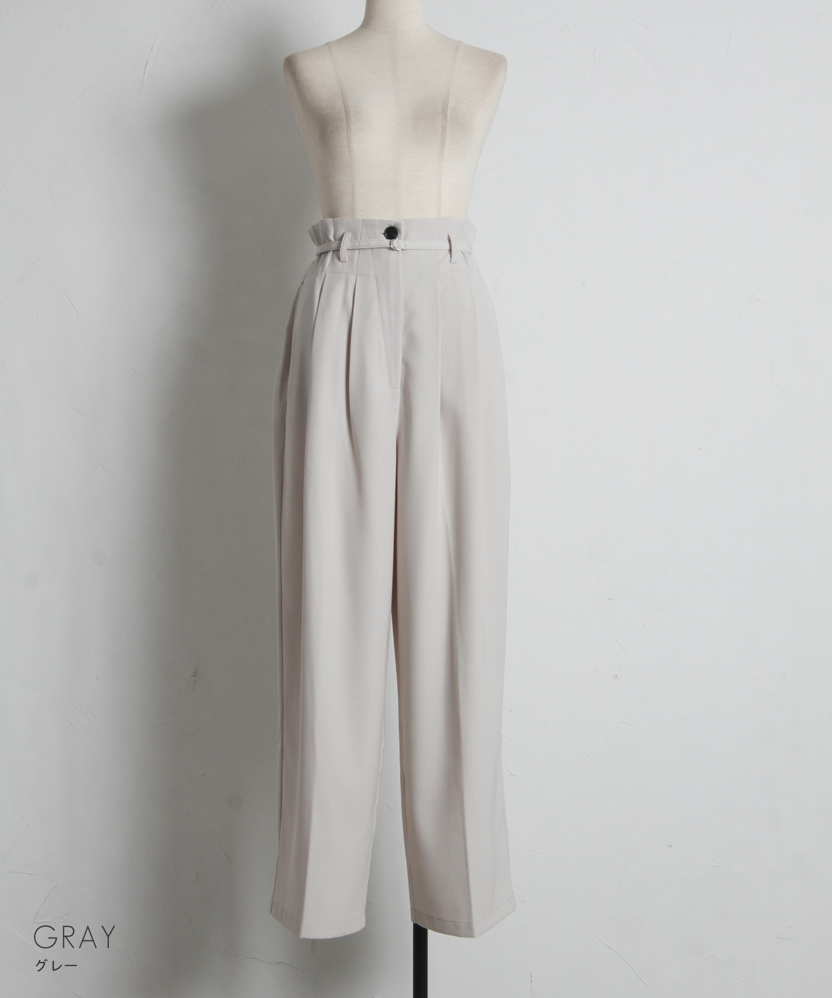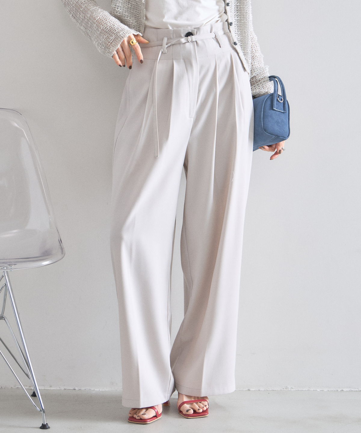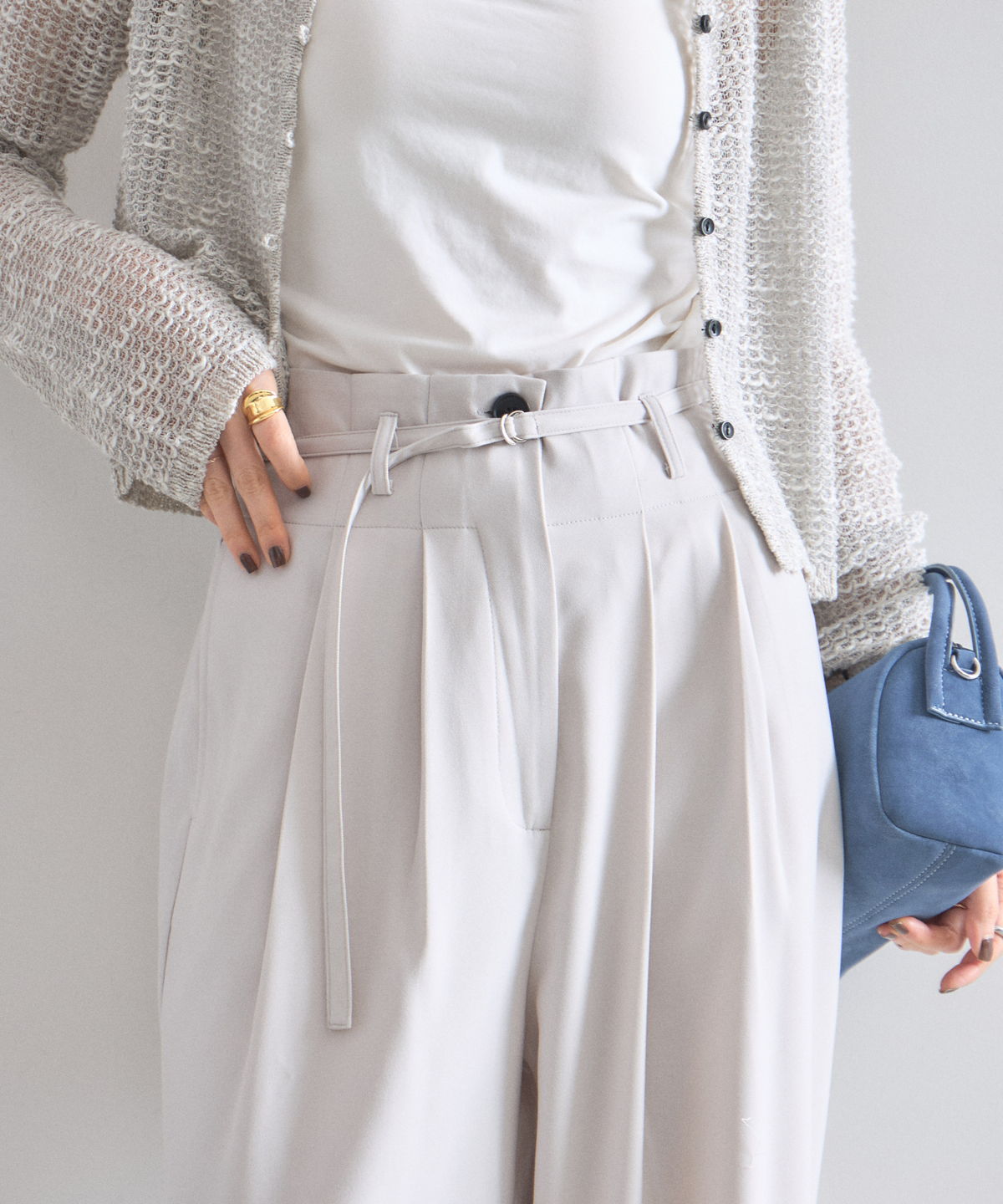 たっぷりと施されたタックとハイウエスト設計が、縦のラインを強調し圧倒的な脚長効果を叶える一着。