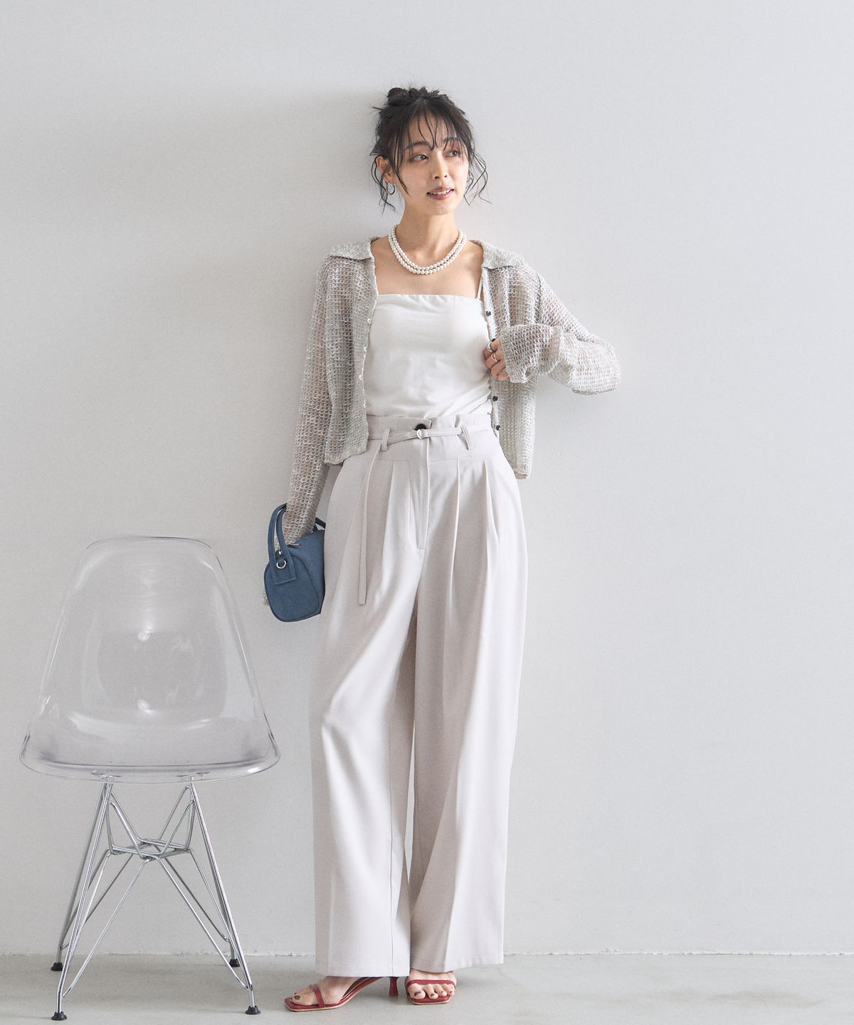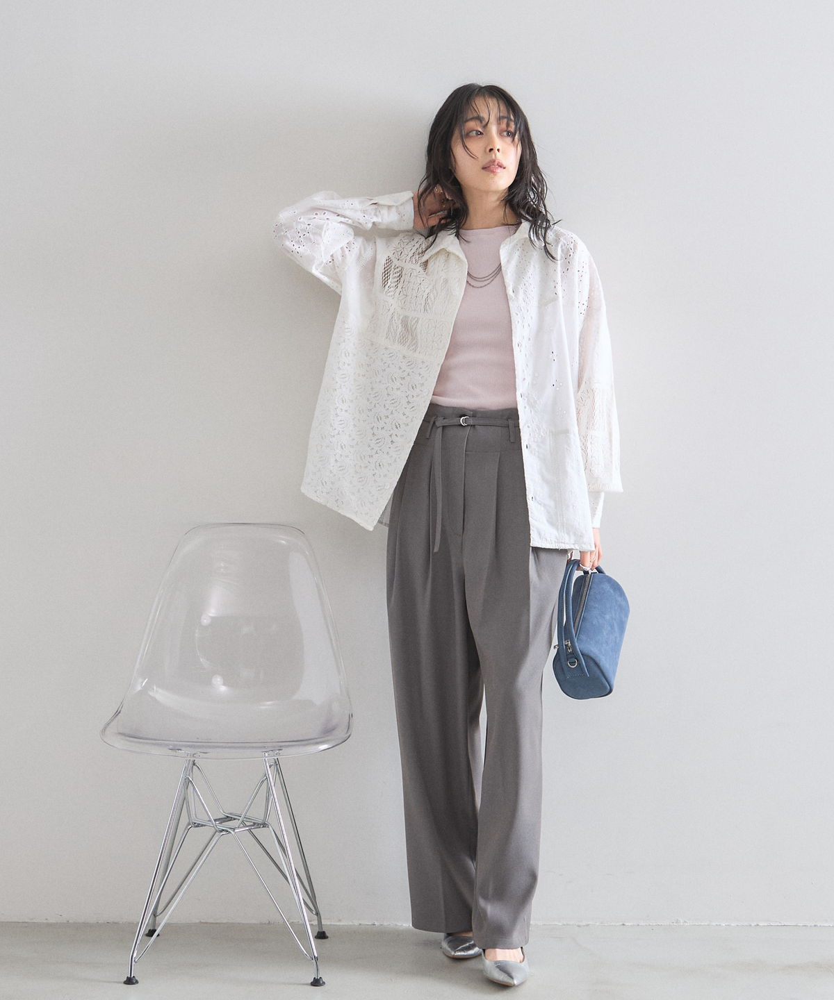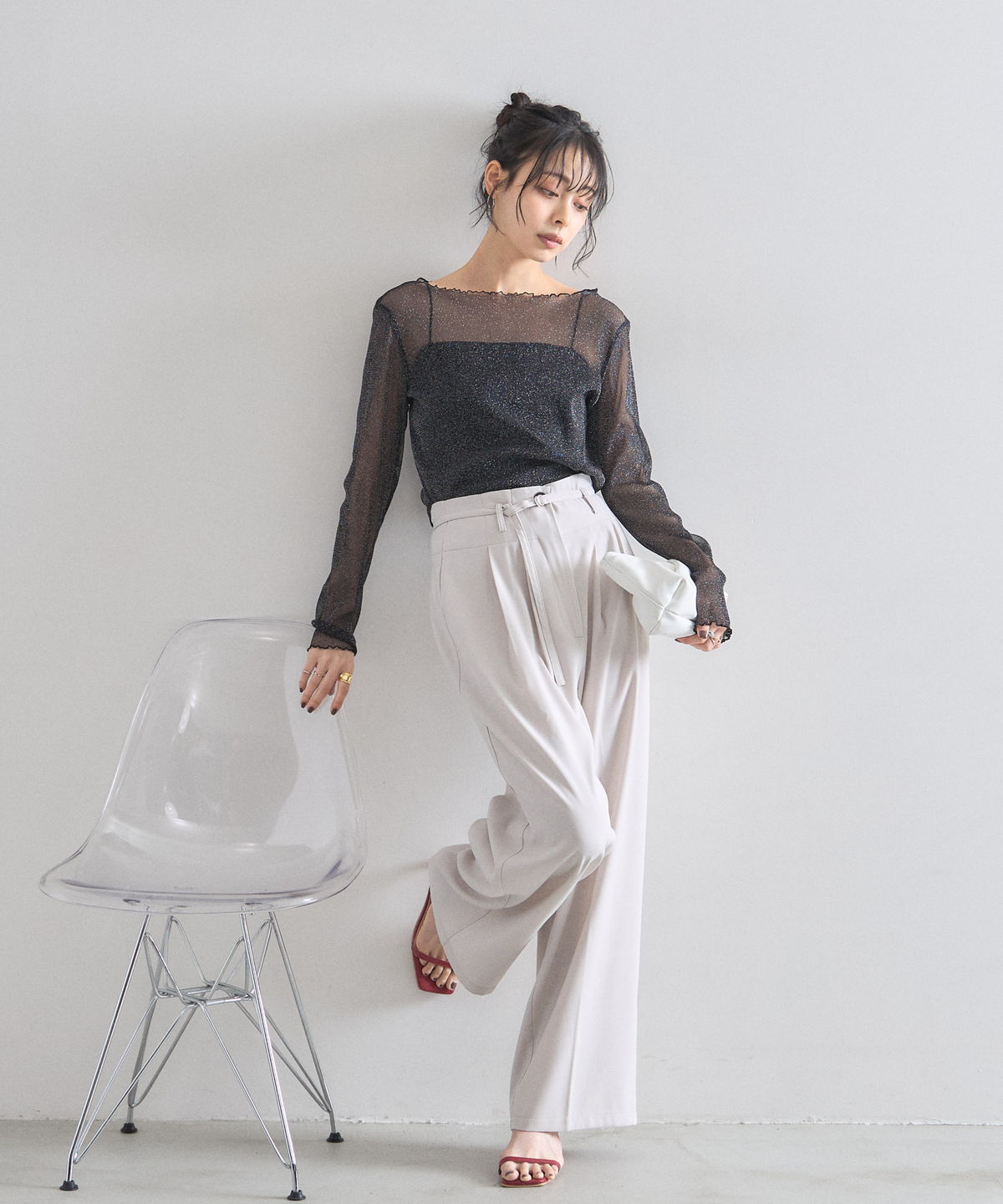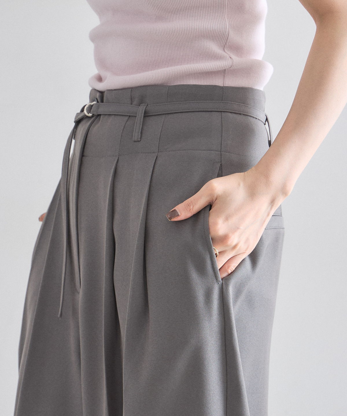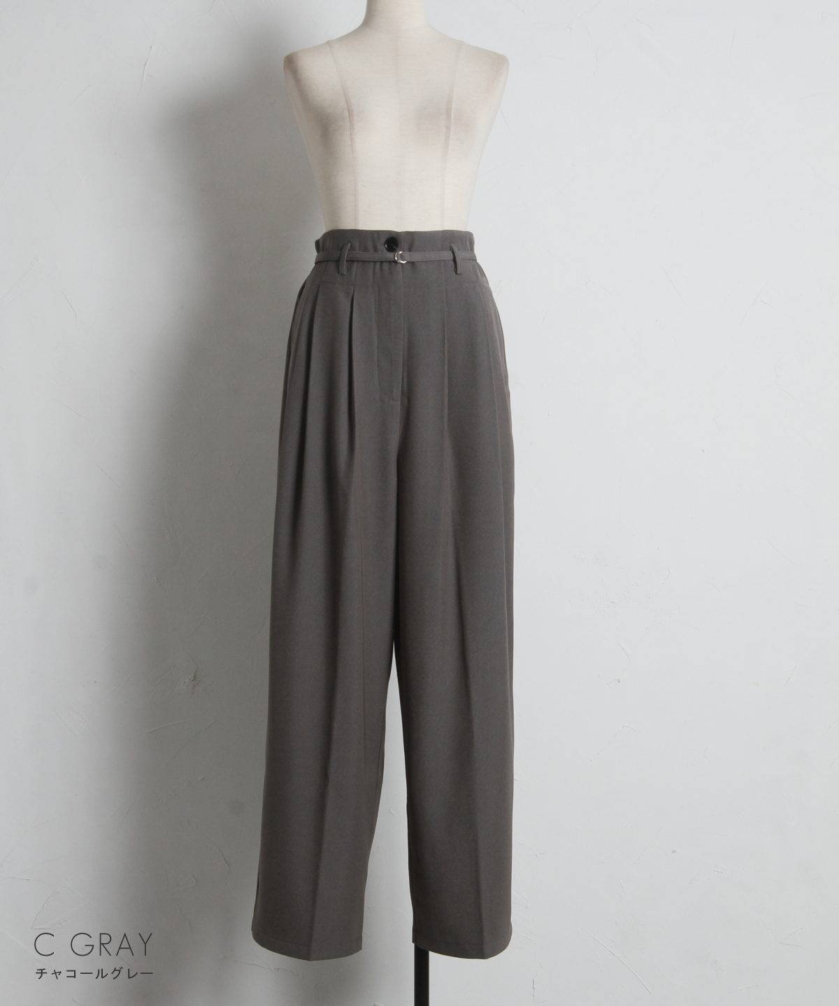 たっぷりと施されたタックとハイウエスト設計が、縦のラインを強調し圧倒的な脚長効果を叶える一着。