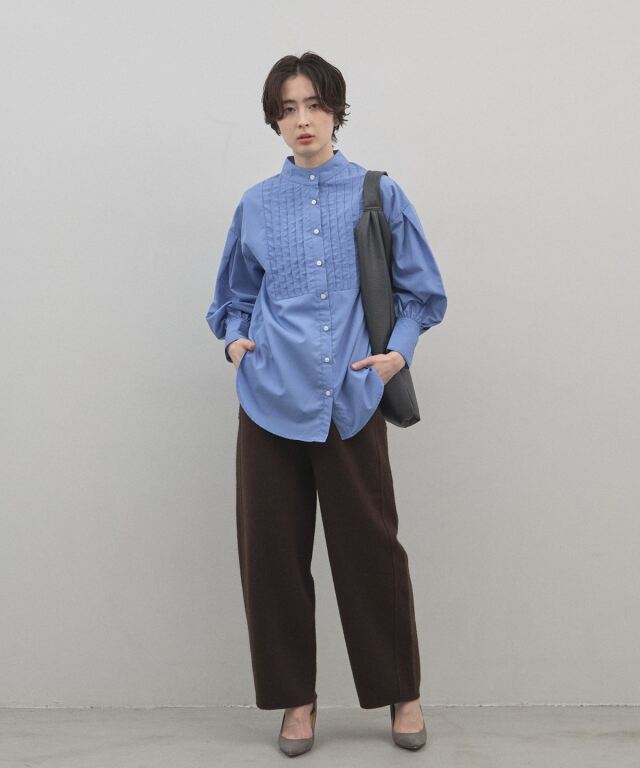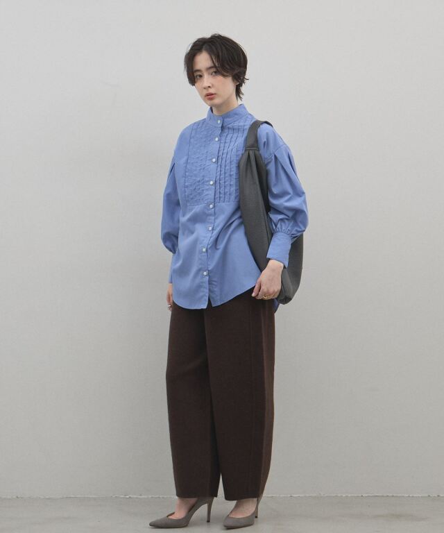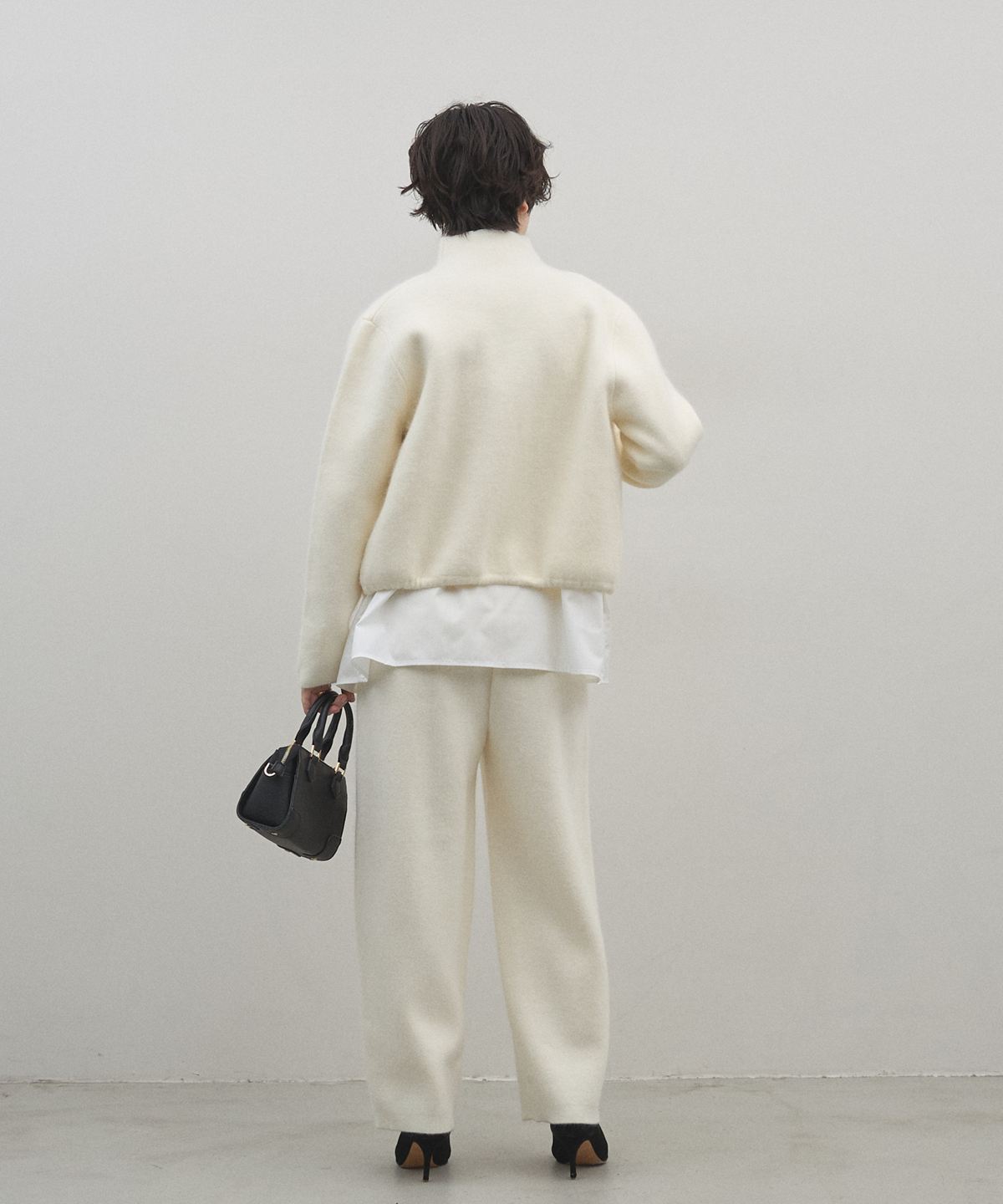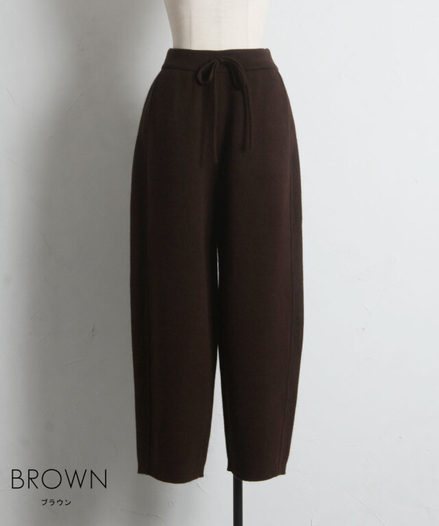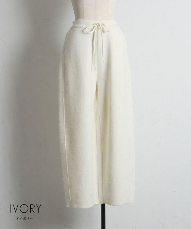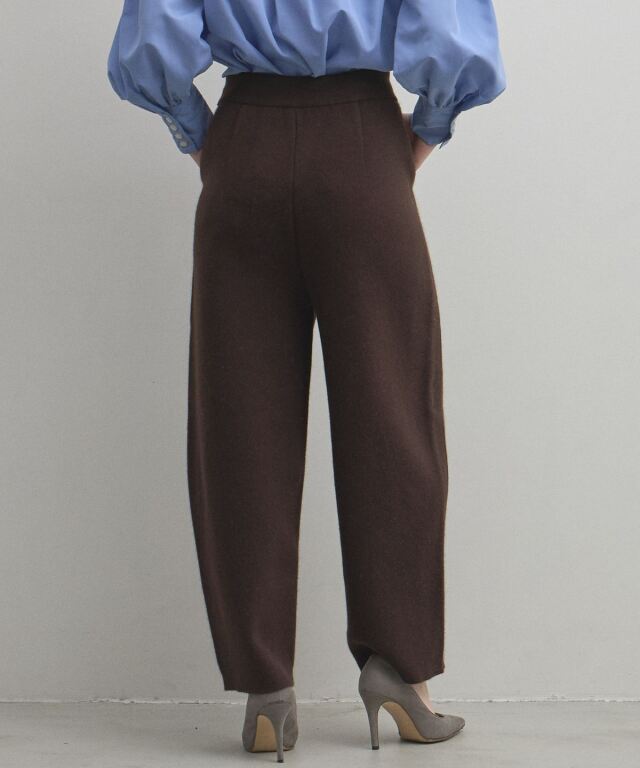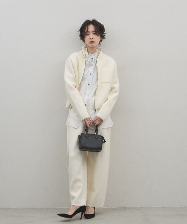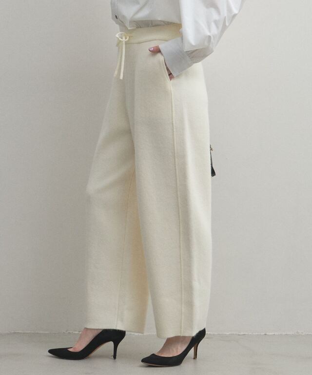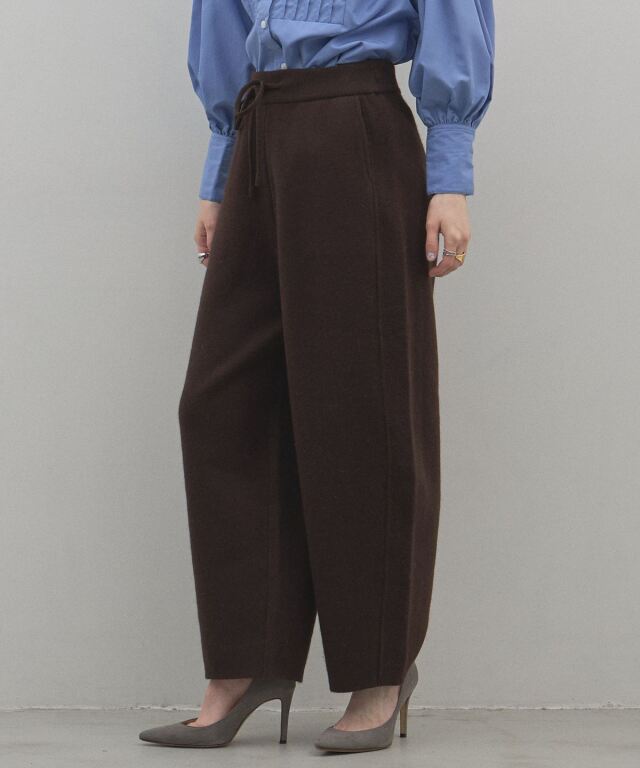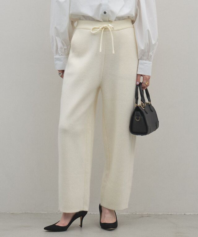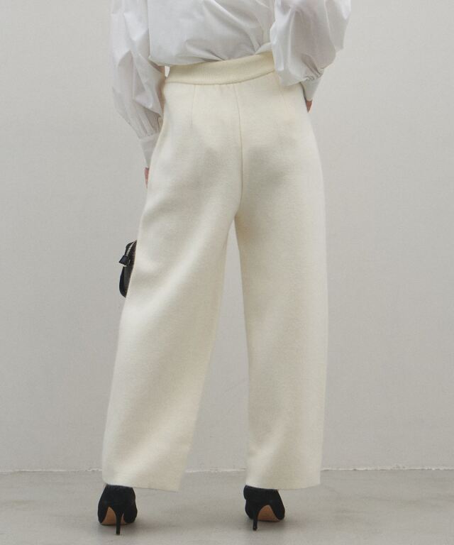 リラックス感のある穿き心地と、都会的なエレガンスを兼ね備えたニットパンツ。肉厚でハリのある編み地を使用することで、体のラインを拾いすぎず、すとんと落ちるような美しいワイドシルエットを実現しました。同素材のブルゾンと合わせたセットアップスタイルなら、統一感のある洗練されたモードな装いが即座に完成します。