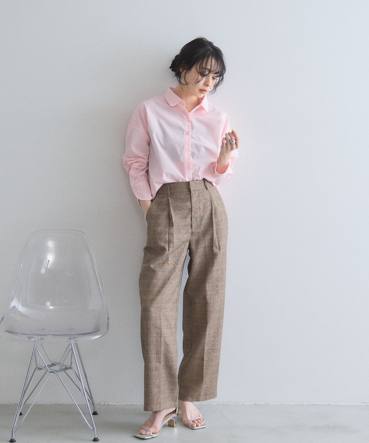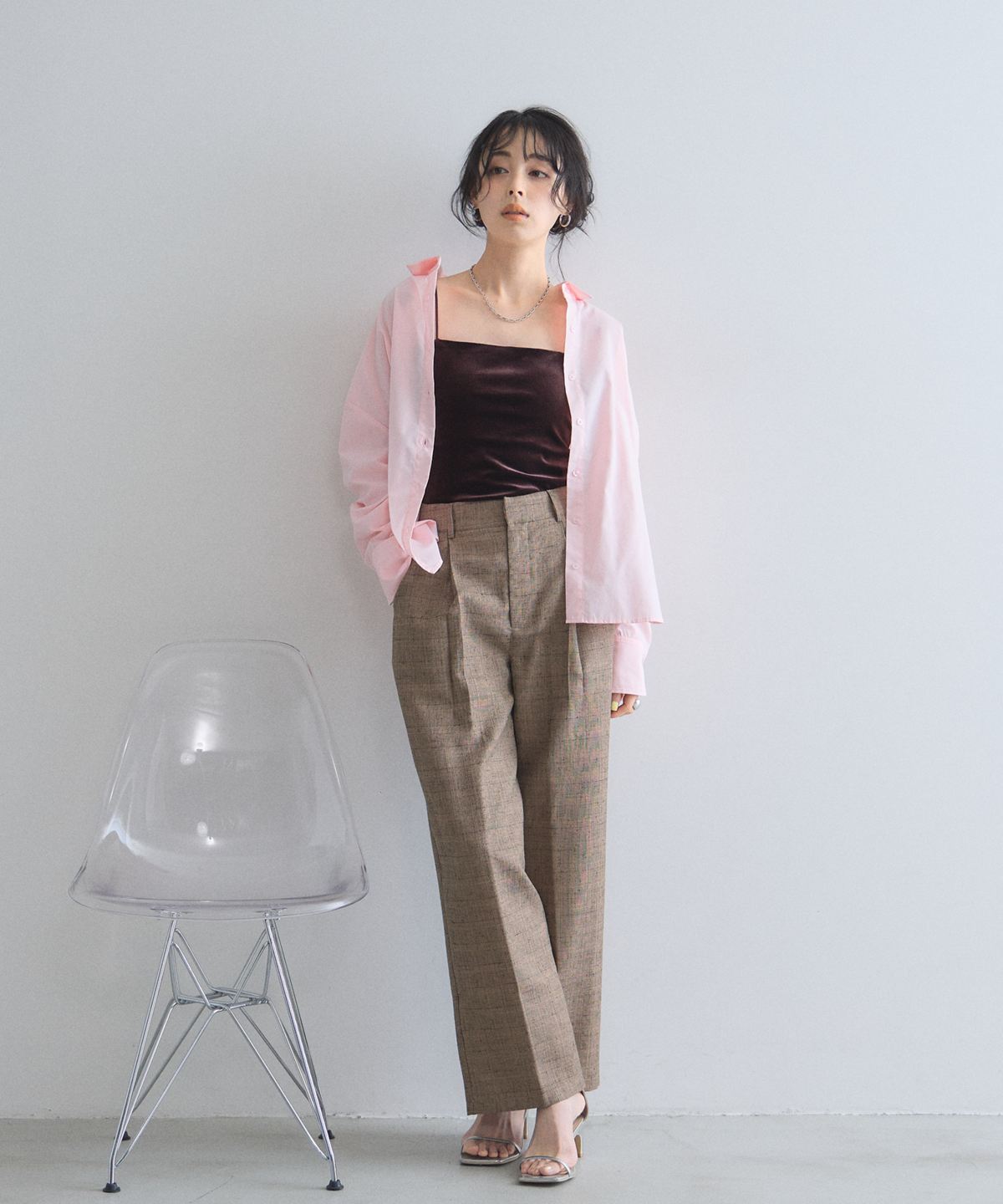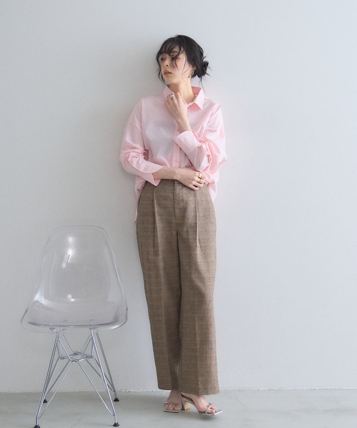 シンプルなトップスを合わせるだけで、ニュアンスのある洗練された着こなしが完成します。