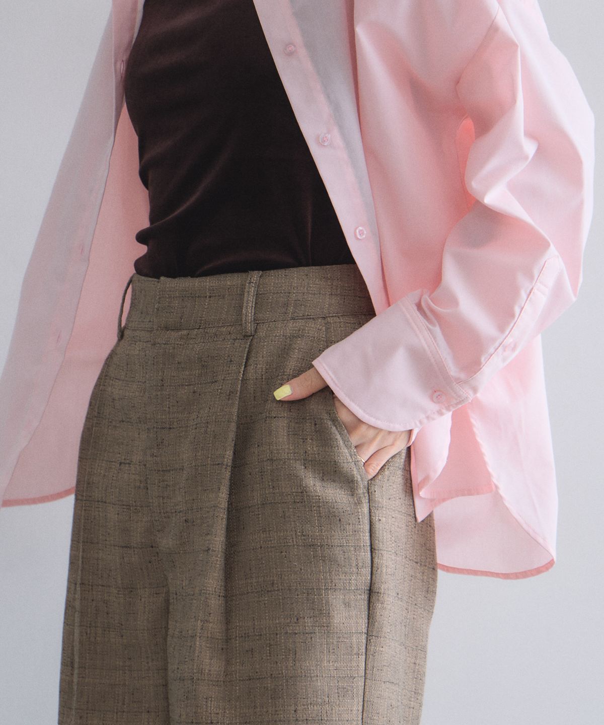 裾に向かってすとんと落ちるワイドシルエットが脚長効果を叶えます。