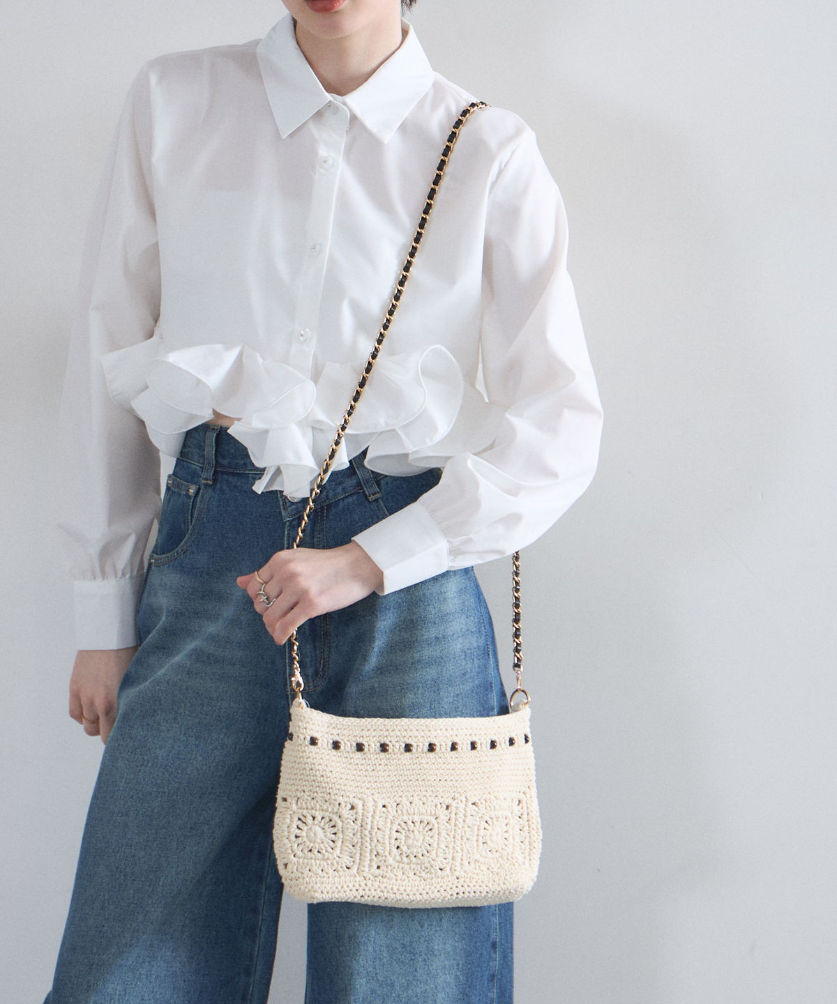 クラフト感とエレガンスが交差する。大人のためのミニマルなクロシェショルダー。