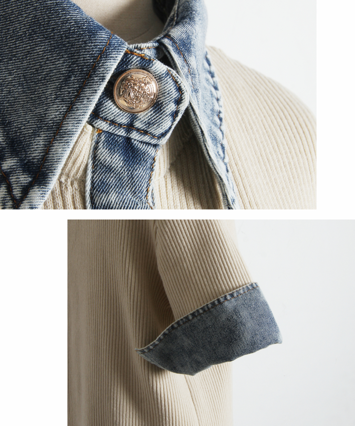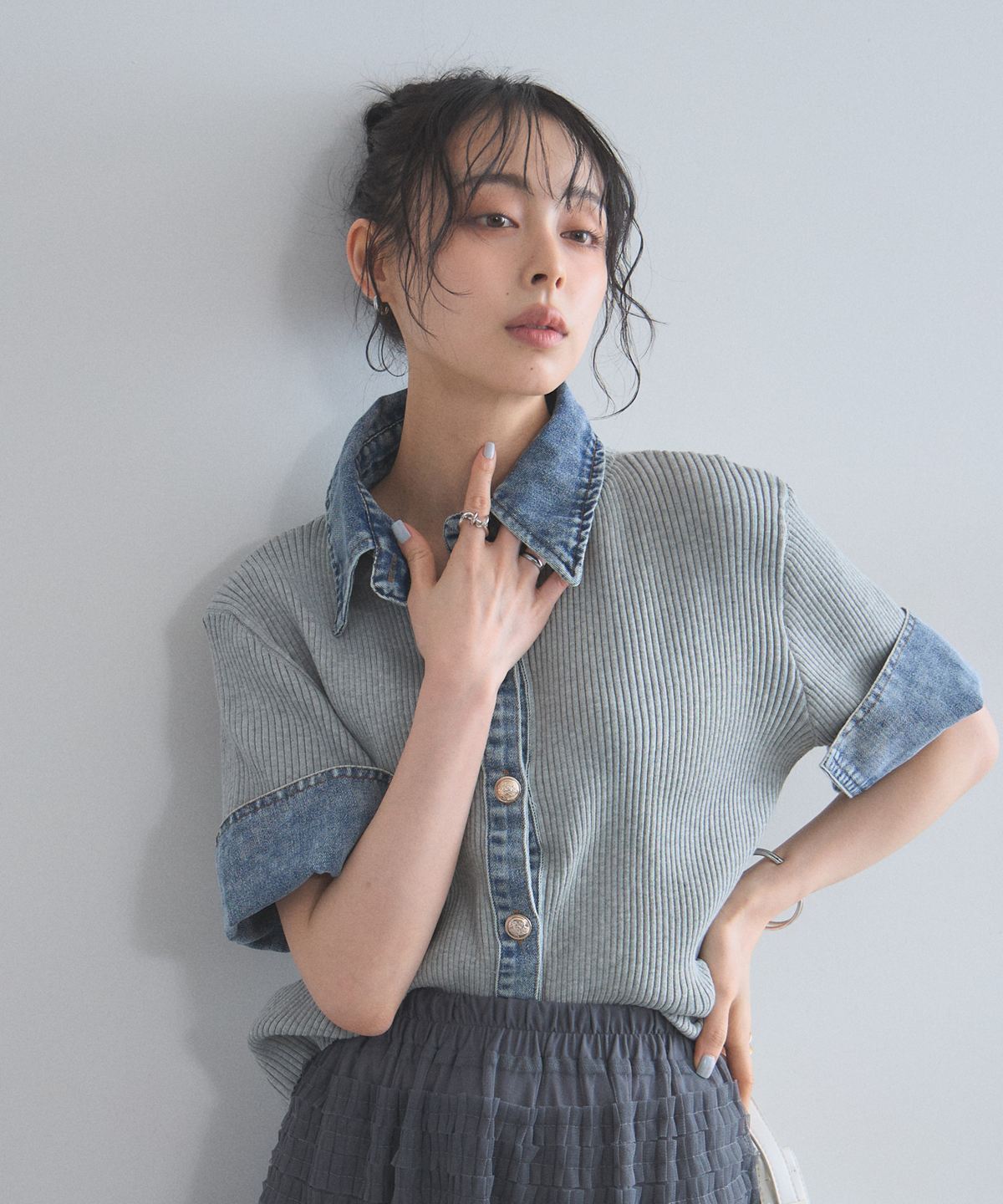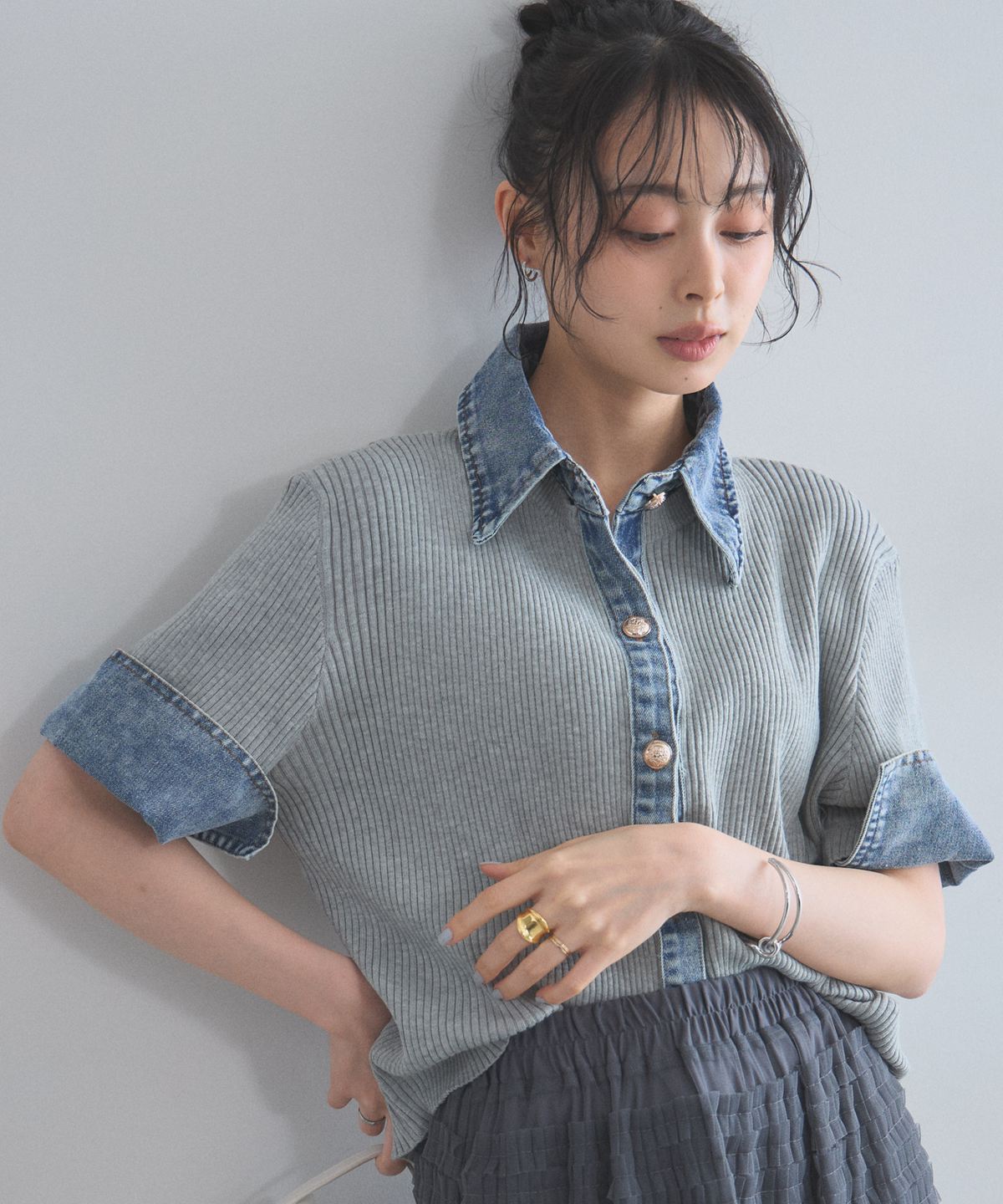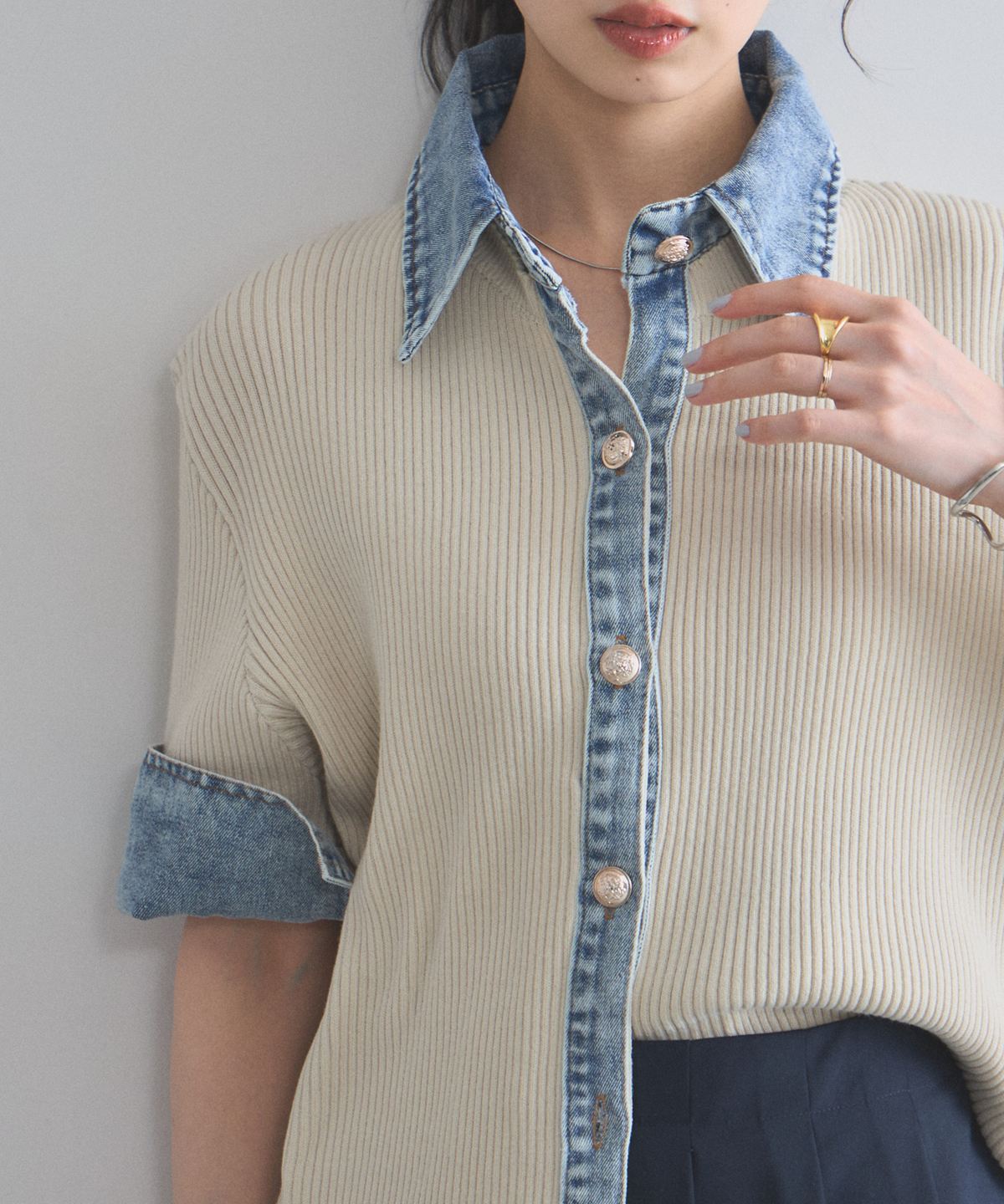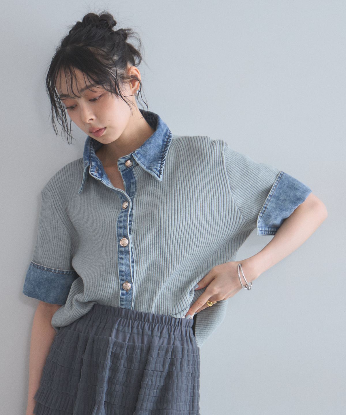 リブの柔らかな素材感と、デニムのカジュアルな表情を掛け合わせた1枚です。