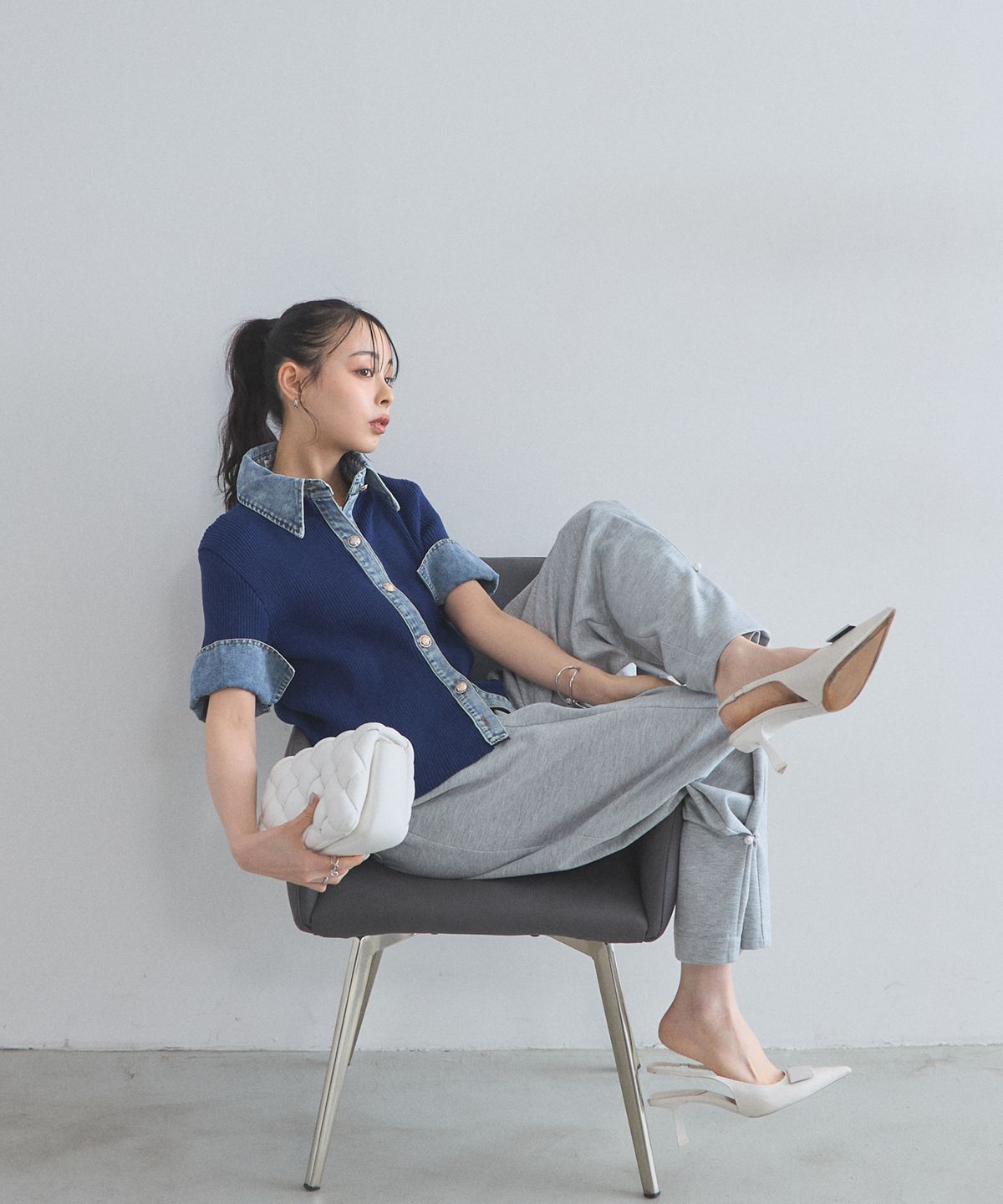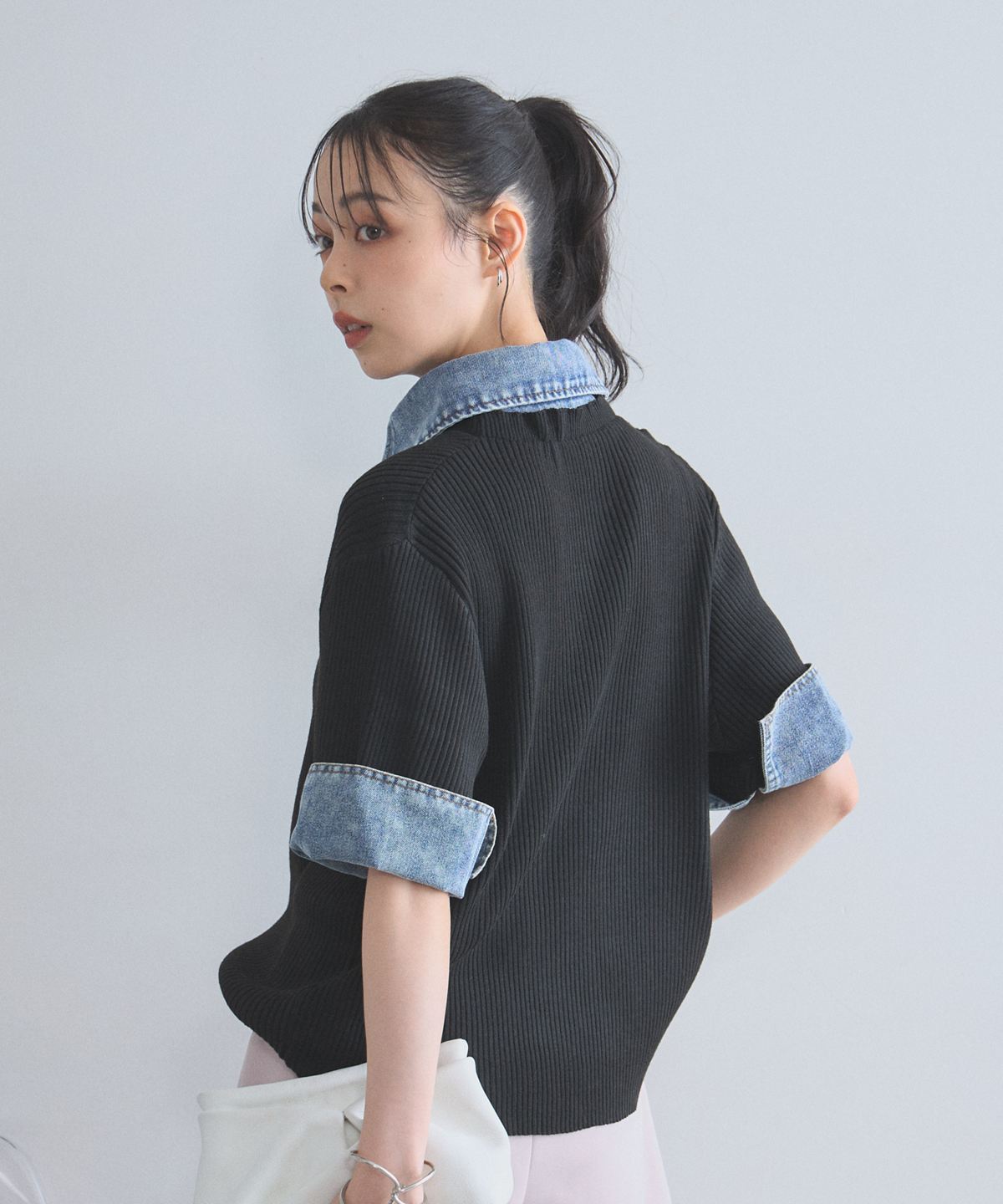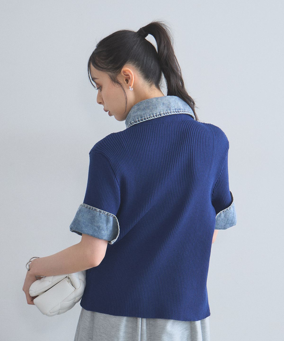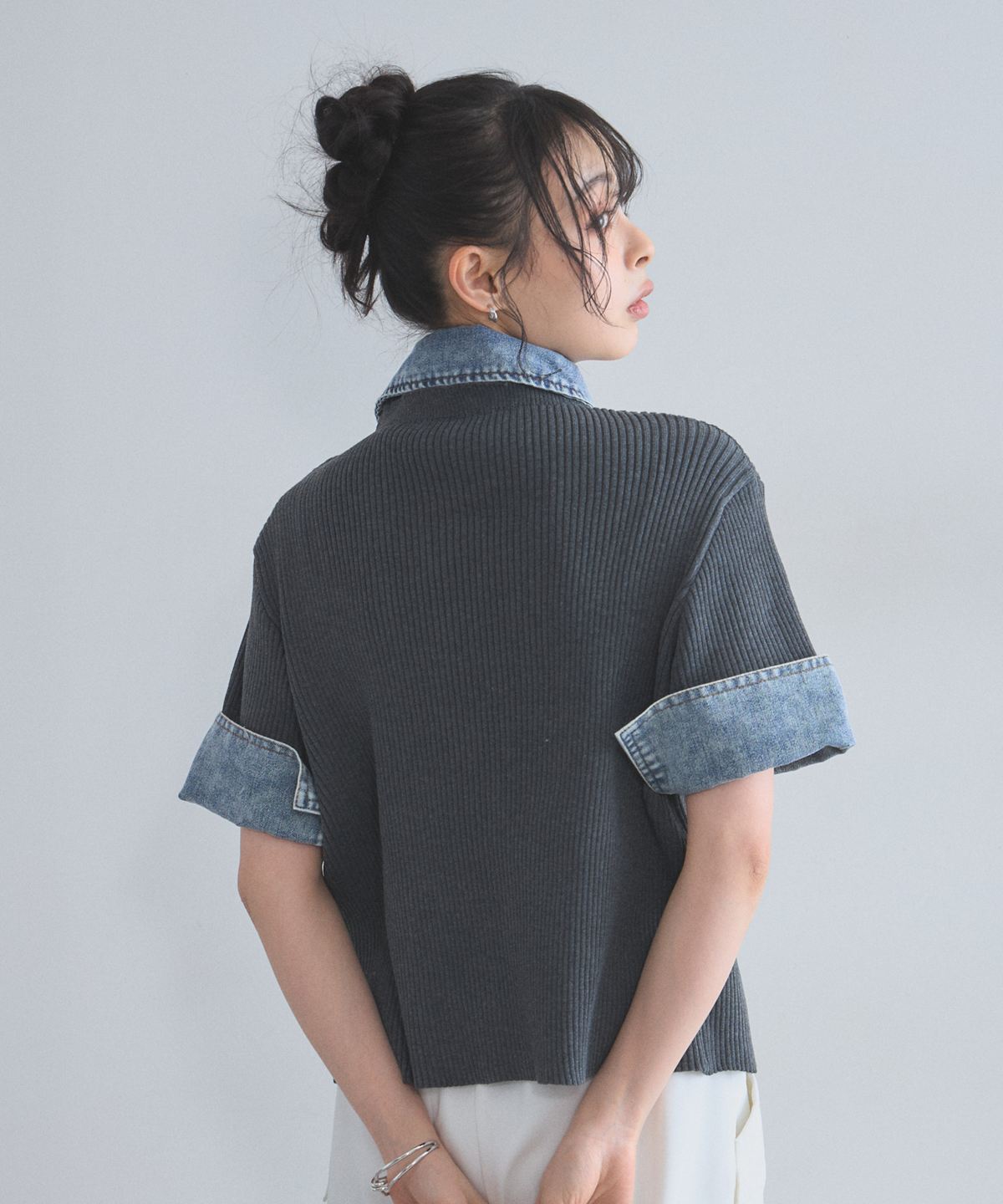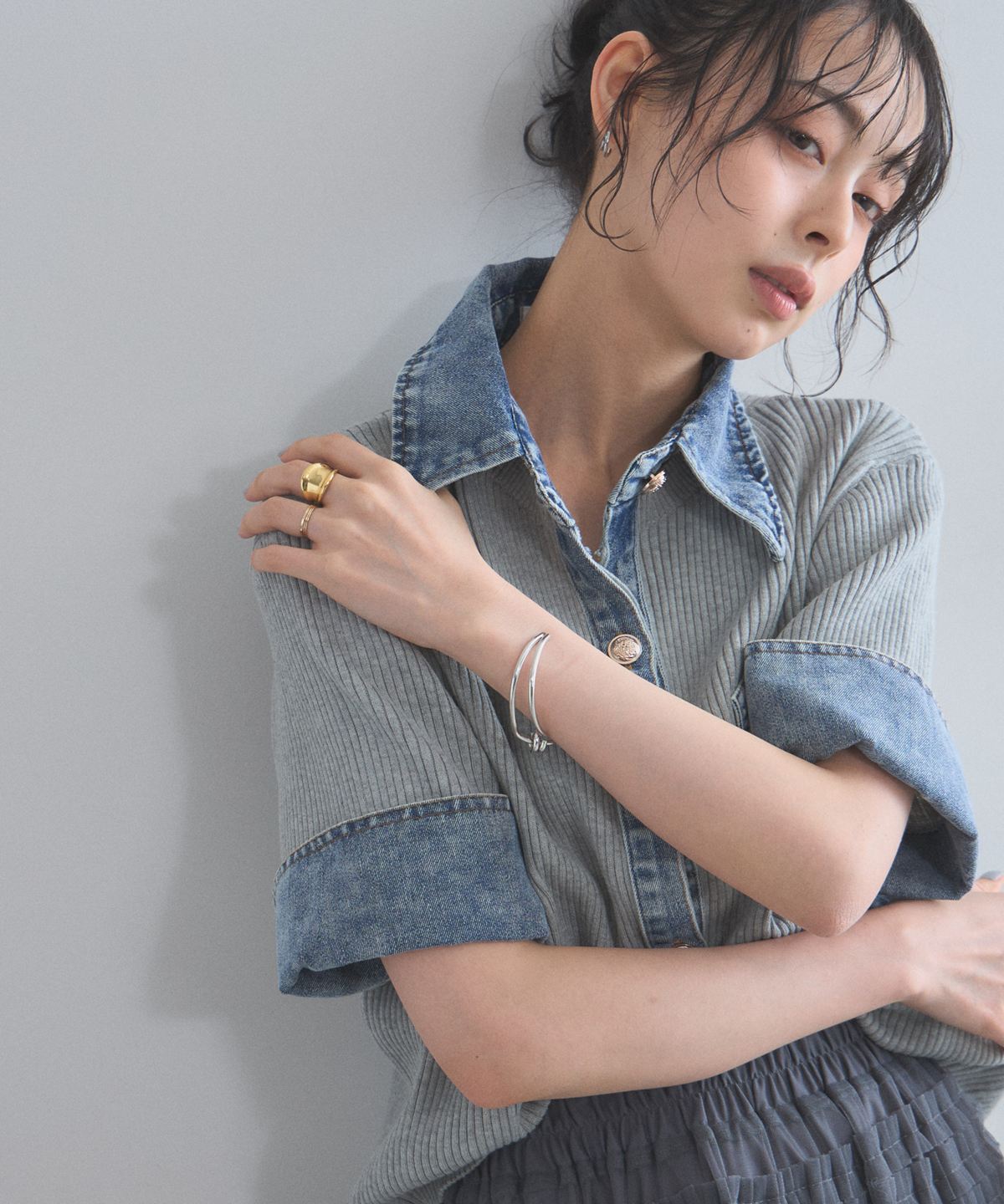 リブの柔らかな素材感と、デニムのカジュアルな表情を掛け合わせた1枚です。