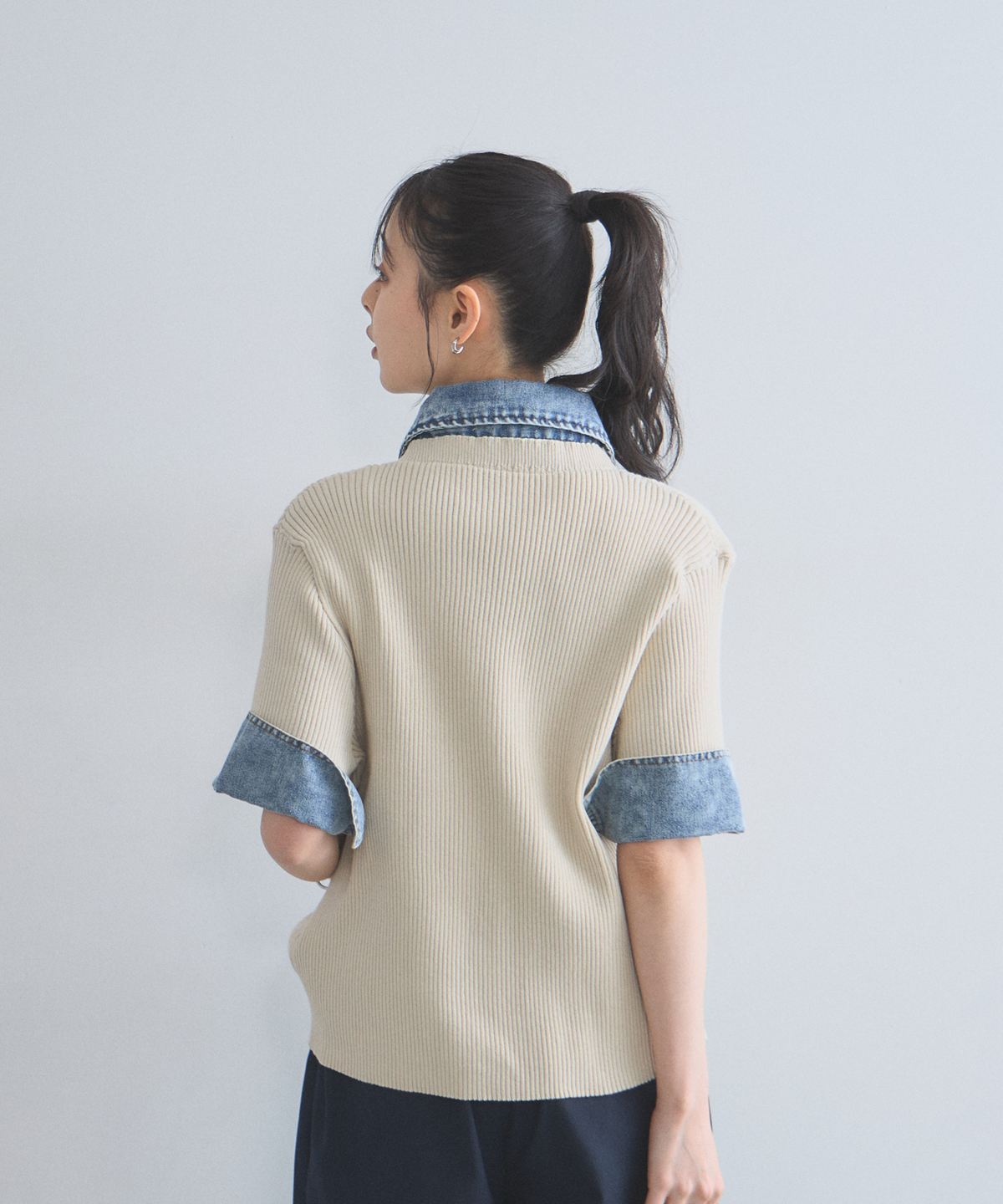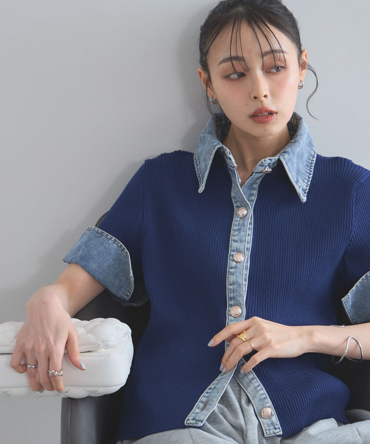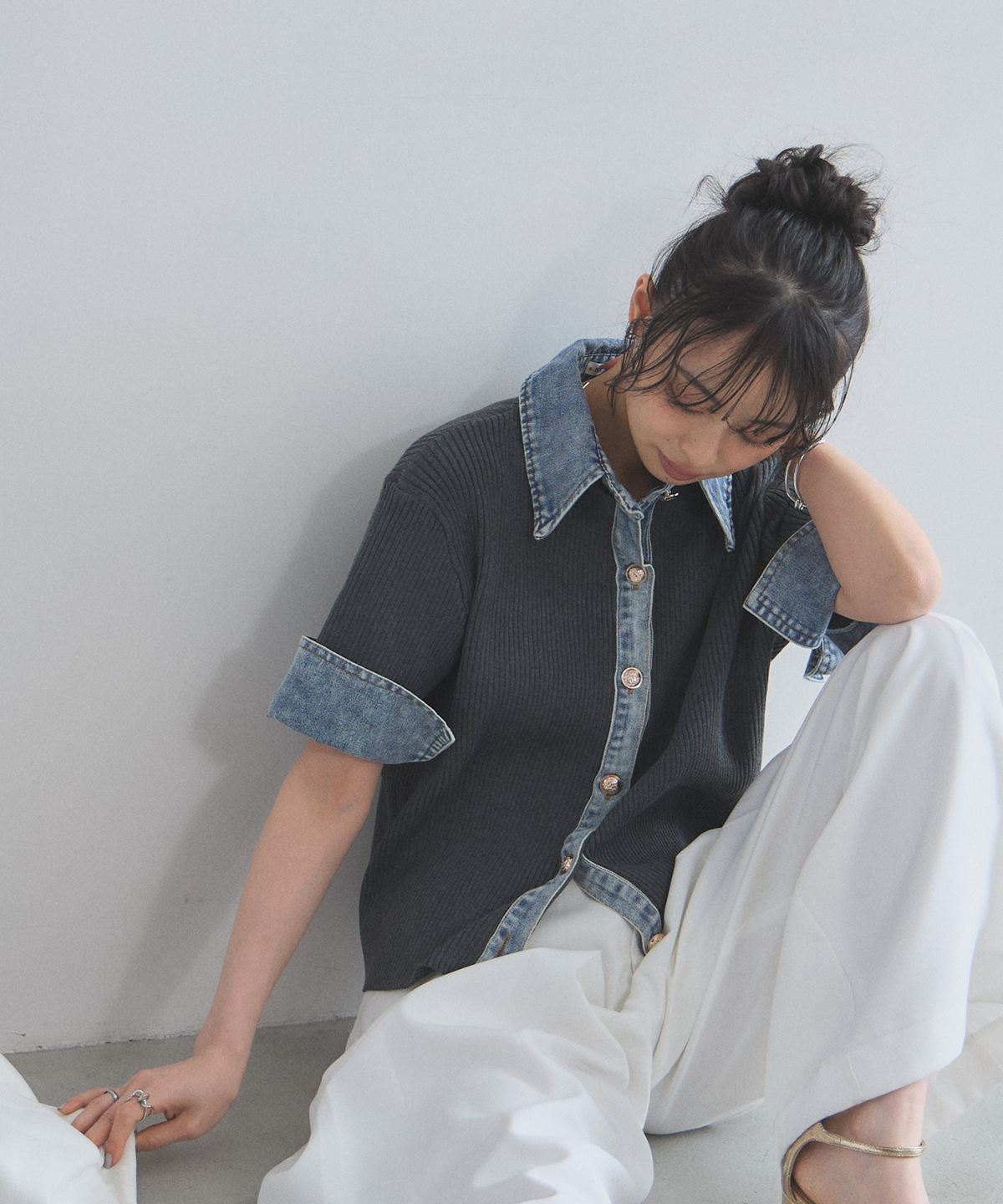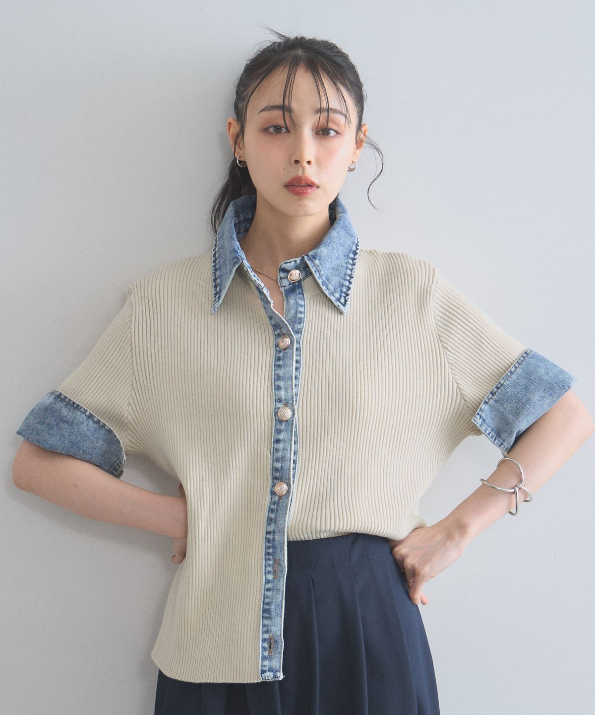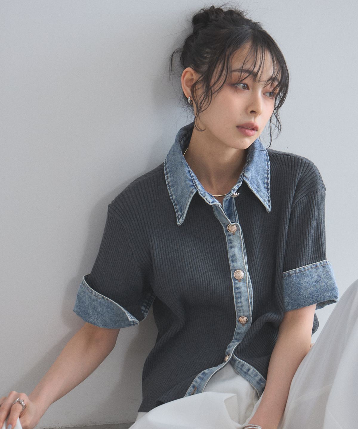 リブの柔らかな素材感と、デニムのカジュアルな表情を掛け合わせた1枚です。