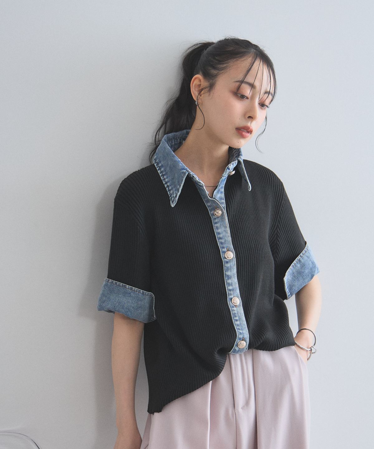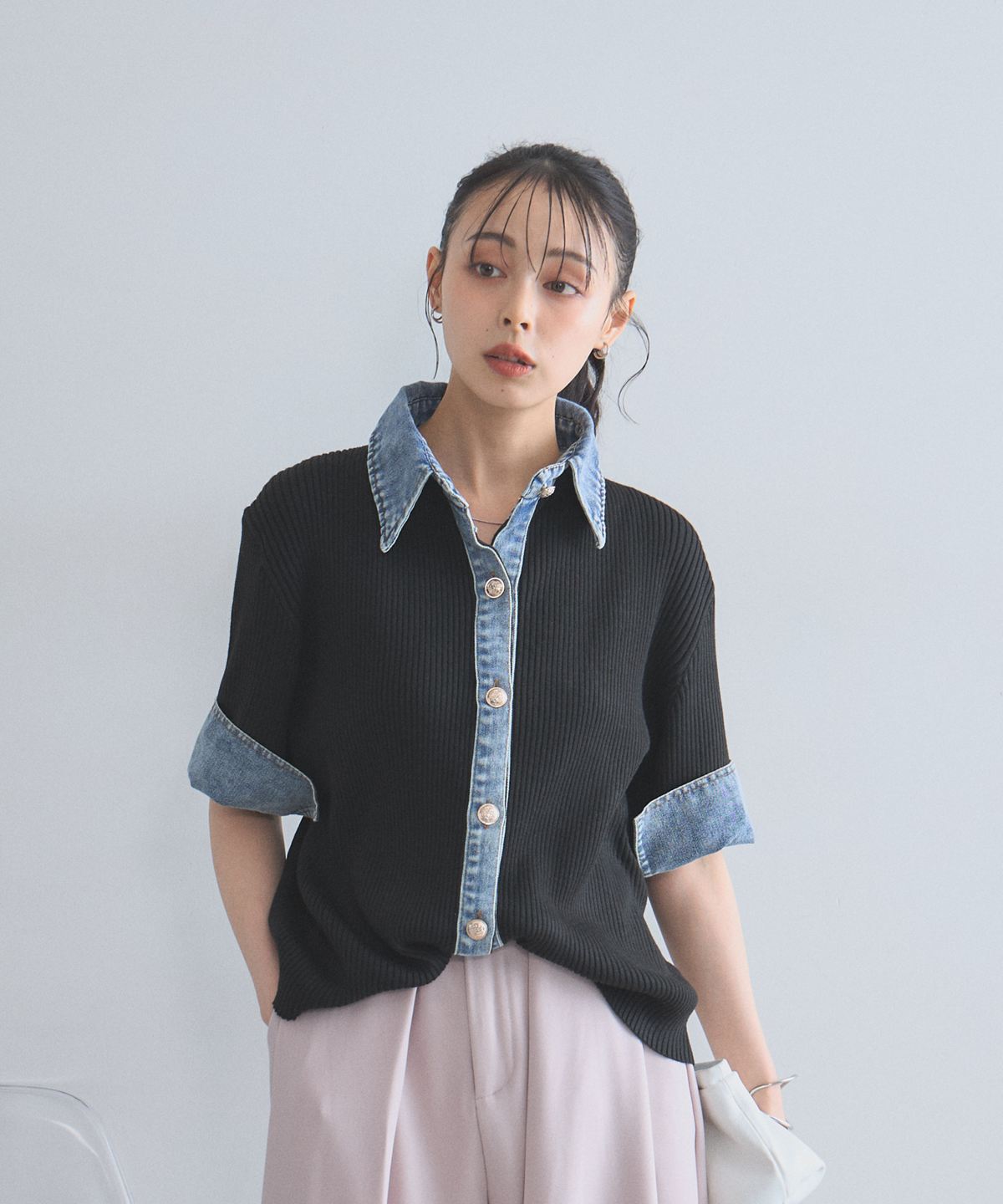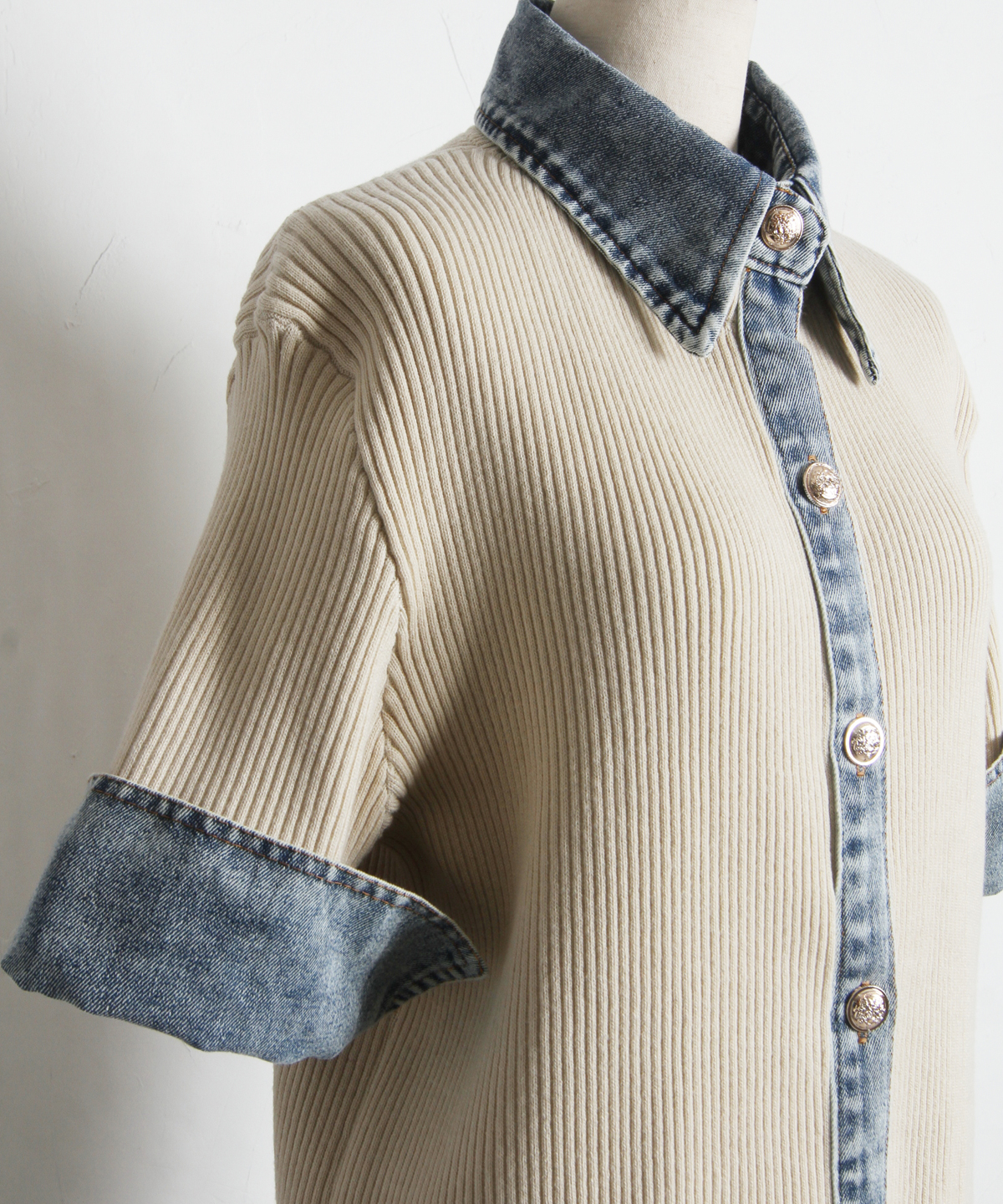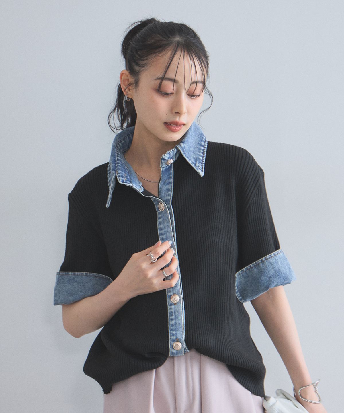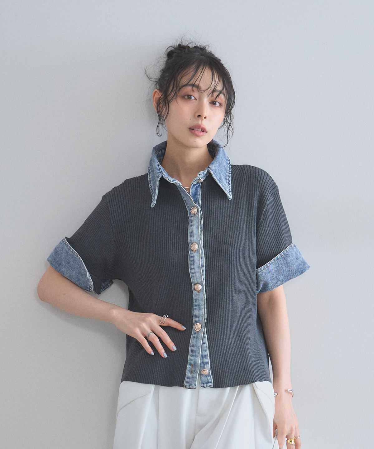 リブの柔らかな素材感と、デニムのカジュアルな表情を掛け合わせた1枚です。